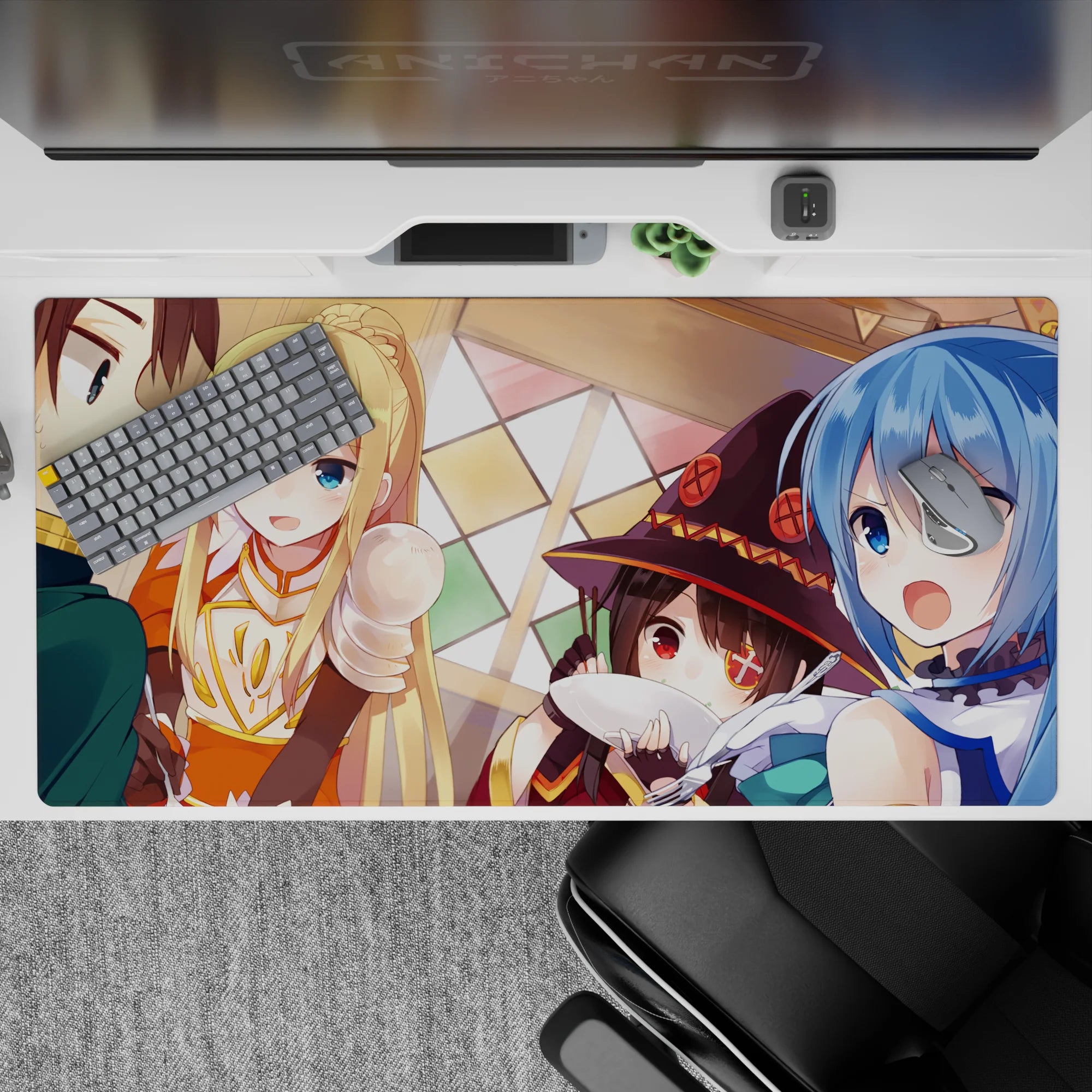 Embrace chaos and comedy with our KonoSuba anime mouse pads and desk pads! Featuring hilarious and vibrant artwork of Kazuma, Aqua, Megumin, and Darkness, these desk essentials bring the wild misadventures of the party straight to your setup. Whether you're casting Explosion! or just grinding through daily tasks, these KonoSuba mouse pads add a splash of fun and fantasy to your workspace.