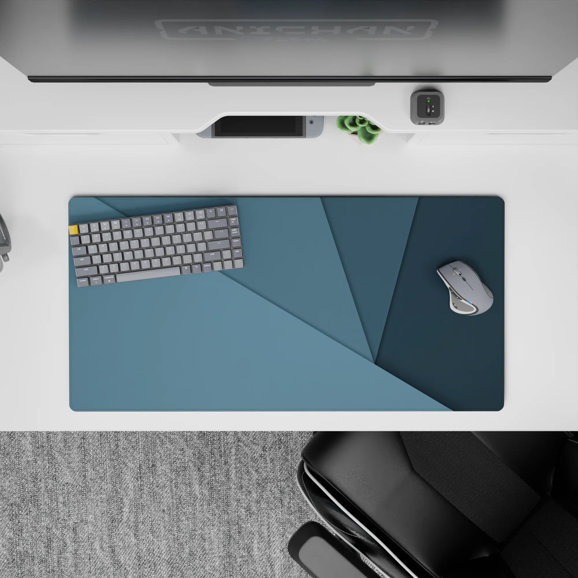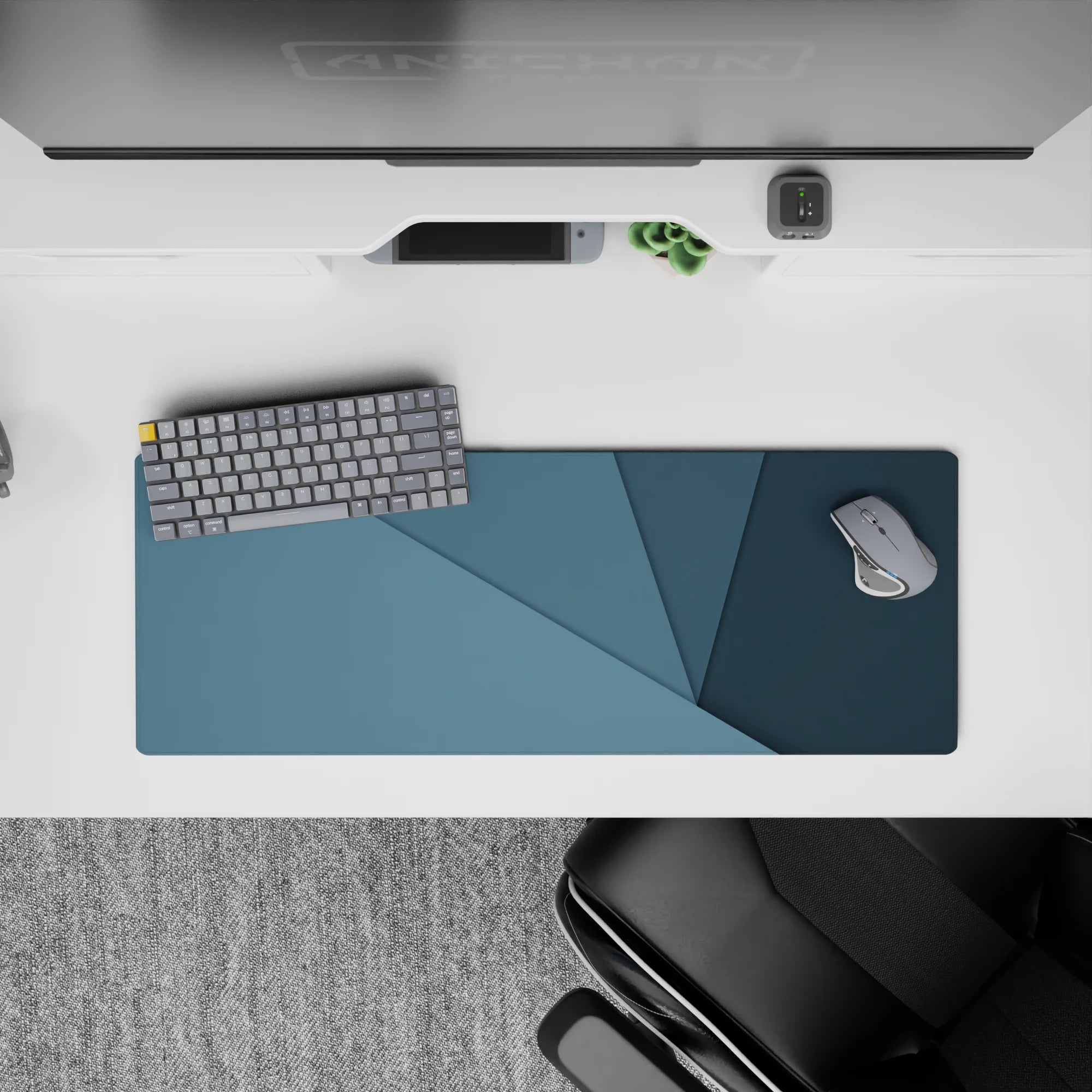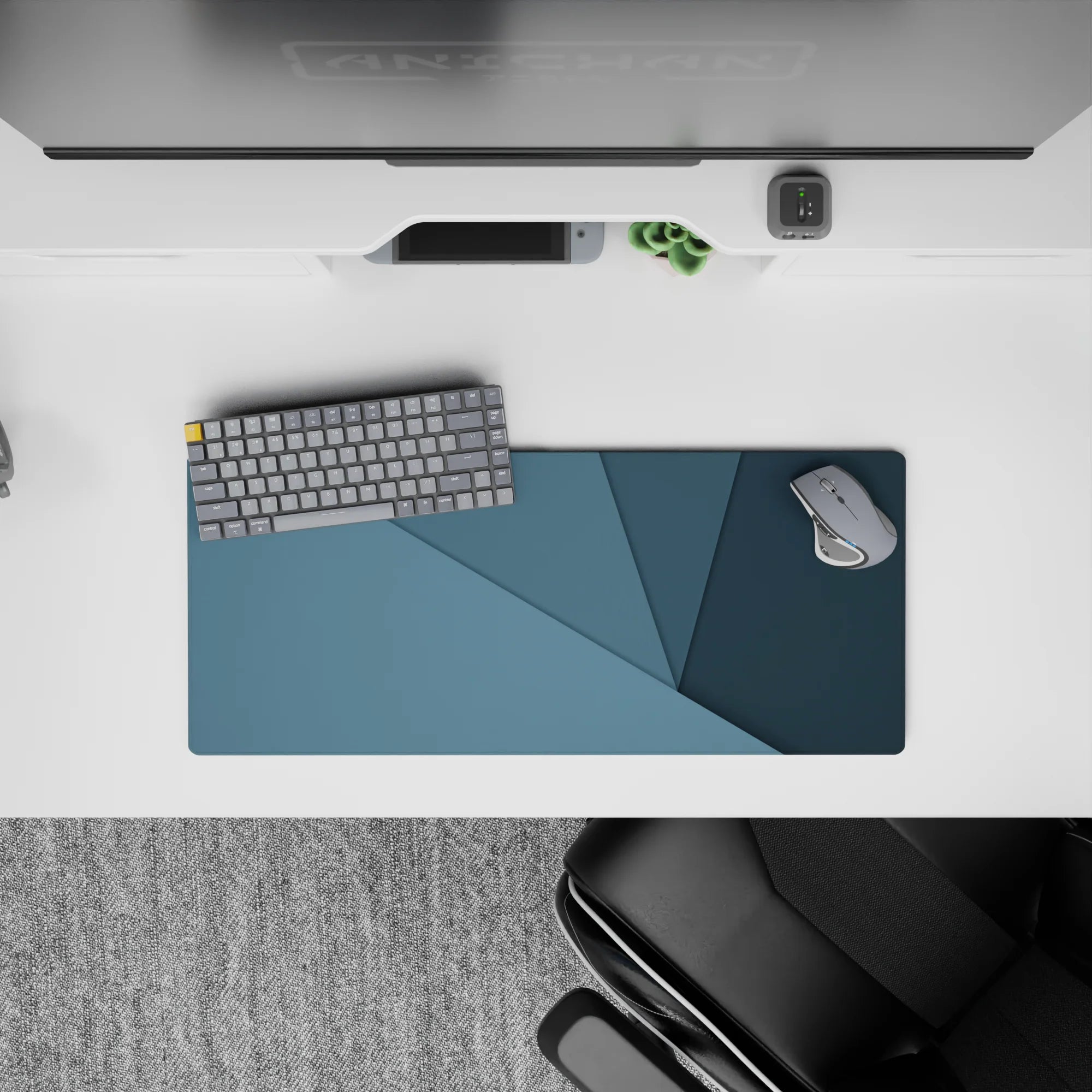 Enhance your workspace with this sleek blue geometric mousepad featuring layers of calm blue tones and sharp shapes for a modern, minimalist look that boosts productivity and style.