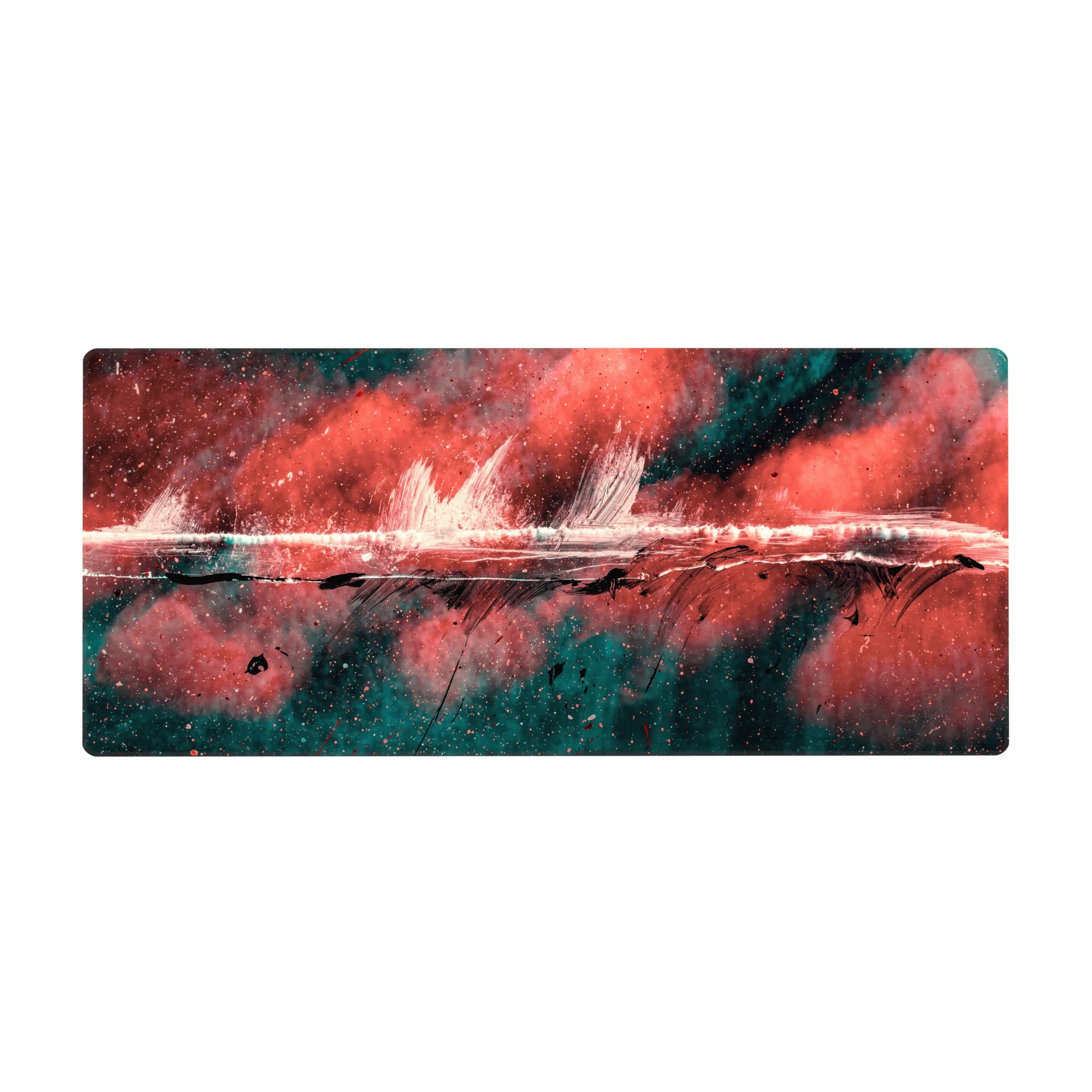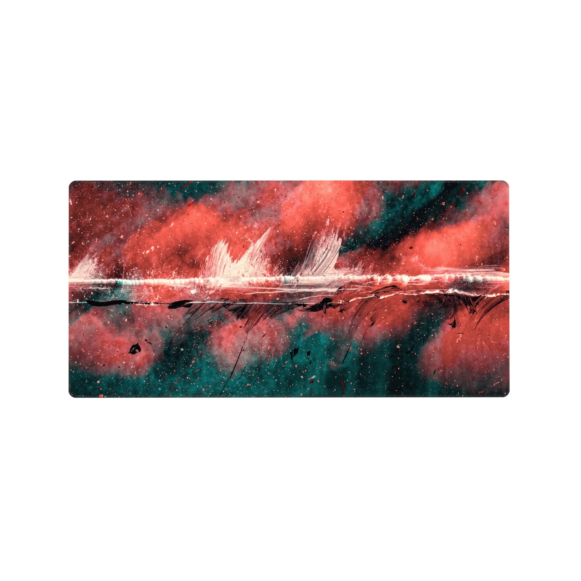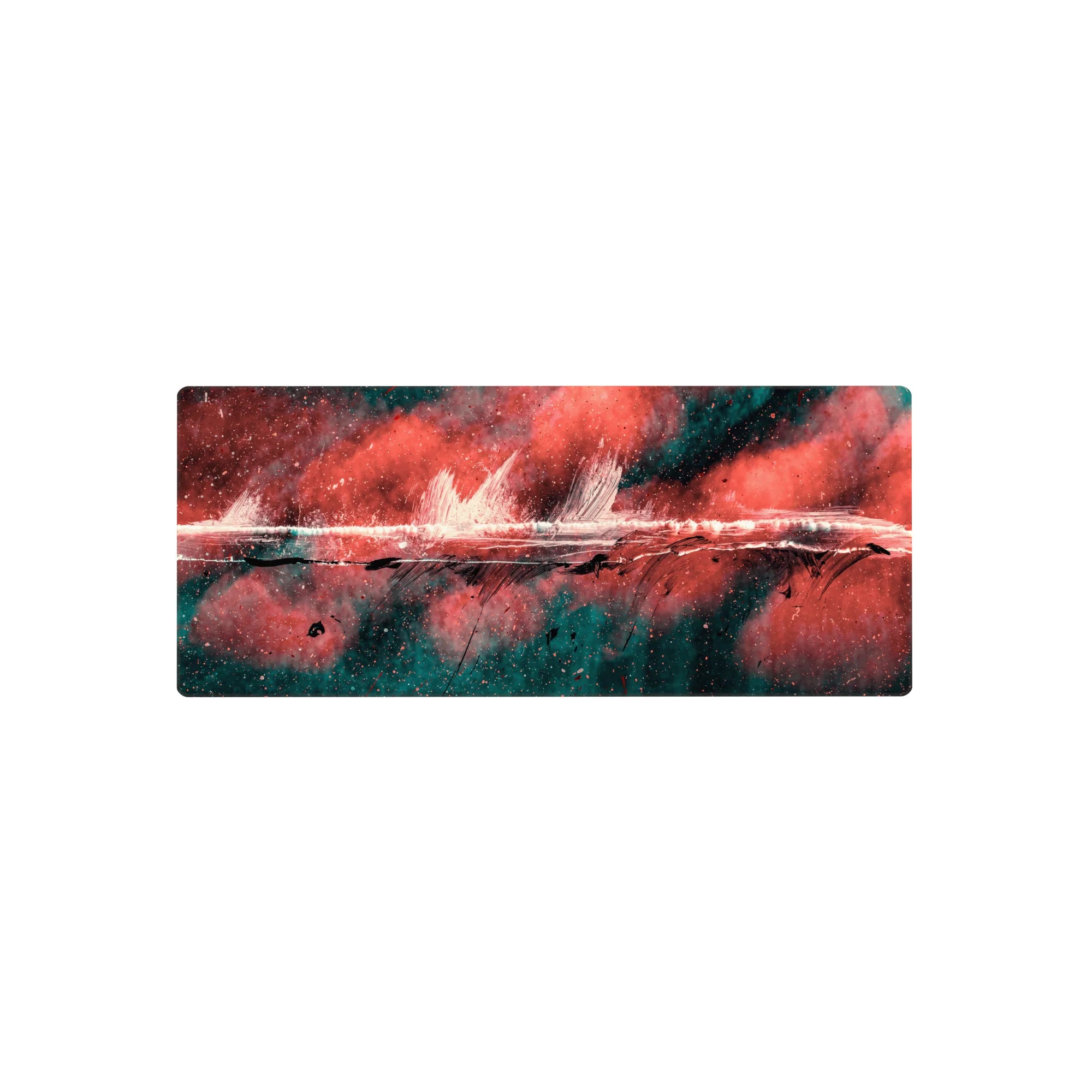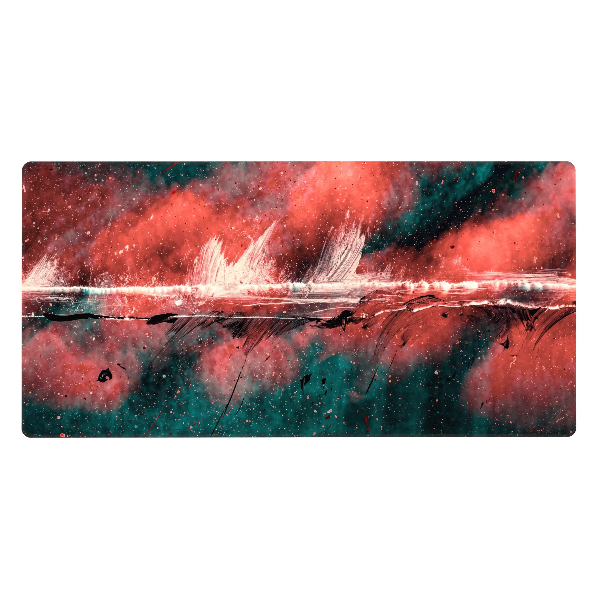 Add a burst of creativity to your workspace with this abstract deskmat featuring bold strokes of red, black, and teal. The dynamic design exudes raw energy, perfect for those who love making bold artistic statements. Transform your desk into a hub of inspiration.