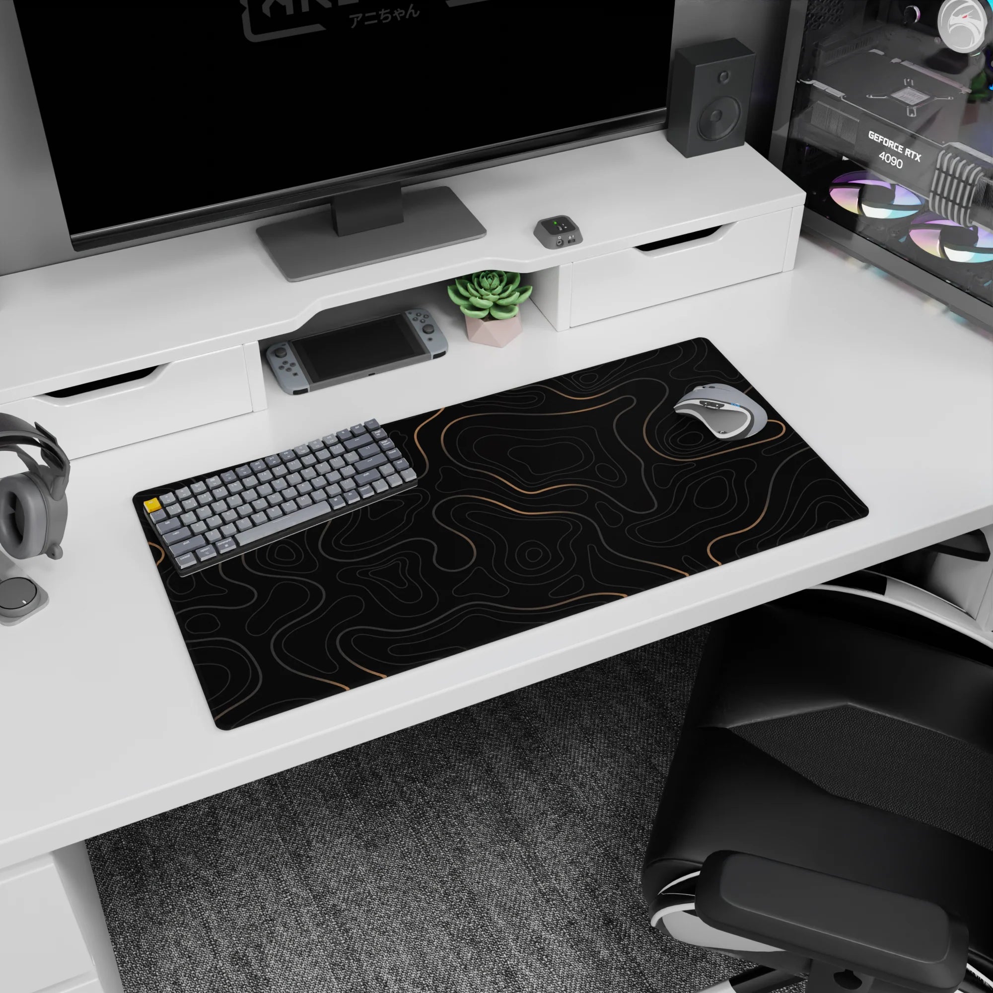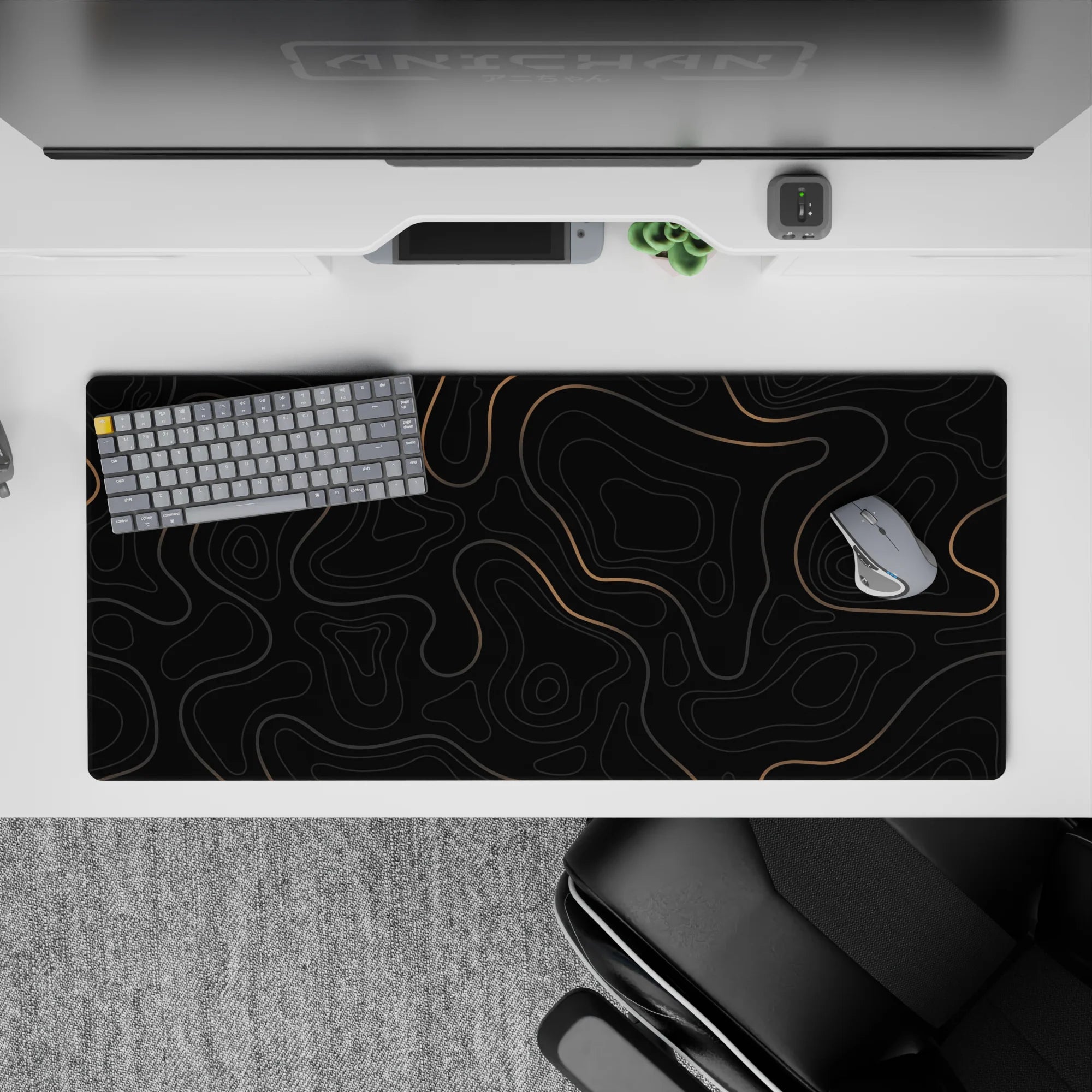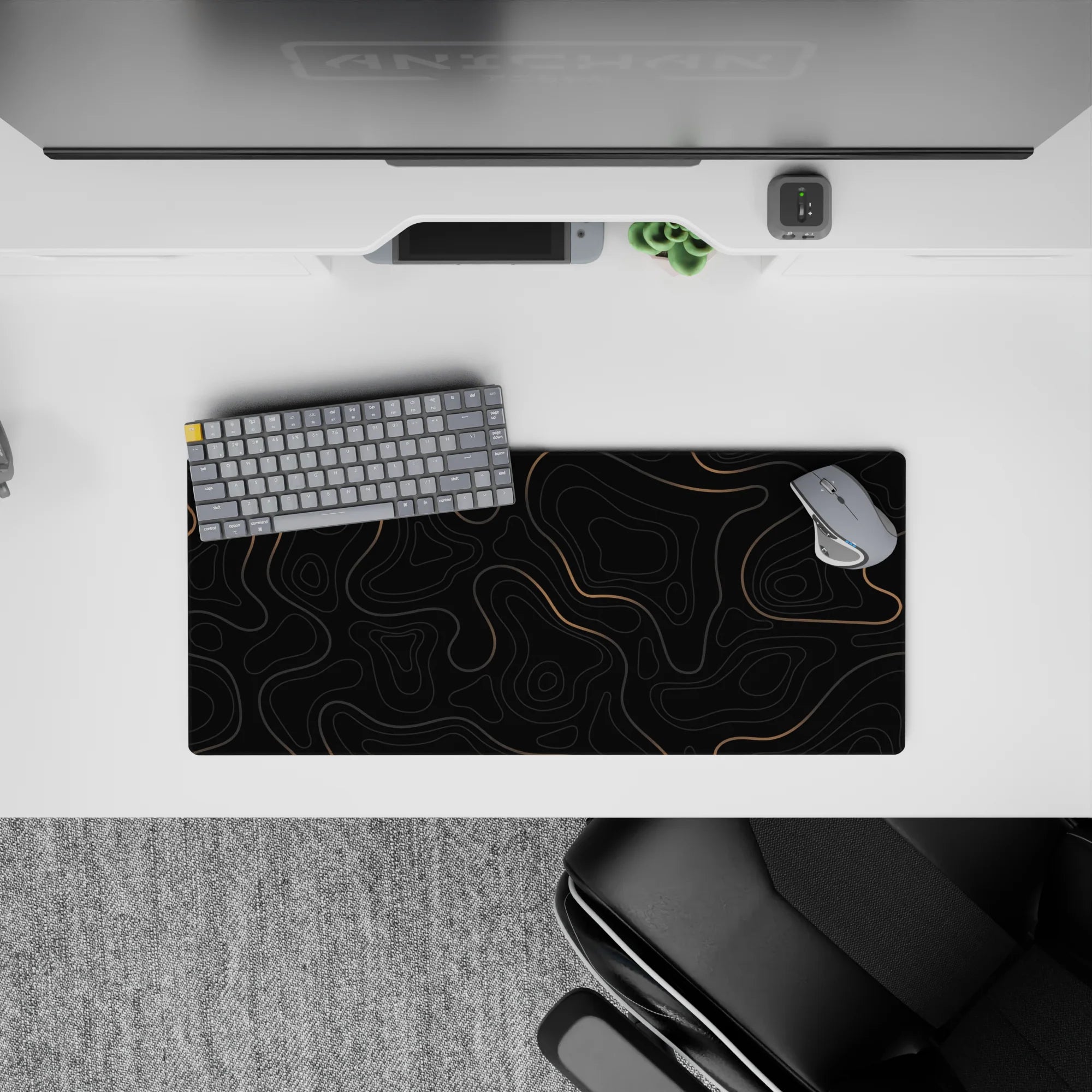 Topographic (Topo) Deskmat | Mousepad | Deskpad - Golden Topographic Dreams