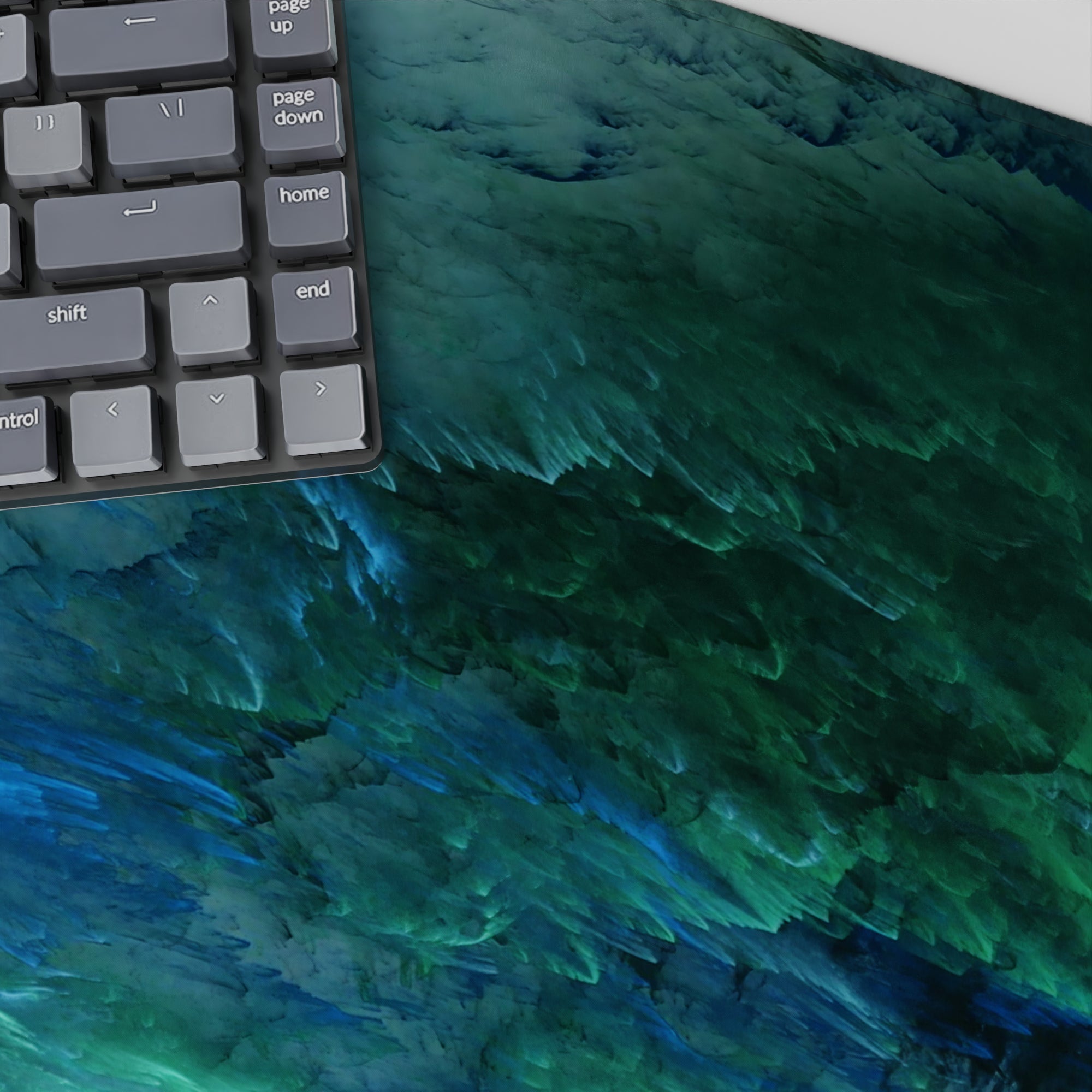 Immerse your desk in a blend of swirling blue and green hues with this abstract oceanic design. Perfect for lovers of calm, dynamic environments, it adds life, movement, and a touch of tranquility to any workspace.