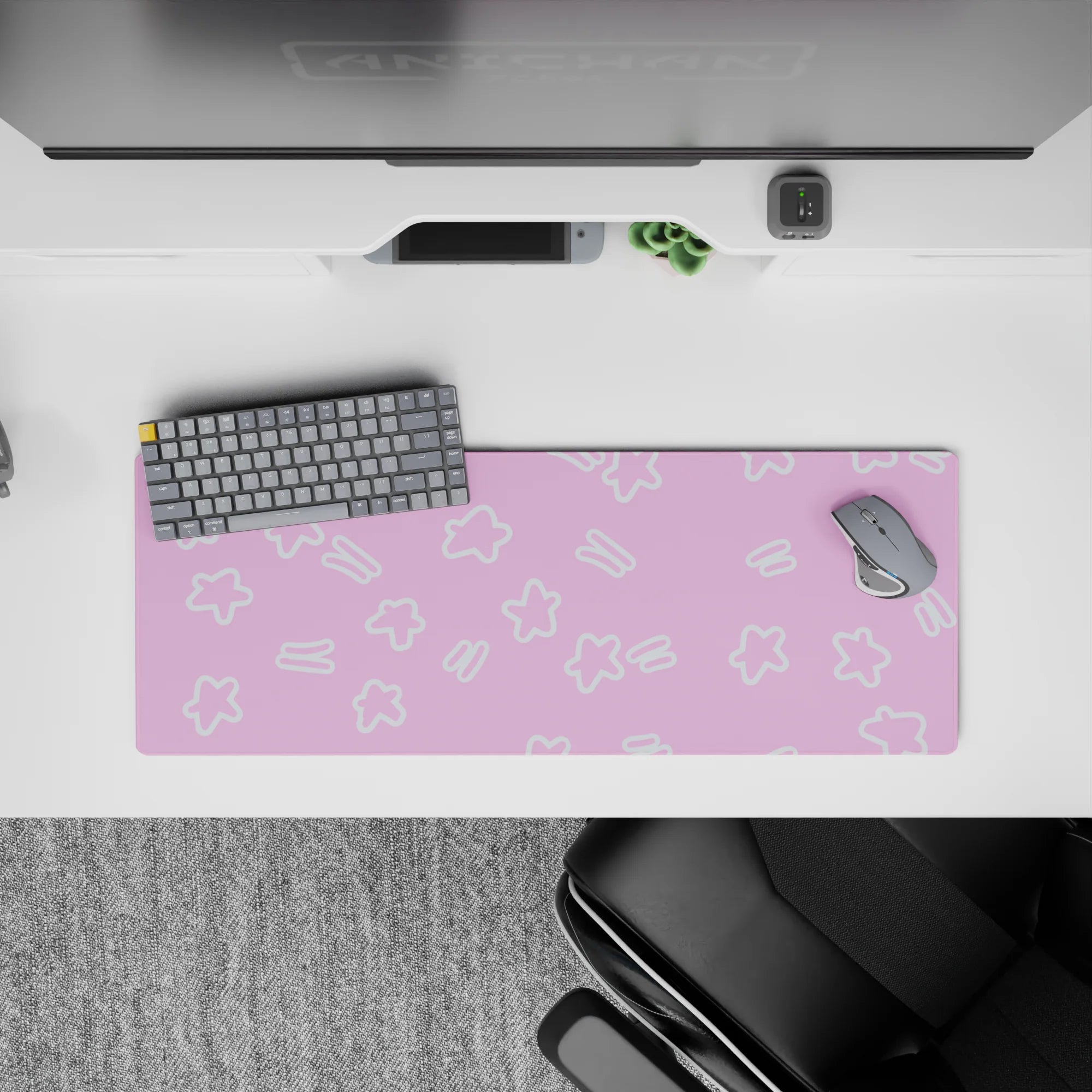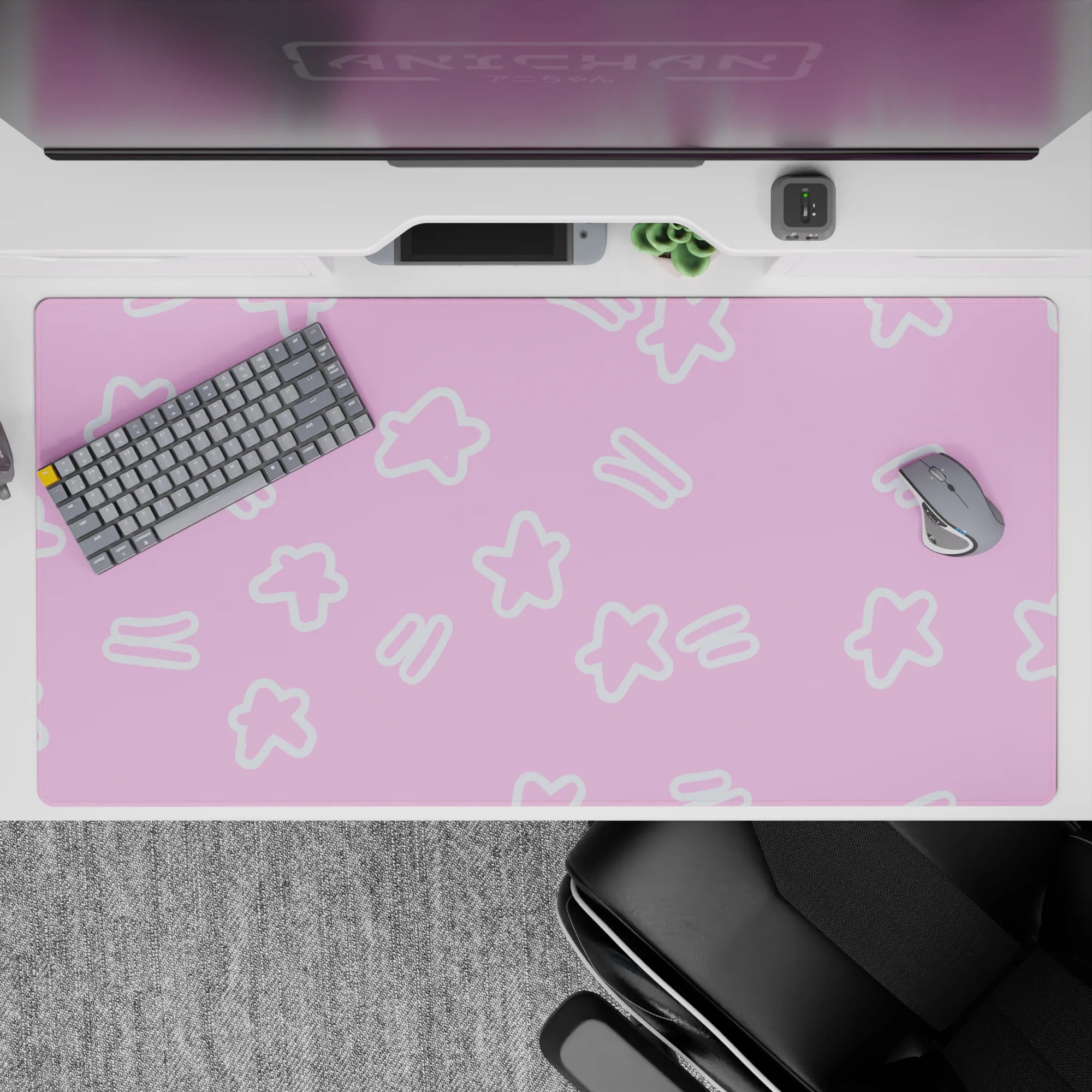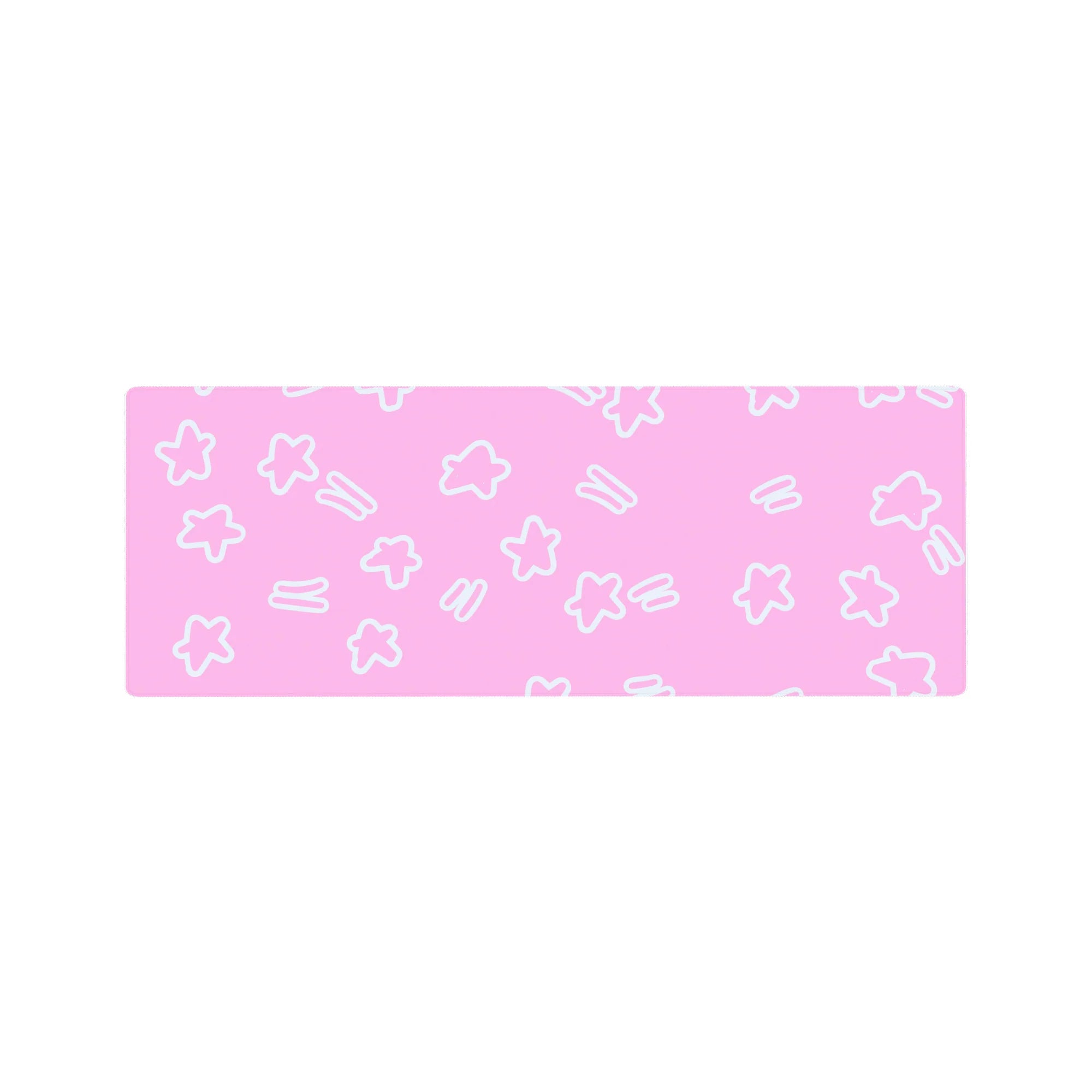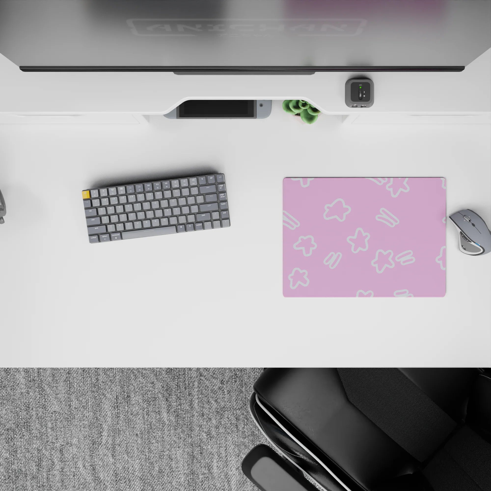 Brighten up your workspace with the Starry Dream deskmat. This pastel pink mat, featuring playful white stars and doodles, brings a fun, whimsical charm to any desk. Perfect for adding a cute and lighthearted touch to your office or gaming setup.