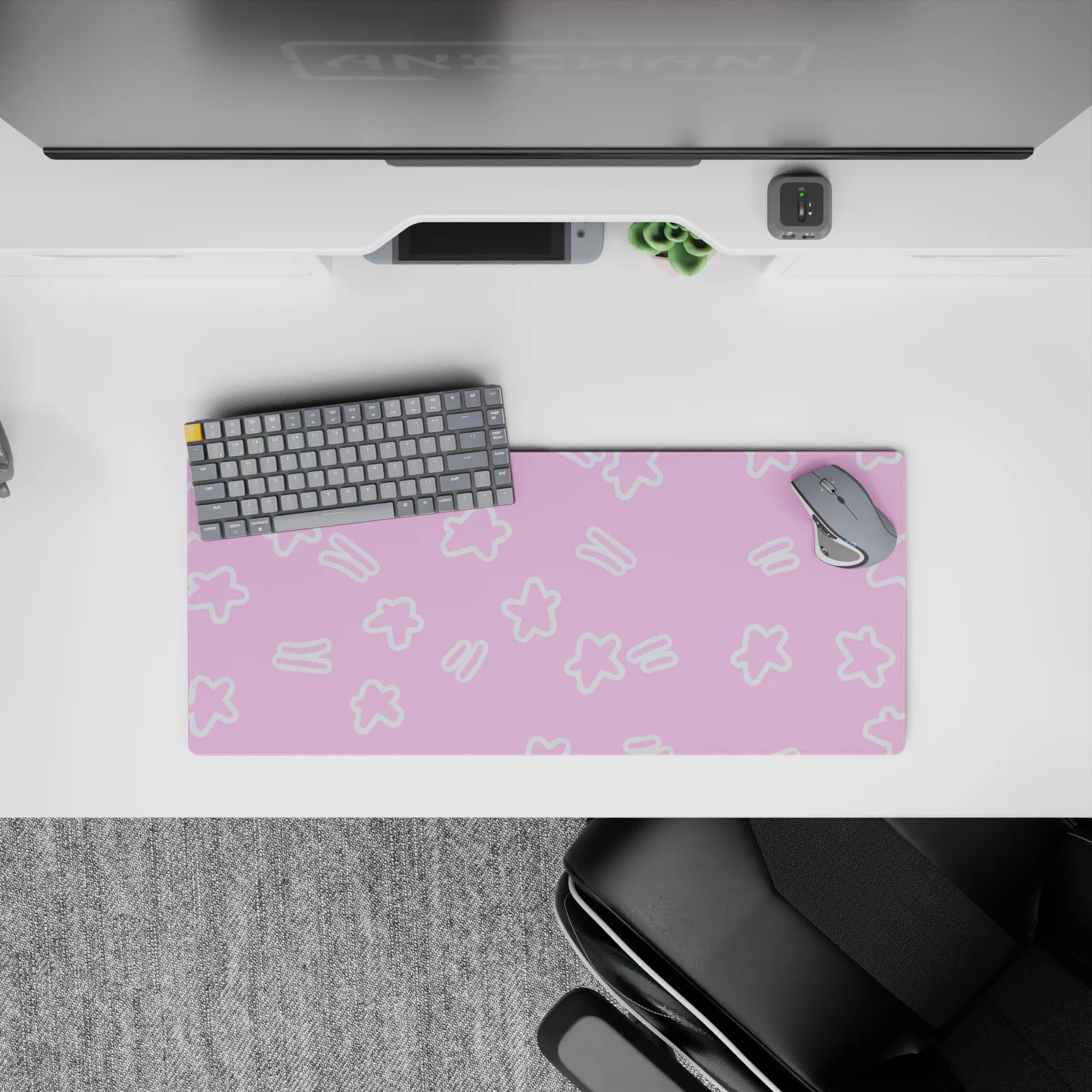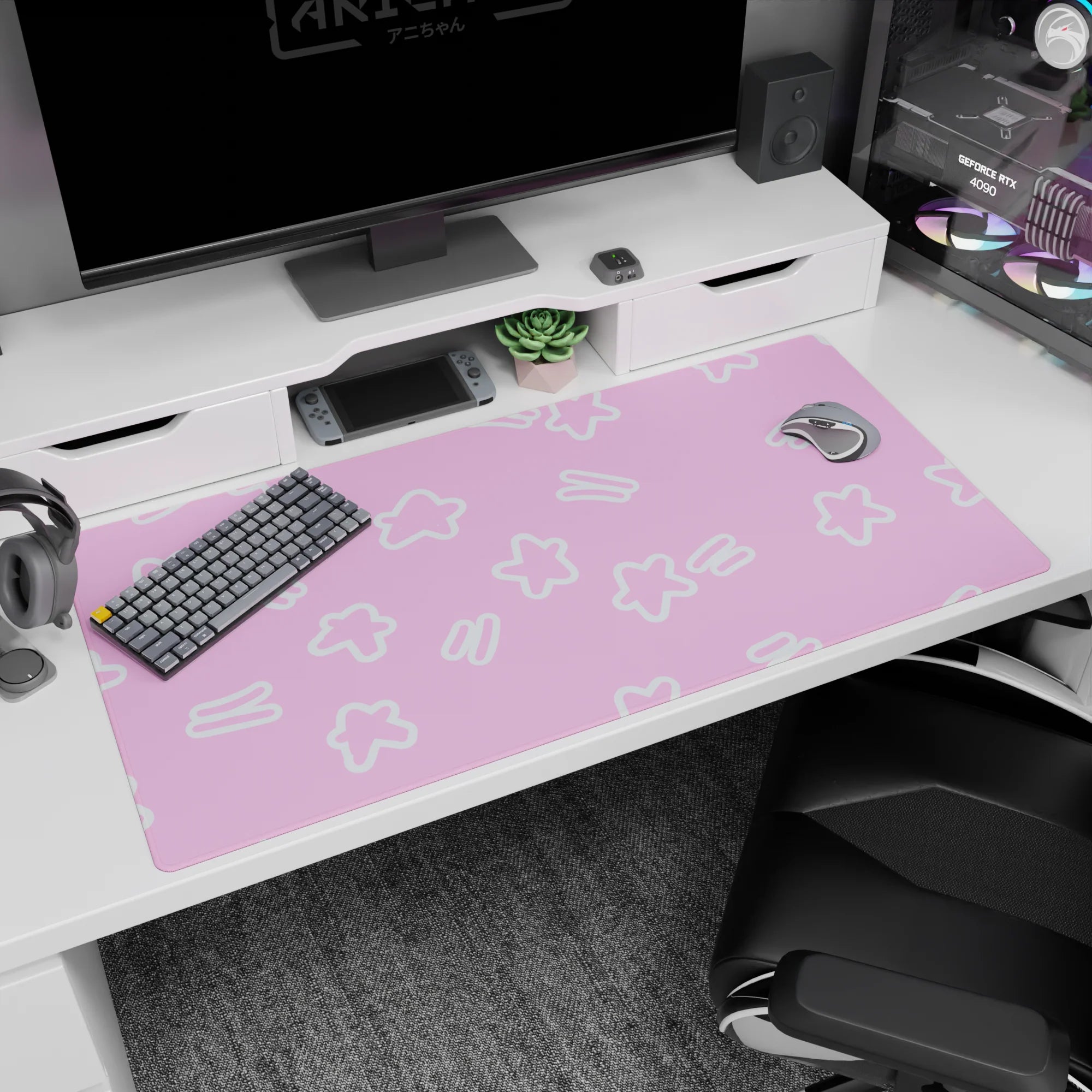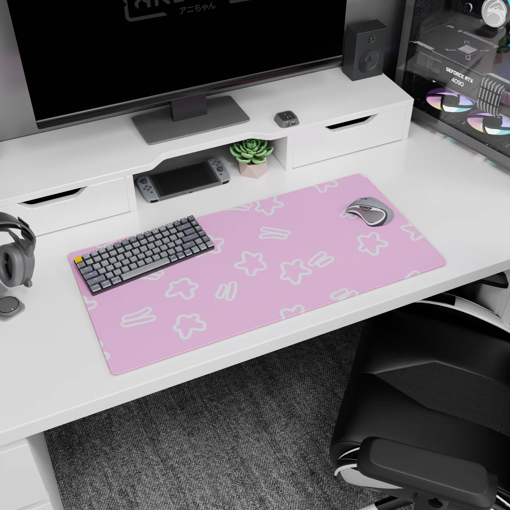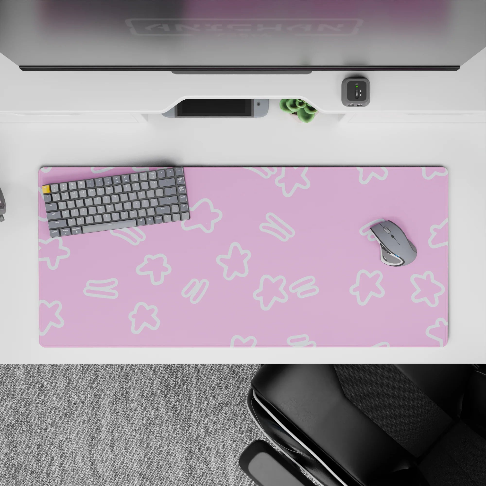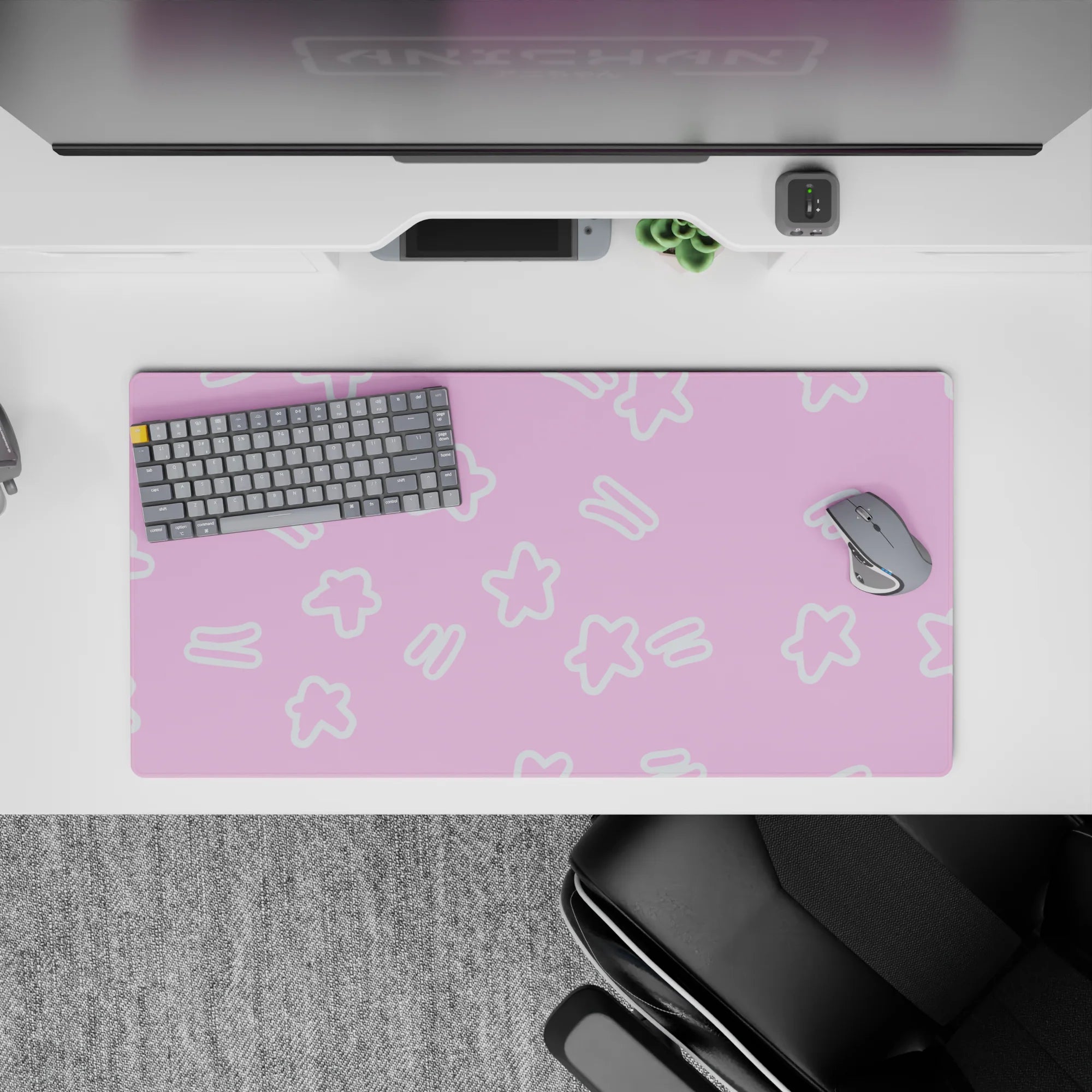 Brighten up your workspace with the Starry Dream deskmat. This pastel pink mat, featuring playful white stars and doodles, brings a fun, whimsical charm to any desk. Perfect for adding a cute and lighthearted touch to your office or gaming setup.