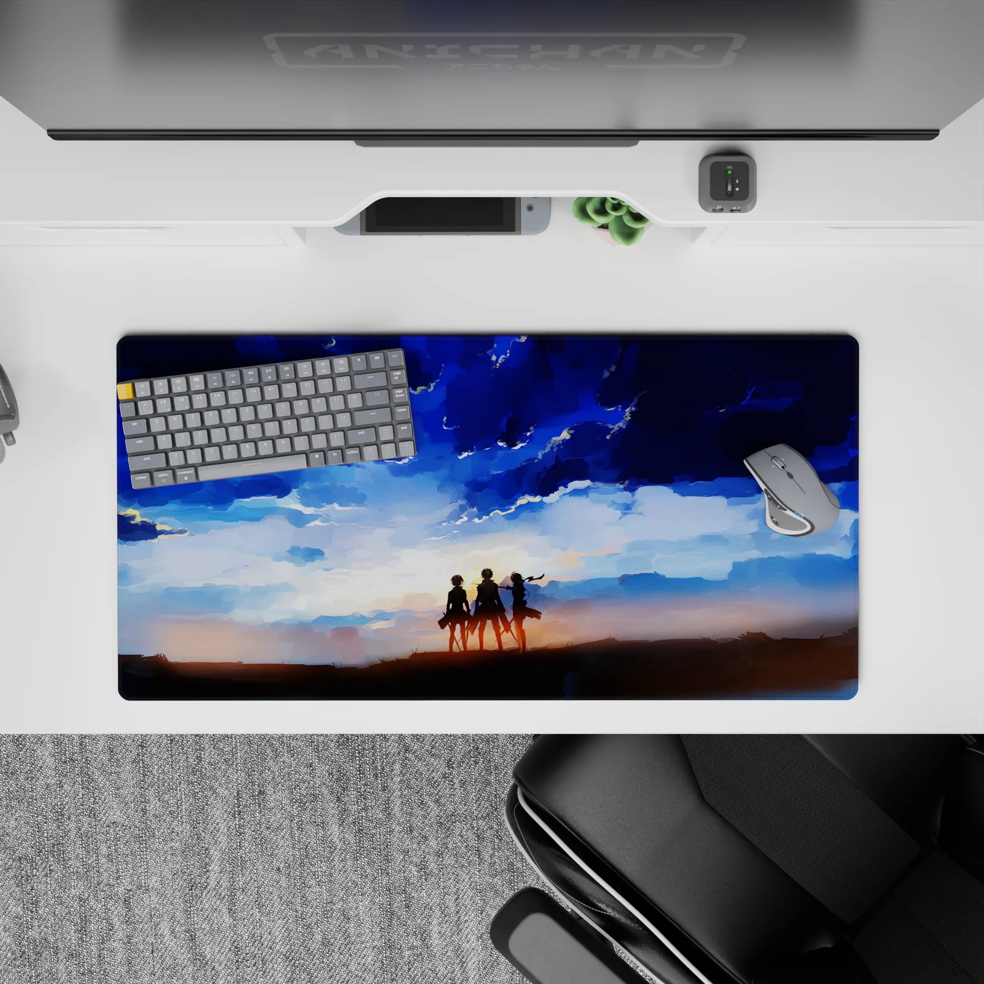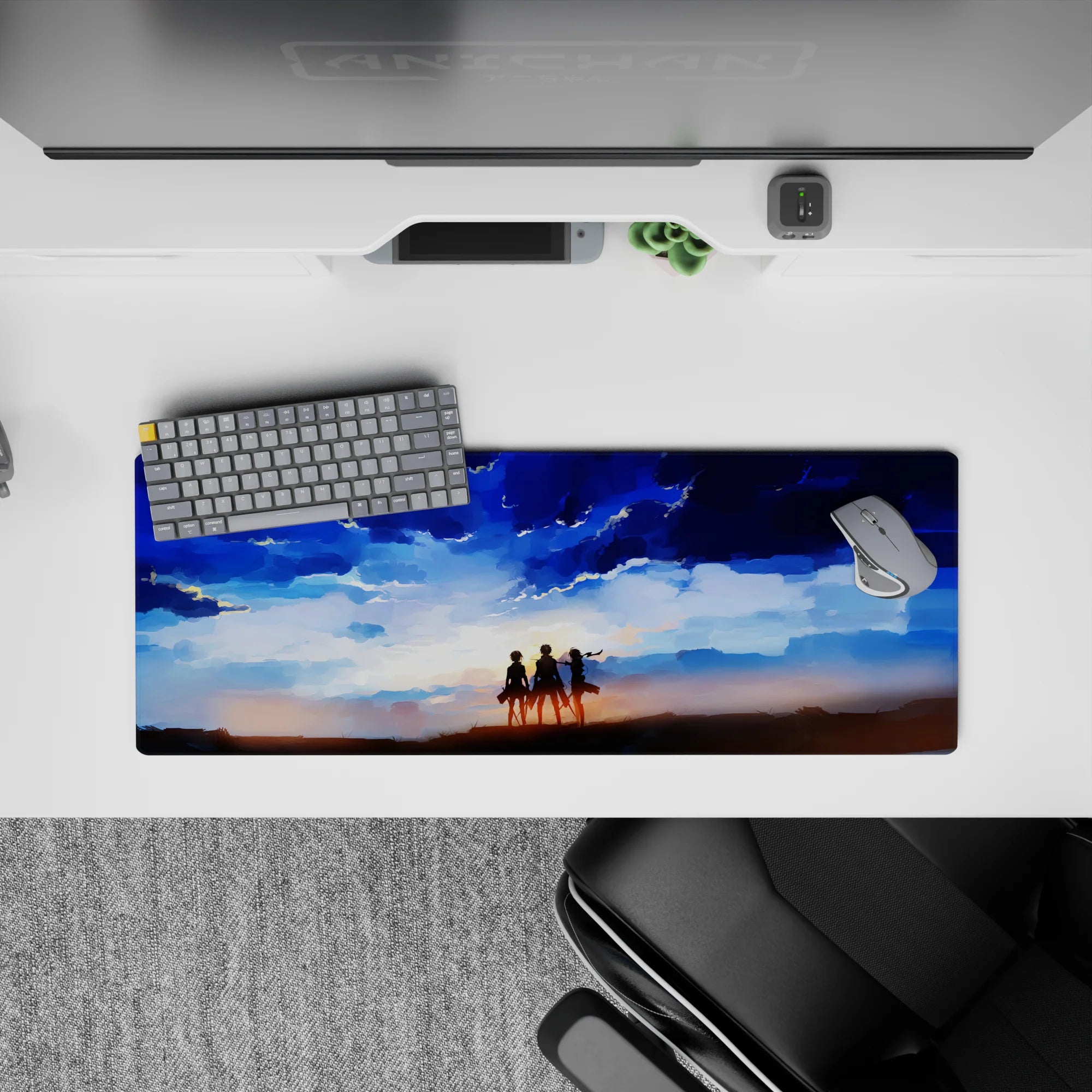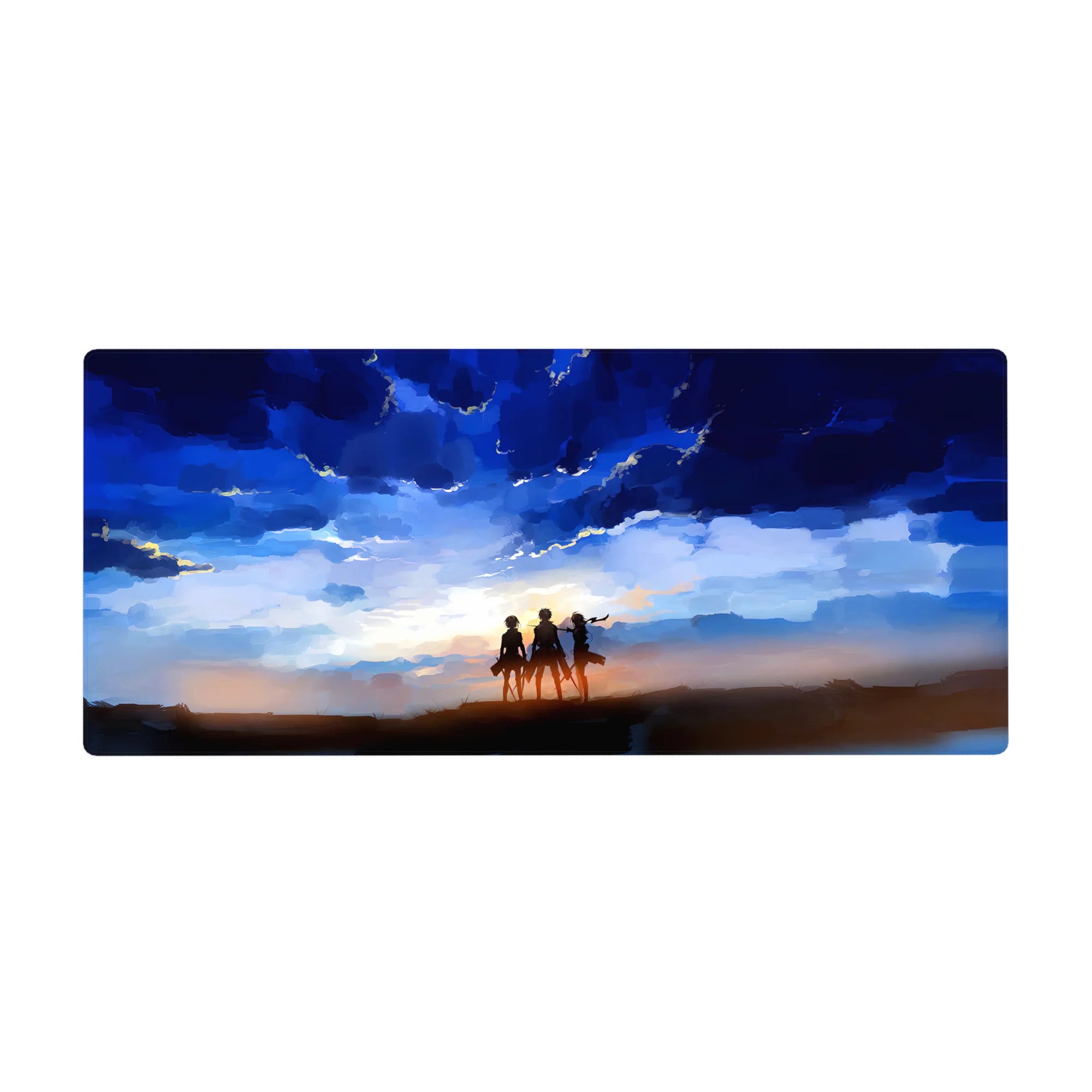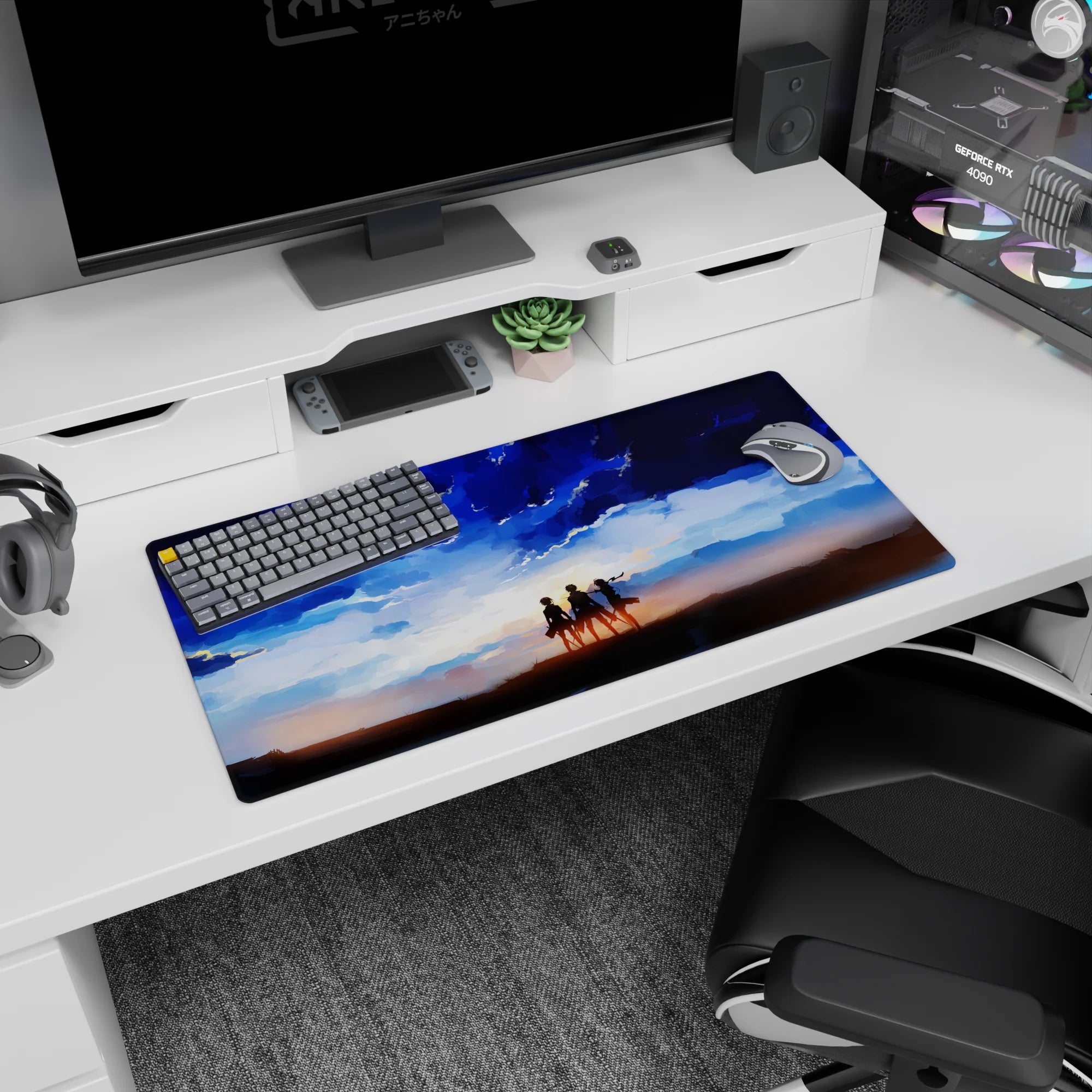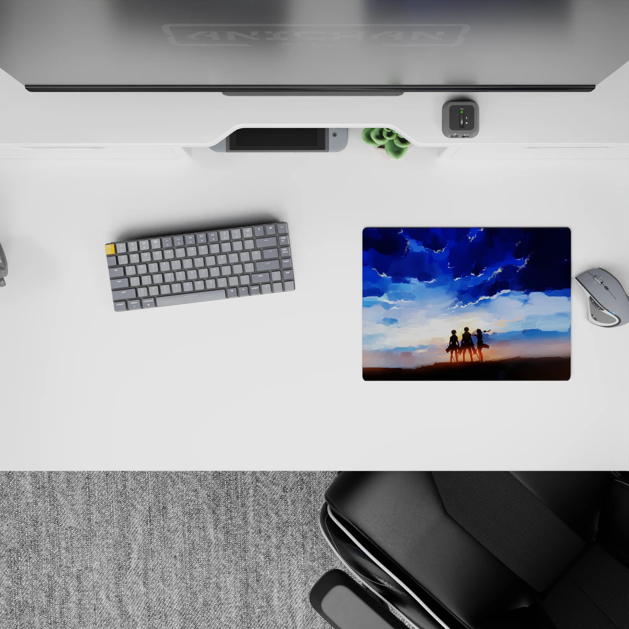 Step into the world of Attack on Titan with this anime mouse pad, featuring a stunning, painterly vision of Eren, Mikasa, and Armin against a breathtaking sky. A symbol of hope and adventure, perfect for any AOT fan’s desk!