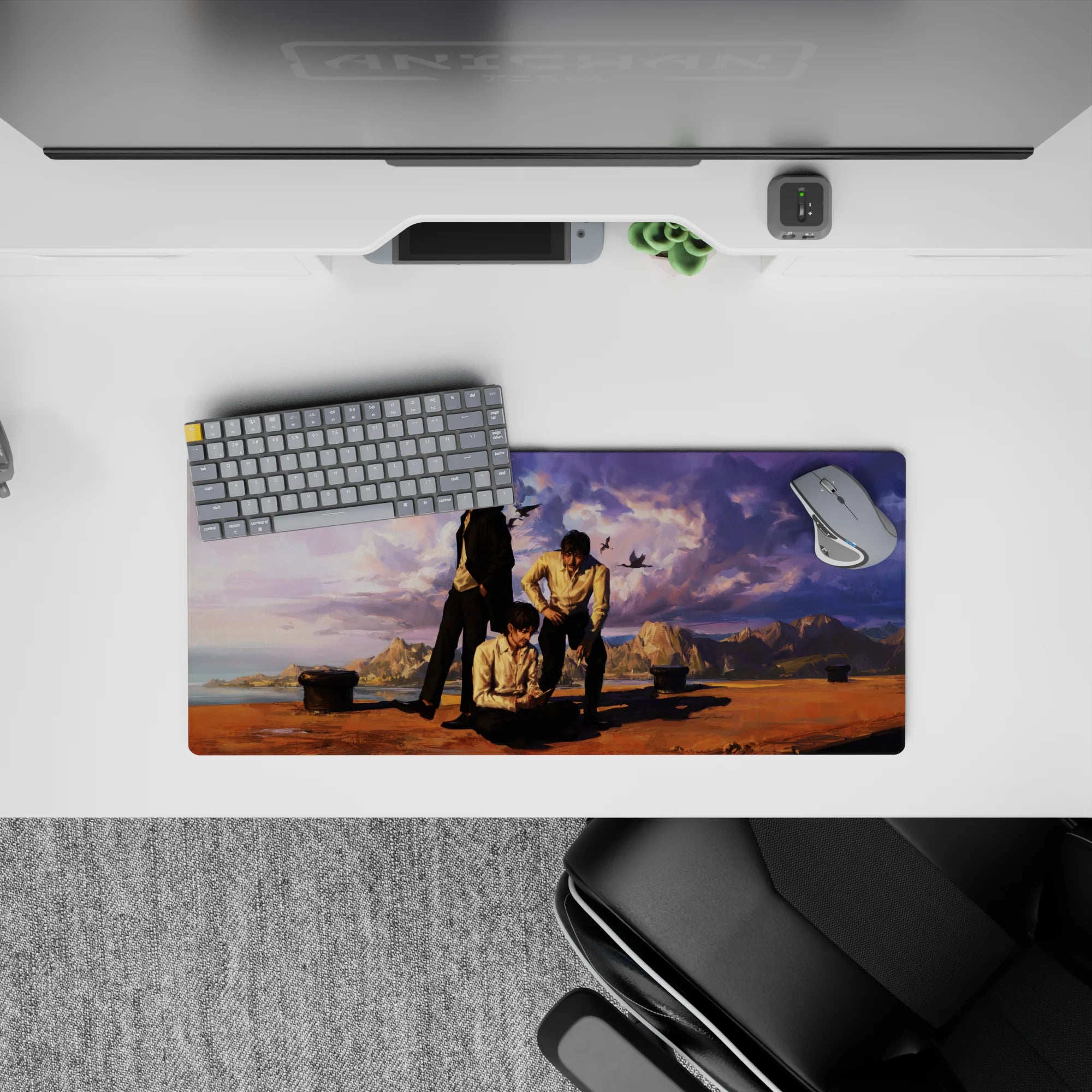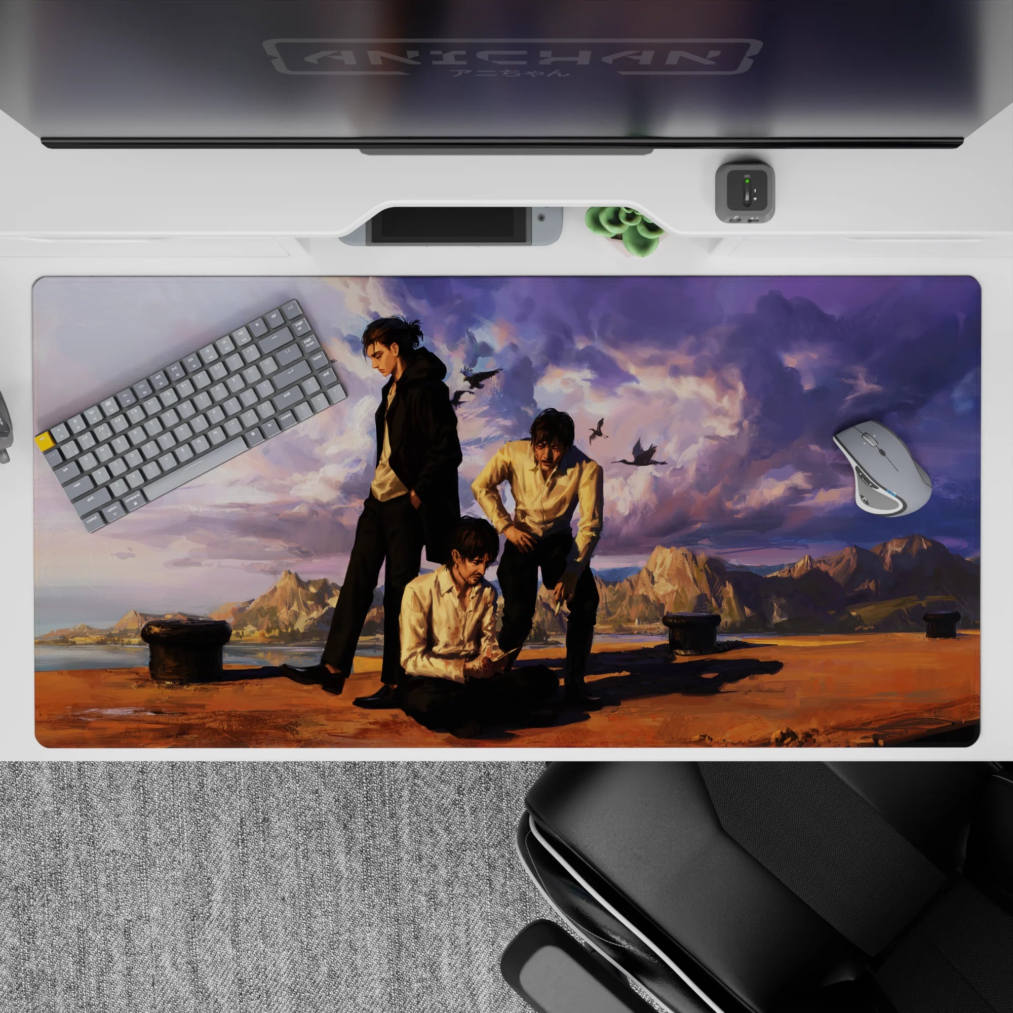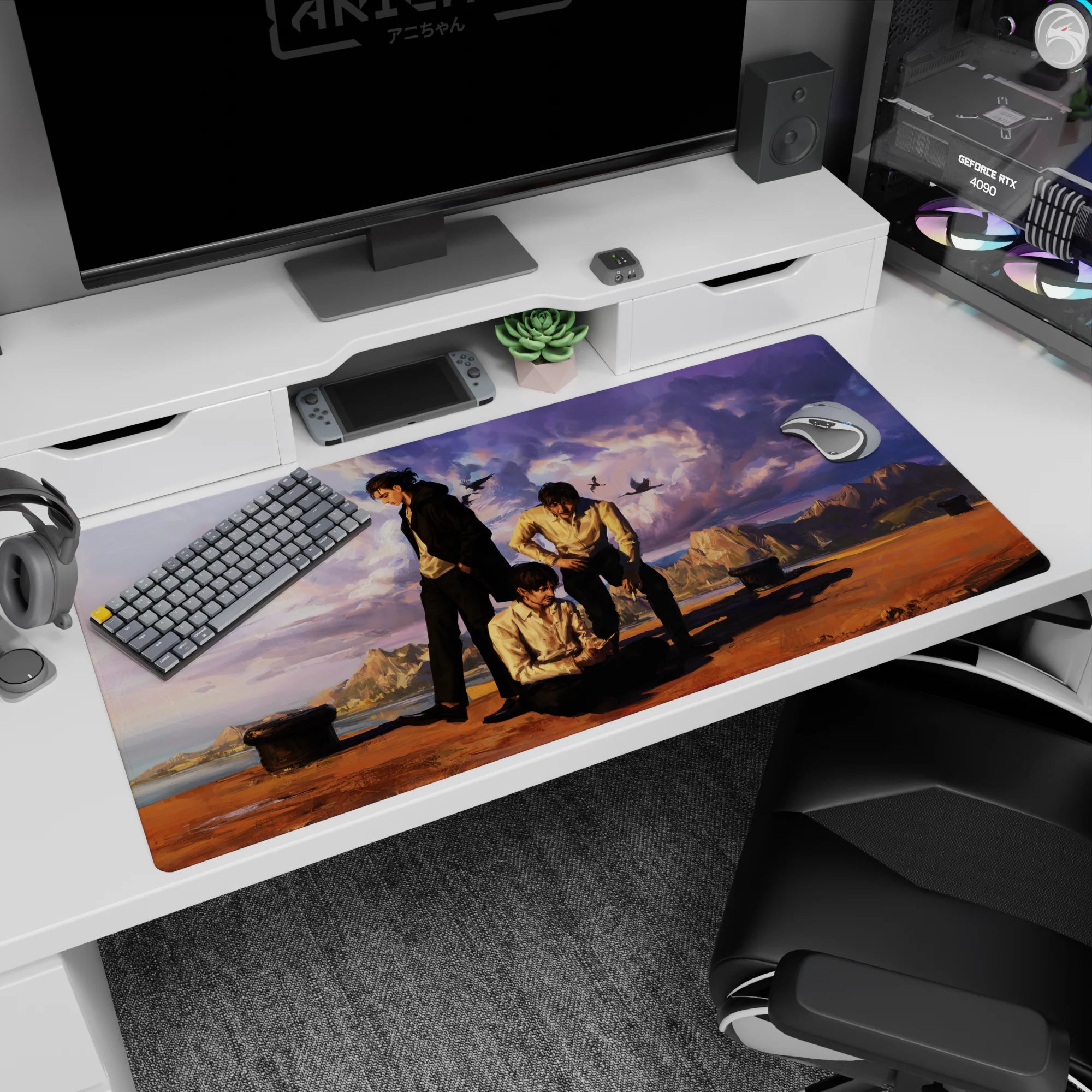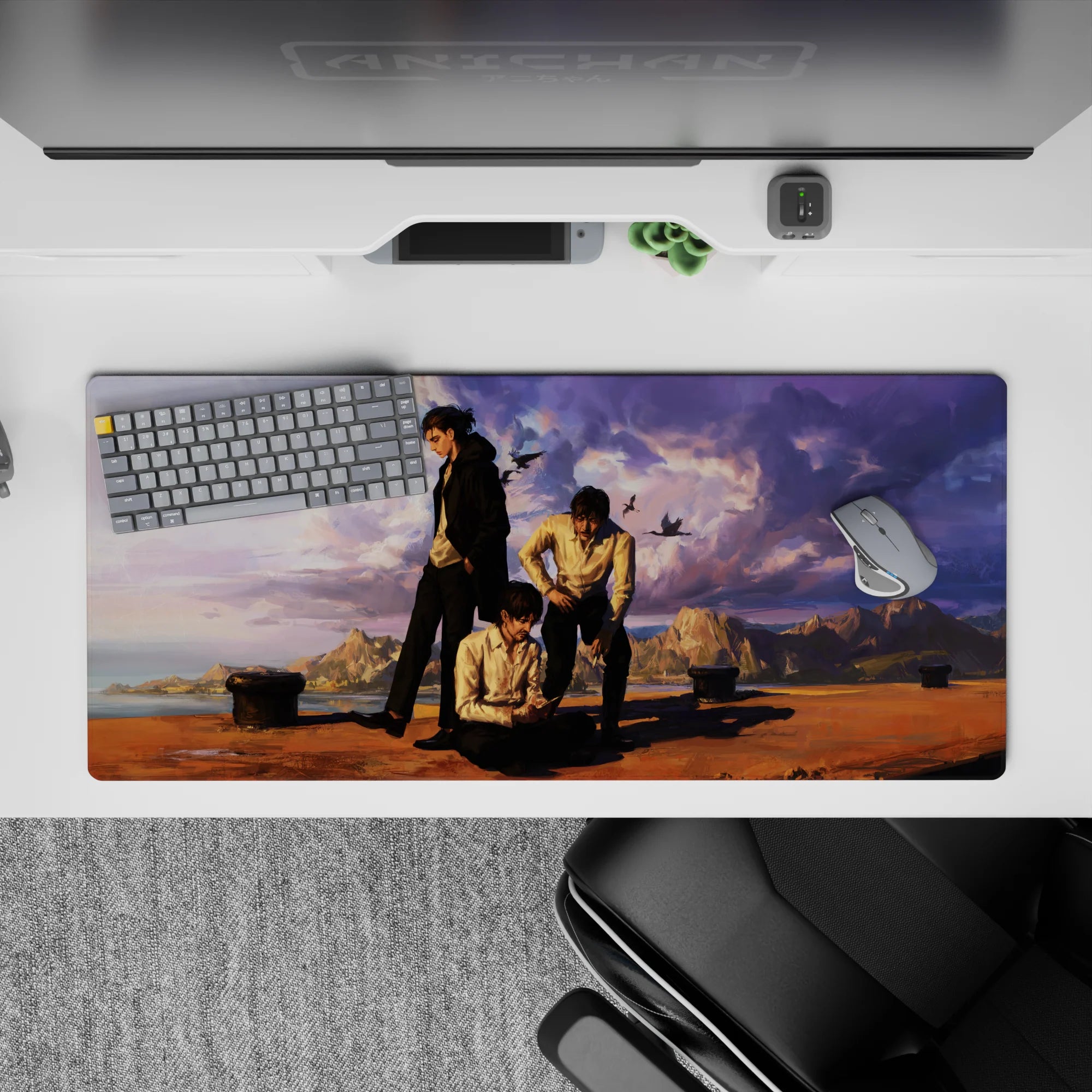 Experience the emotional depth of Eren, Mikasa, and Armin with this Attack on Titan anime mouse pad. A painterly masterpiece capturing the quiet moments before fate unfolds. A desk pad for those who cherish the beauty of their story.