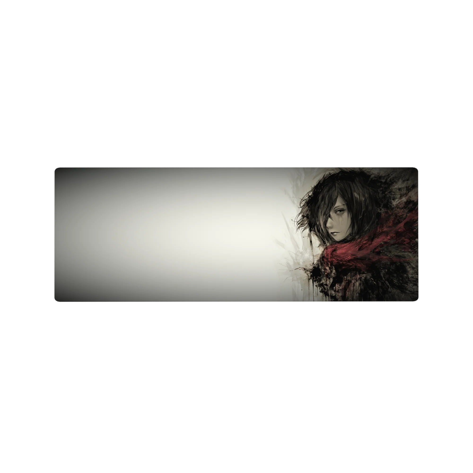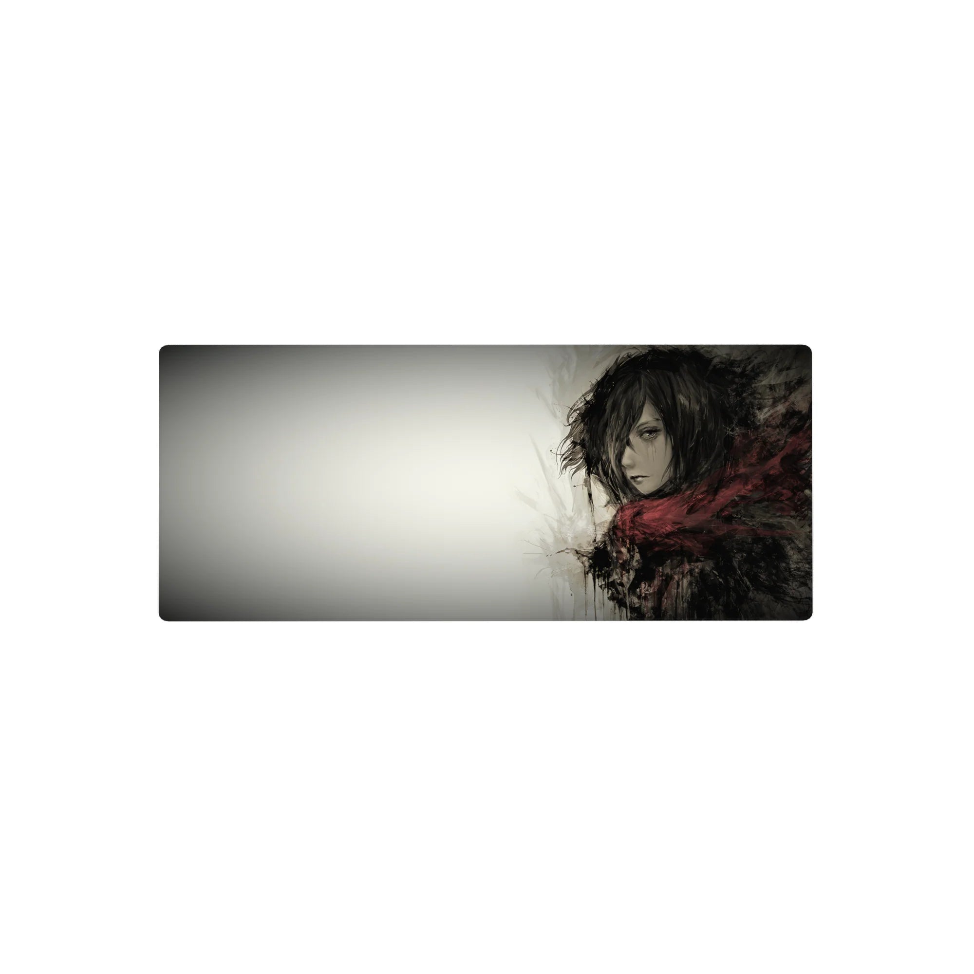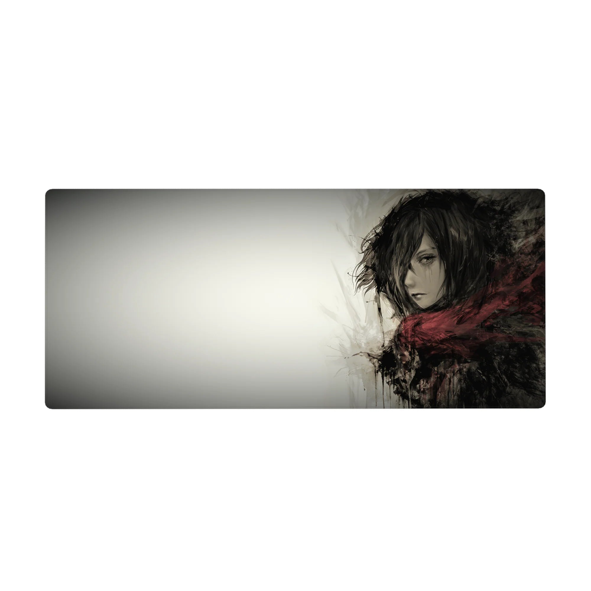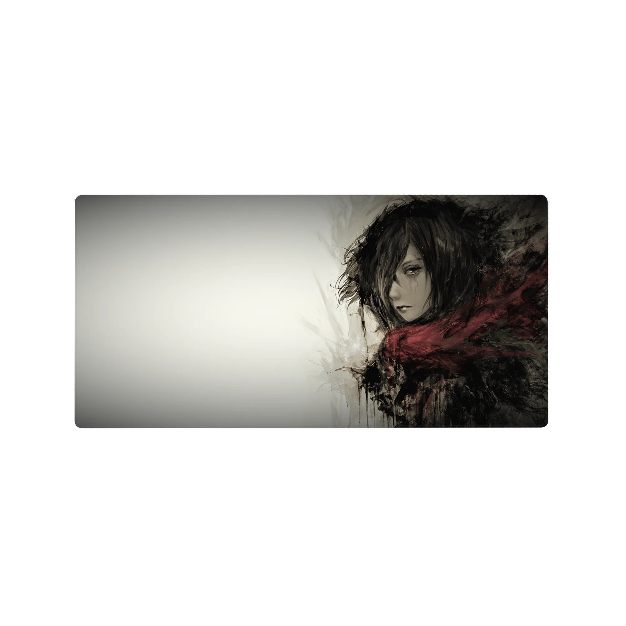 Embrace the quiet strength of Mikasa Ackerman with this stunning Attack on Titan anime mouse pad. Featuring a grayscale watercolor design, this desk pad captures her fierce yet solemn presence, wrapped in her iconic red scarf. Perfect for any AOT fan’s workspace.