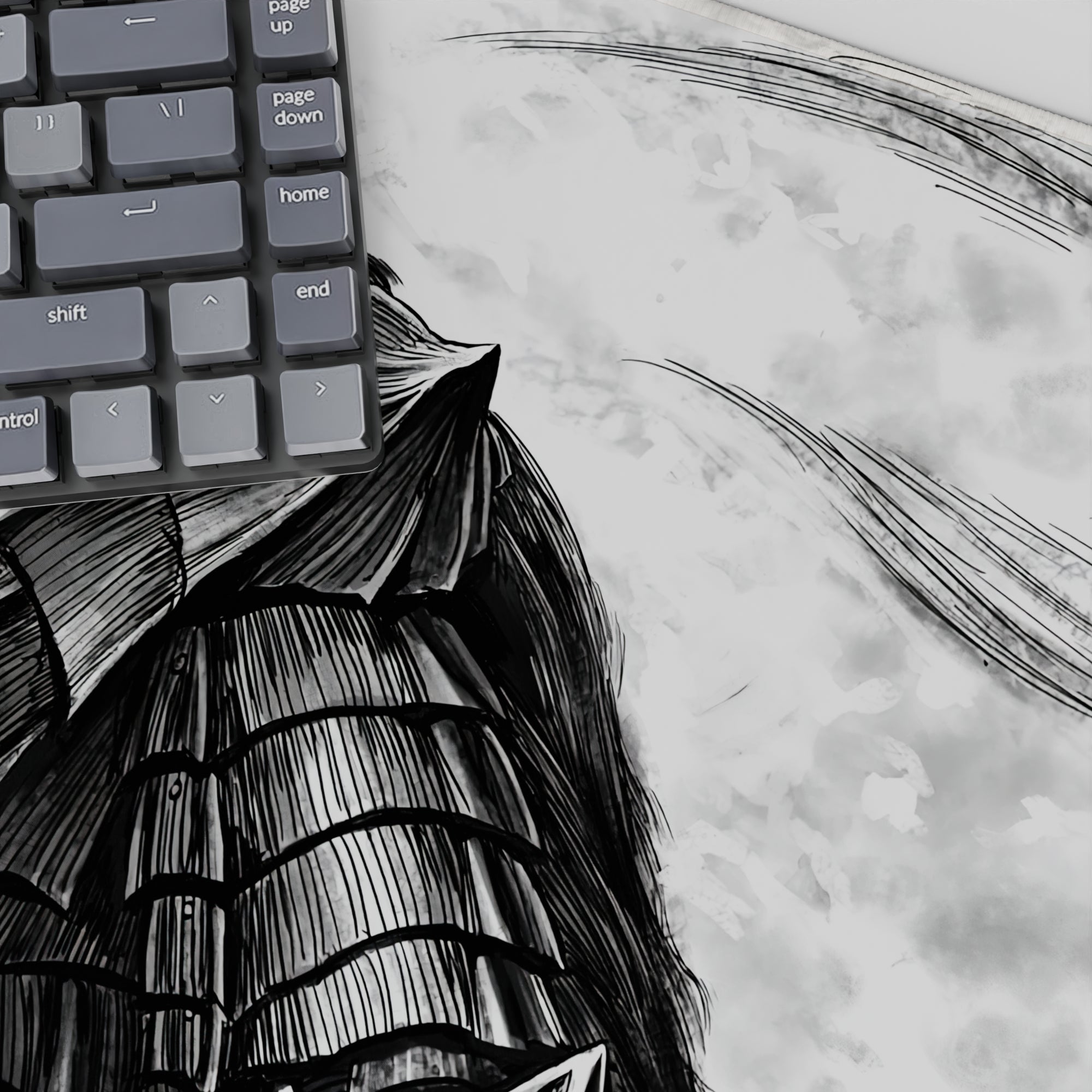 Dive into the raw power of Guts and his Berserker Armor with this Berserk desk pad. The fierce red-eyed Beast of Darkness emerges as part of Guts’ transformation, symbolizing the terrifying force living within him. A must-have for any Berserk fan seeking an intense addition to their setup.