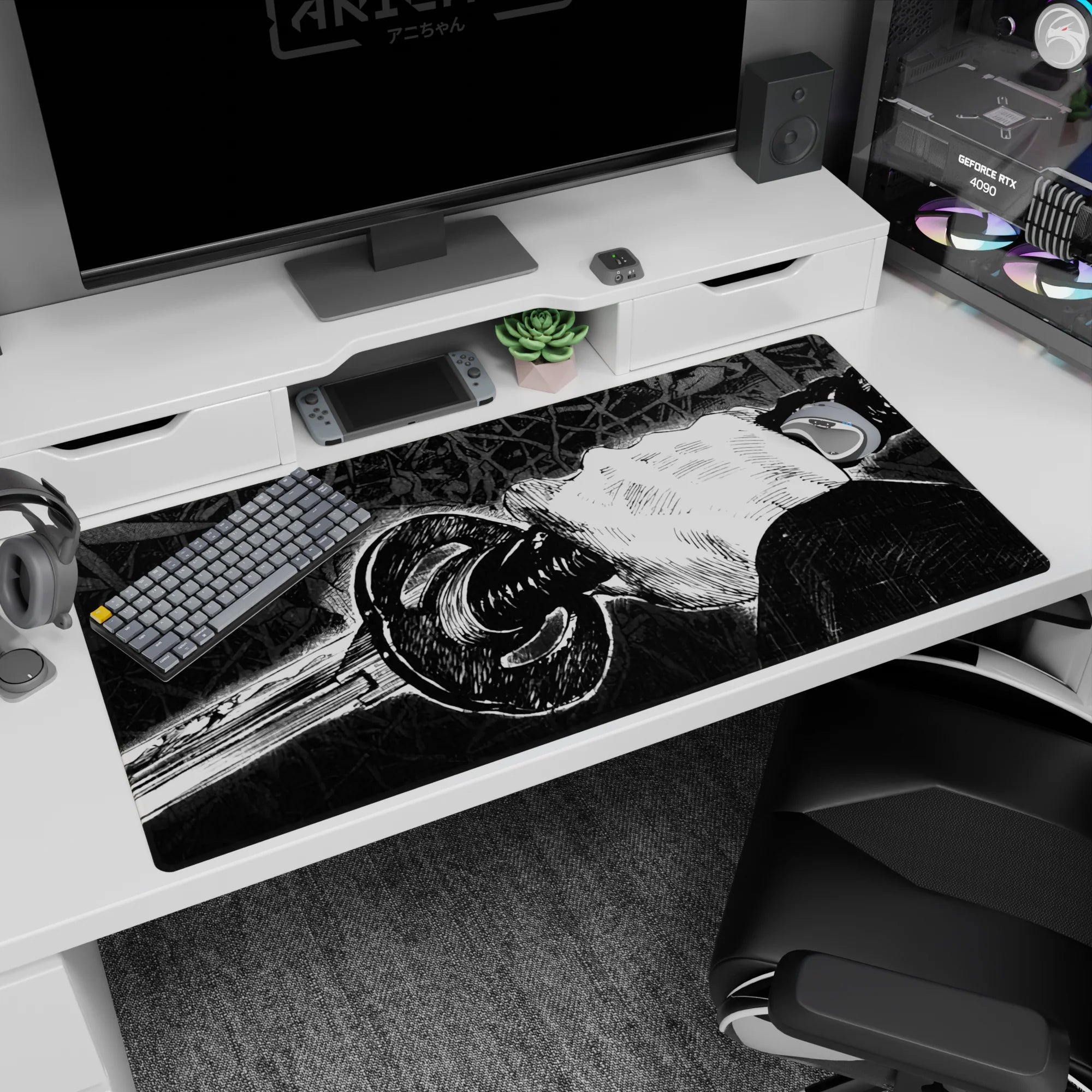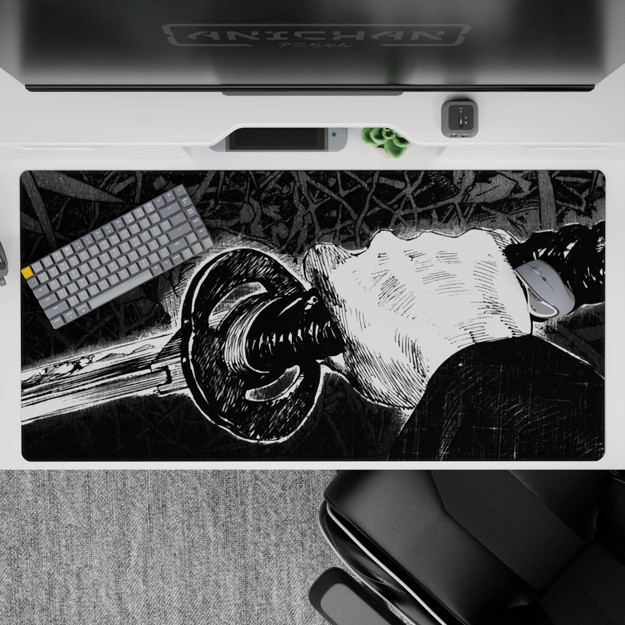Steel meets shadow in this anime mouse pad, where a warrior’s grip tightens around a gleaming blade. Sharp contrasts and bold lines create an atmosphere of tension and precision—ideal for those who live for the fight.