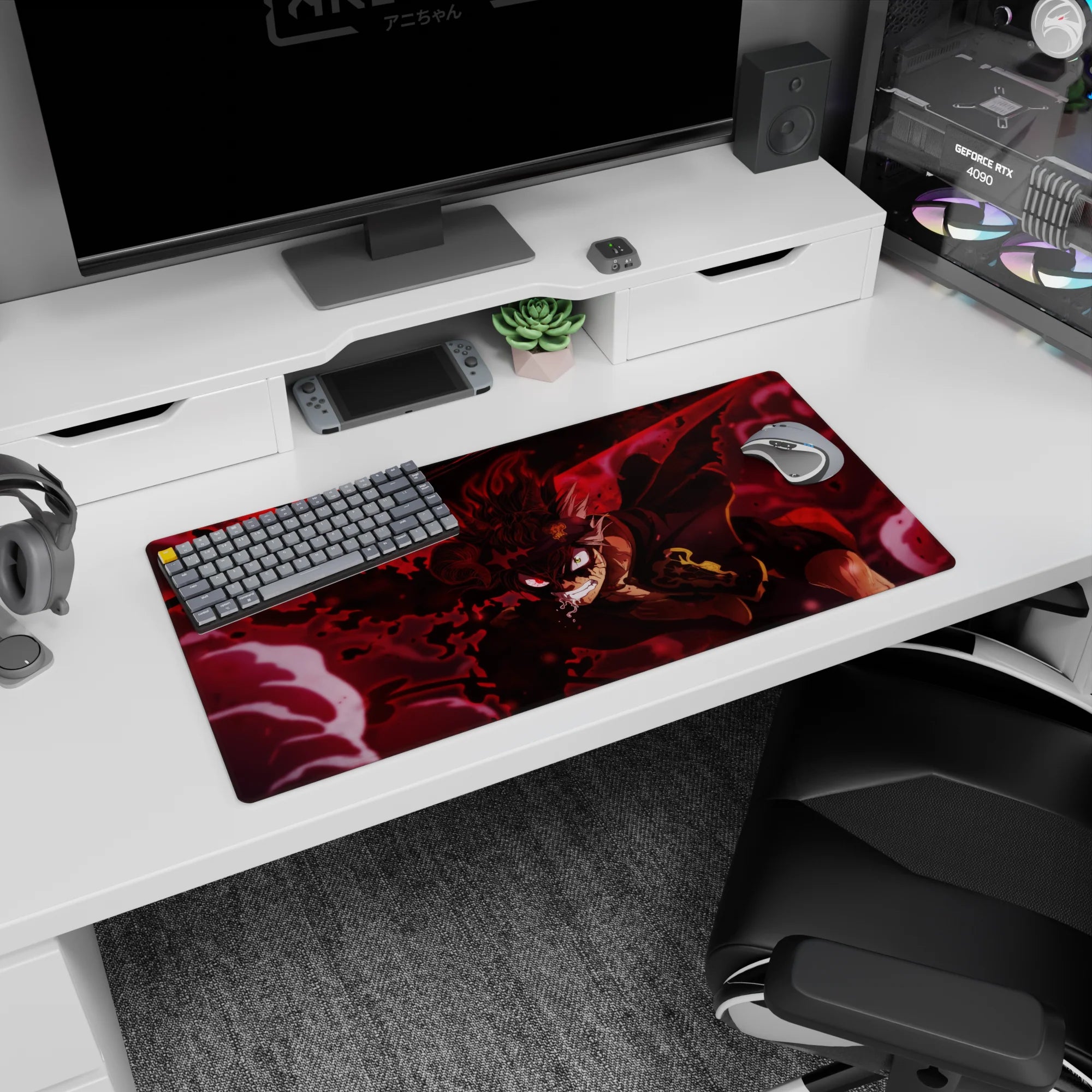 This anime mouse pad showcases Asta’s Devil Union Mode from Black Clover, surrounded by a crimson inferno. His burning red eye and demonic aura make this the perfect anime desk pad for fans of unstoppable power.