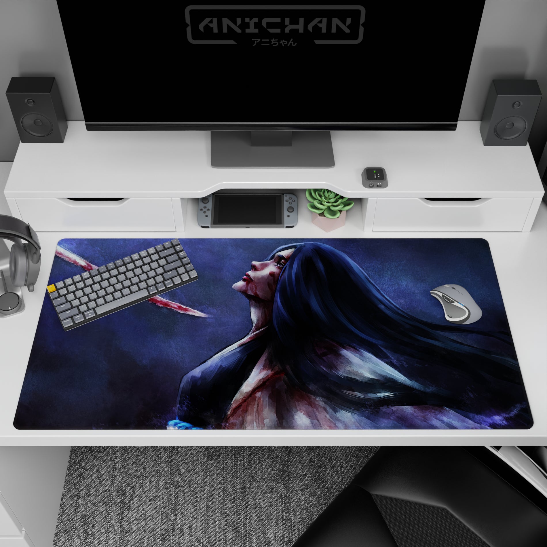 Experience the allure of quiet tragedy with this anime mouse pad featuring Retsu Unohana from Bleach. Her haunting gaze and ethereal elements create a captivating scene. Transform your desk into a whispering canvas of blues and purples. Perfect for those who appreciate subtlety and art.