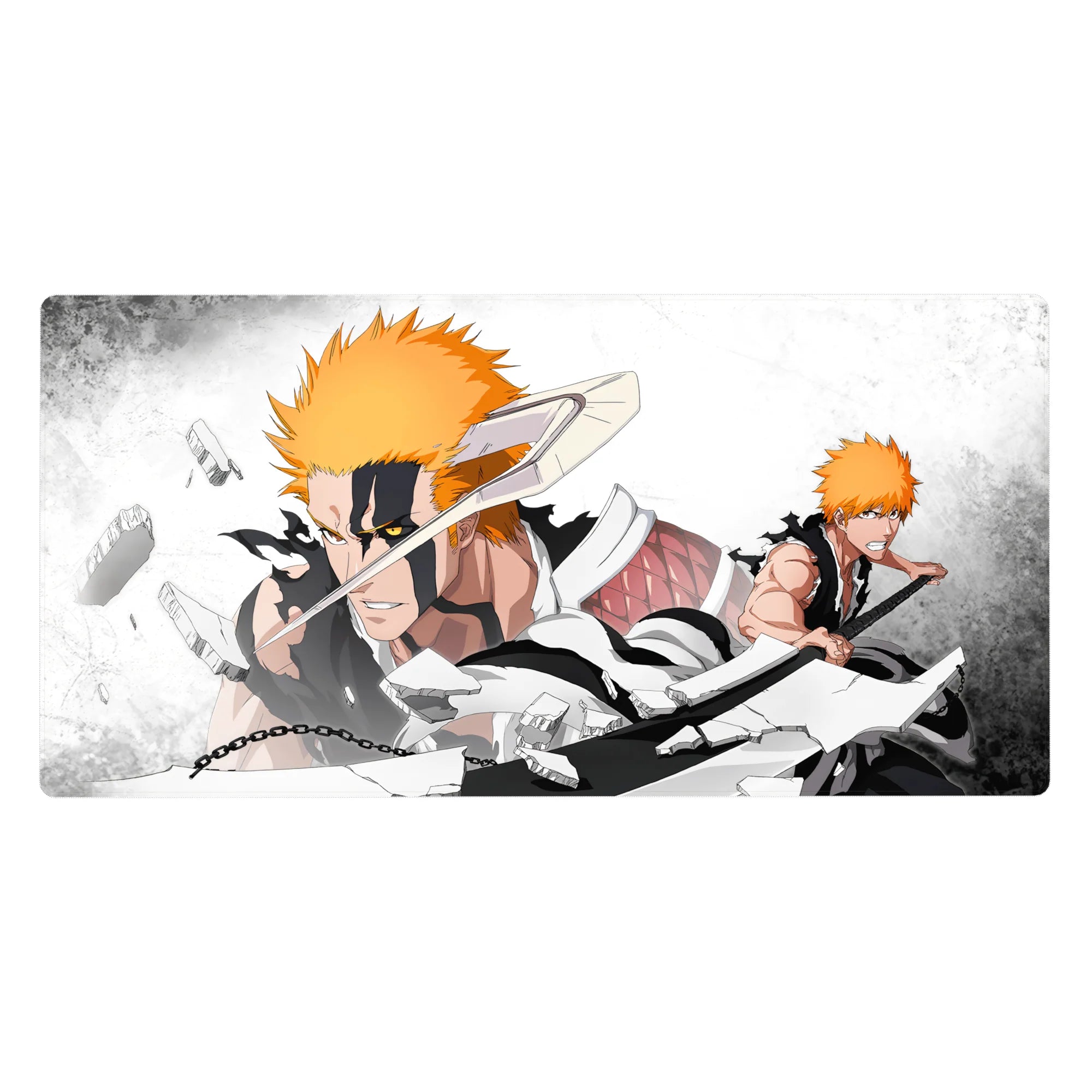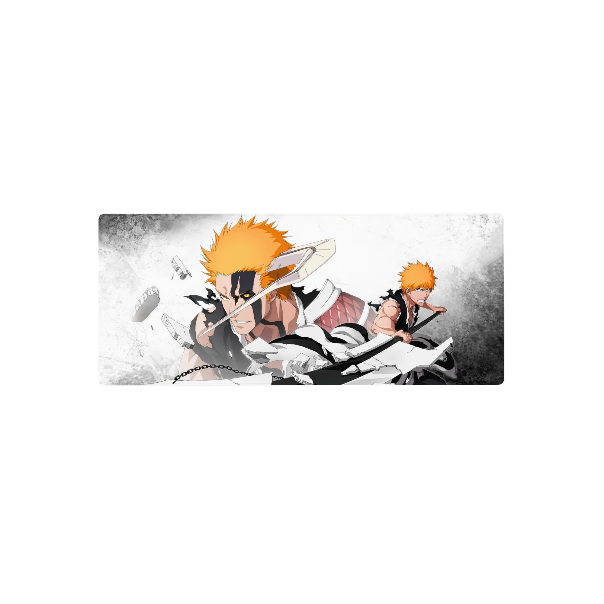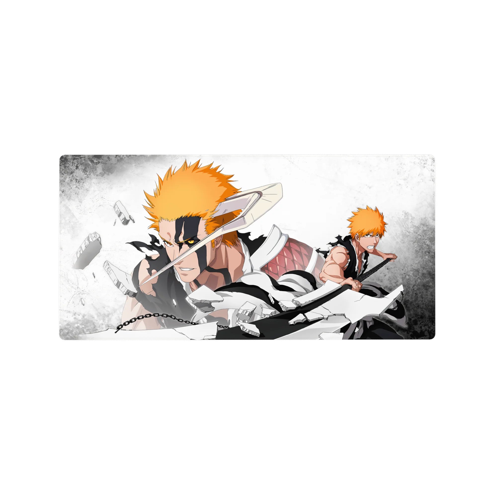 Ichigo Kurosaki battles his Vasto Lorde form in this anime mouse pad, a high-energy design bursting with destruction and intensity. With bold contrasts and shattered debris, this Bleach-inspired piece is perfect for fans who love the struggle between power and control.