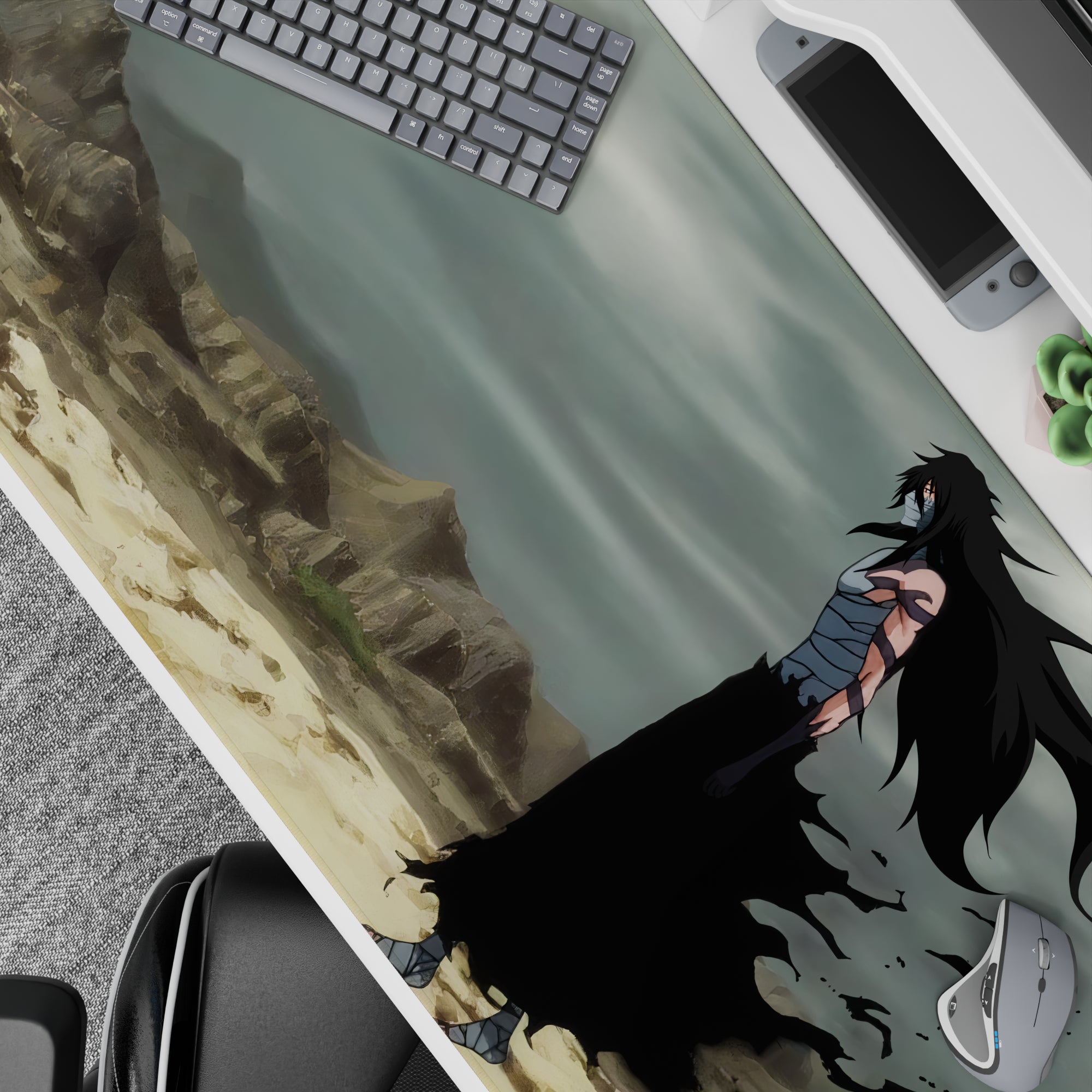 Anime mouse pad 36x16 inches featuring Ichigo Kurosaki in Hollow form from Bleach, set in a desolate, windswept wasteland.