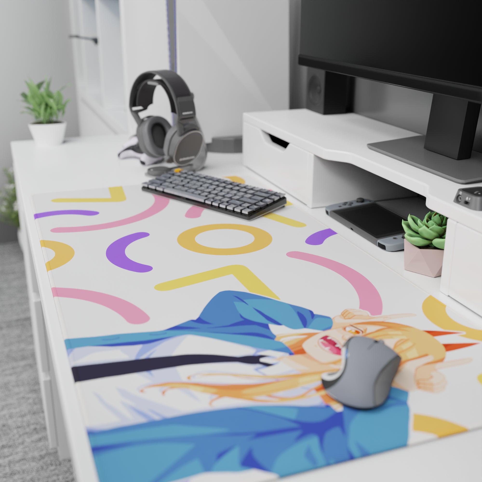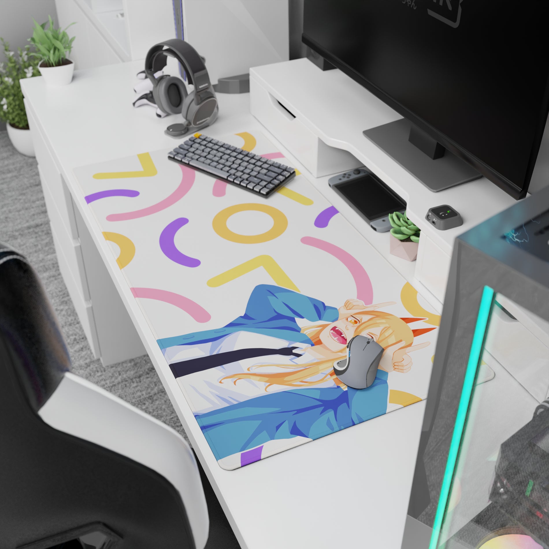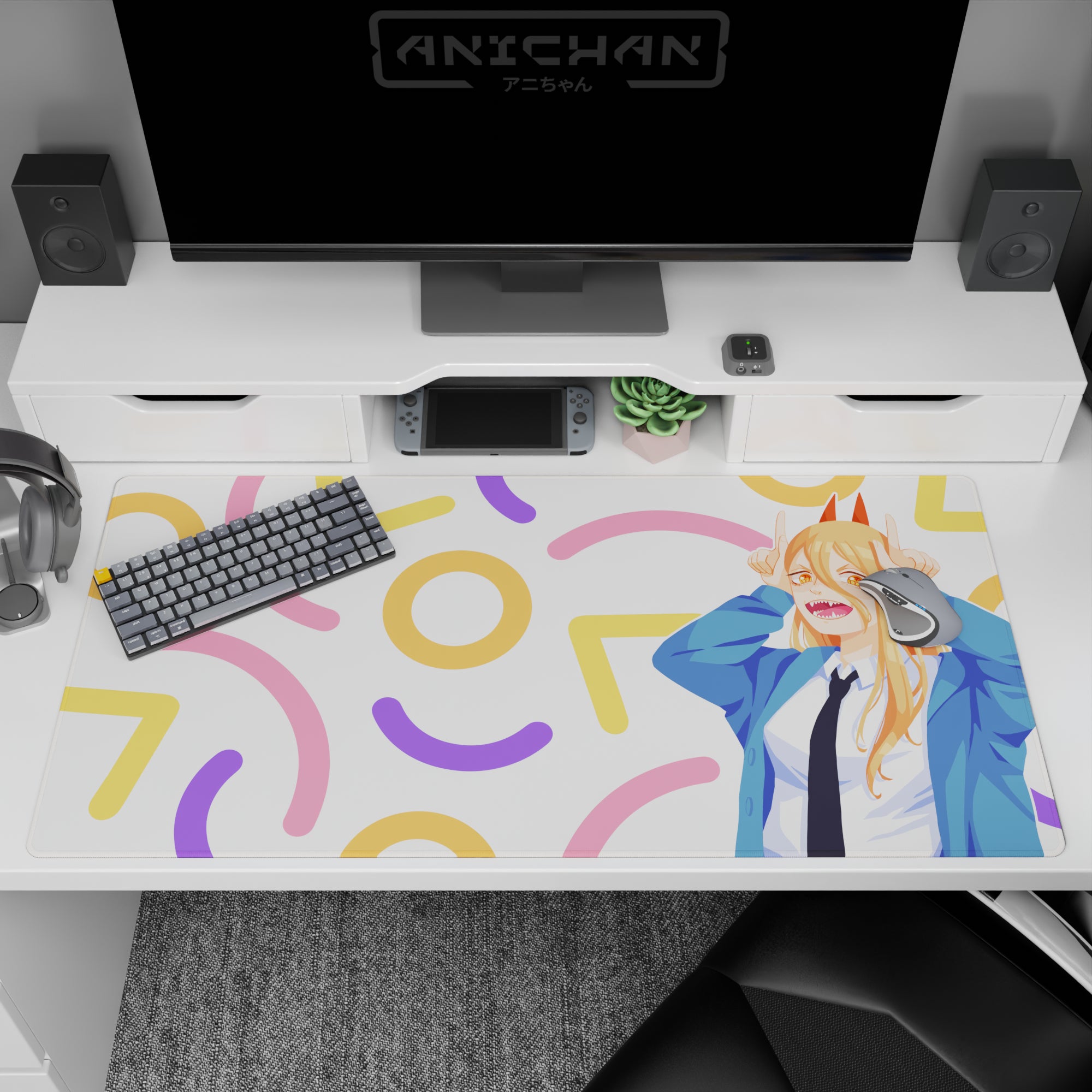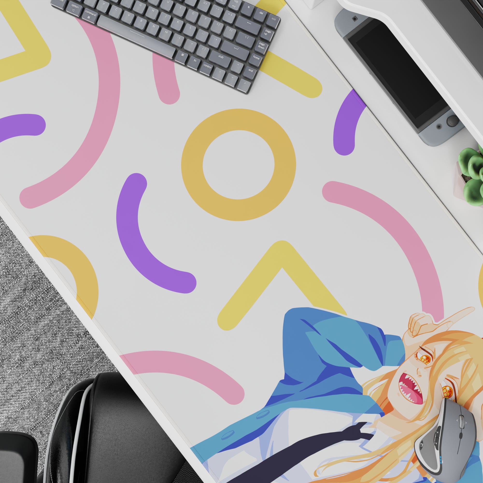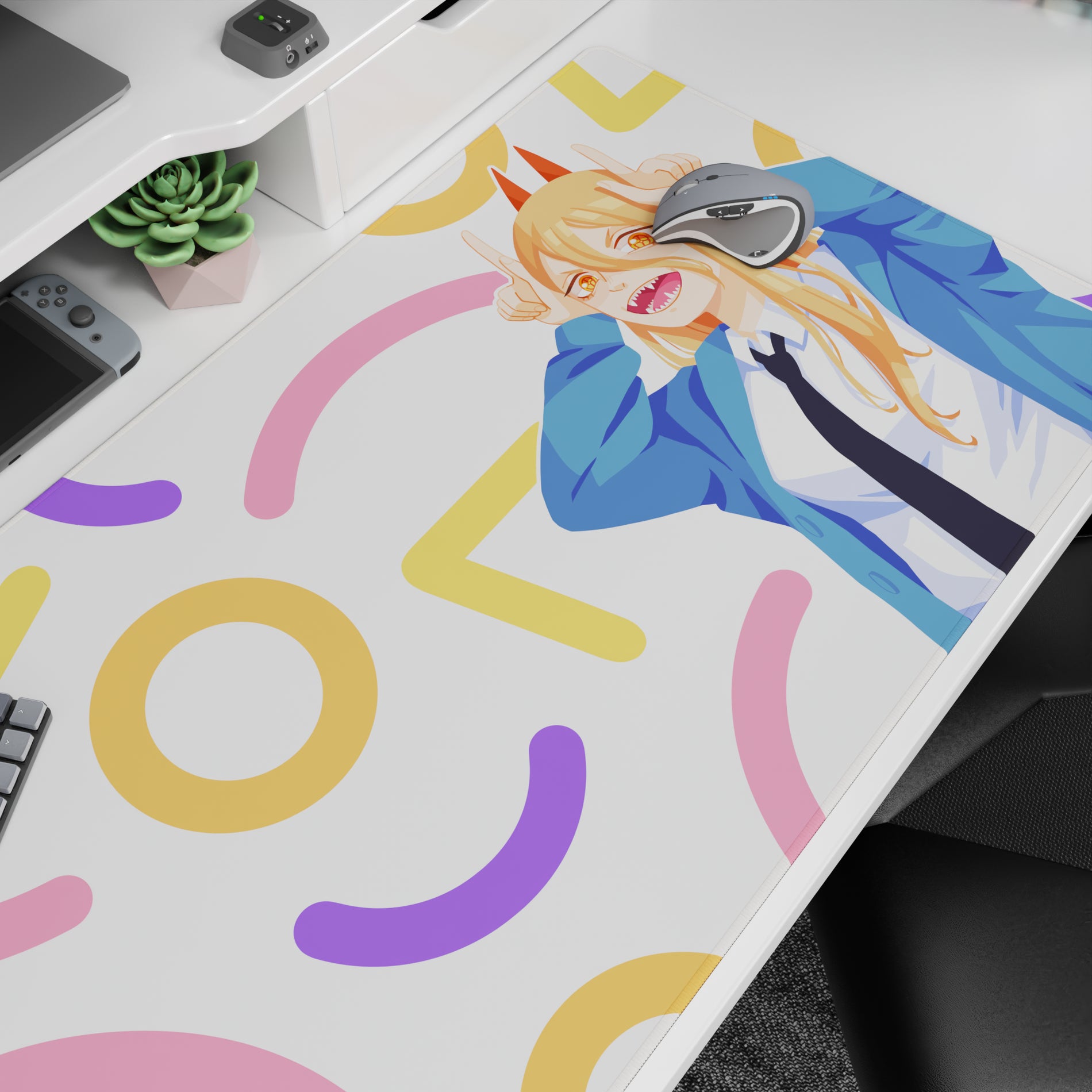 Get a burst of excitement with this anime mouse pad featuring Power from Chainsaw Man. Ideal for fans who crave chaotic energy and vibrant colors on their desk. Its lively pastel confetti design makes working or gaming more fun. Experience the excitement of an anime mouse pad today!