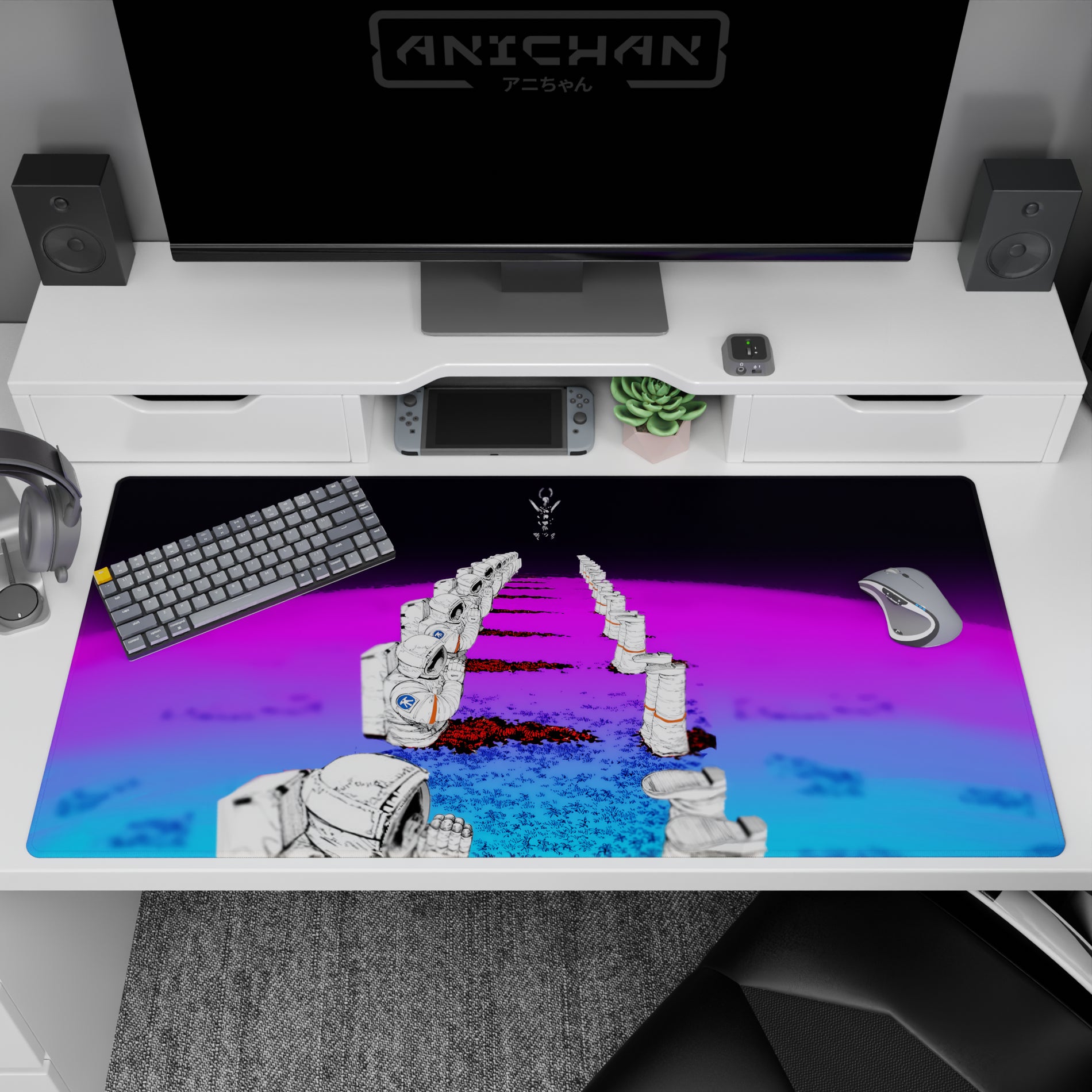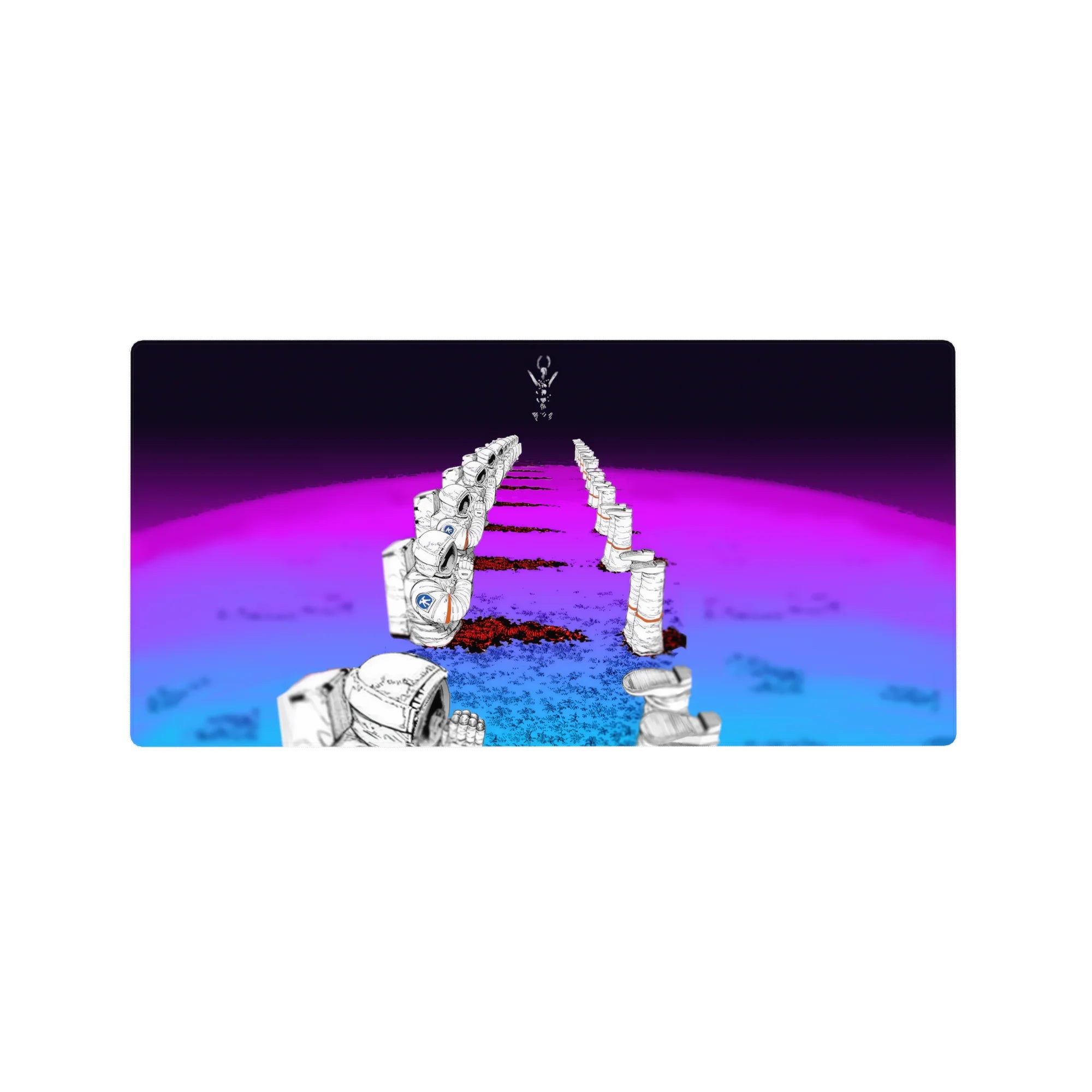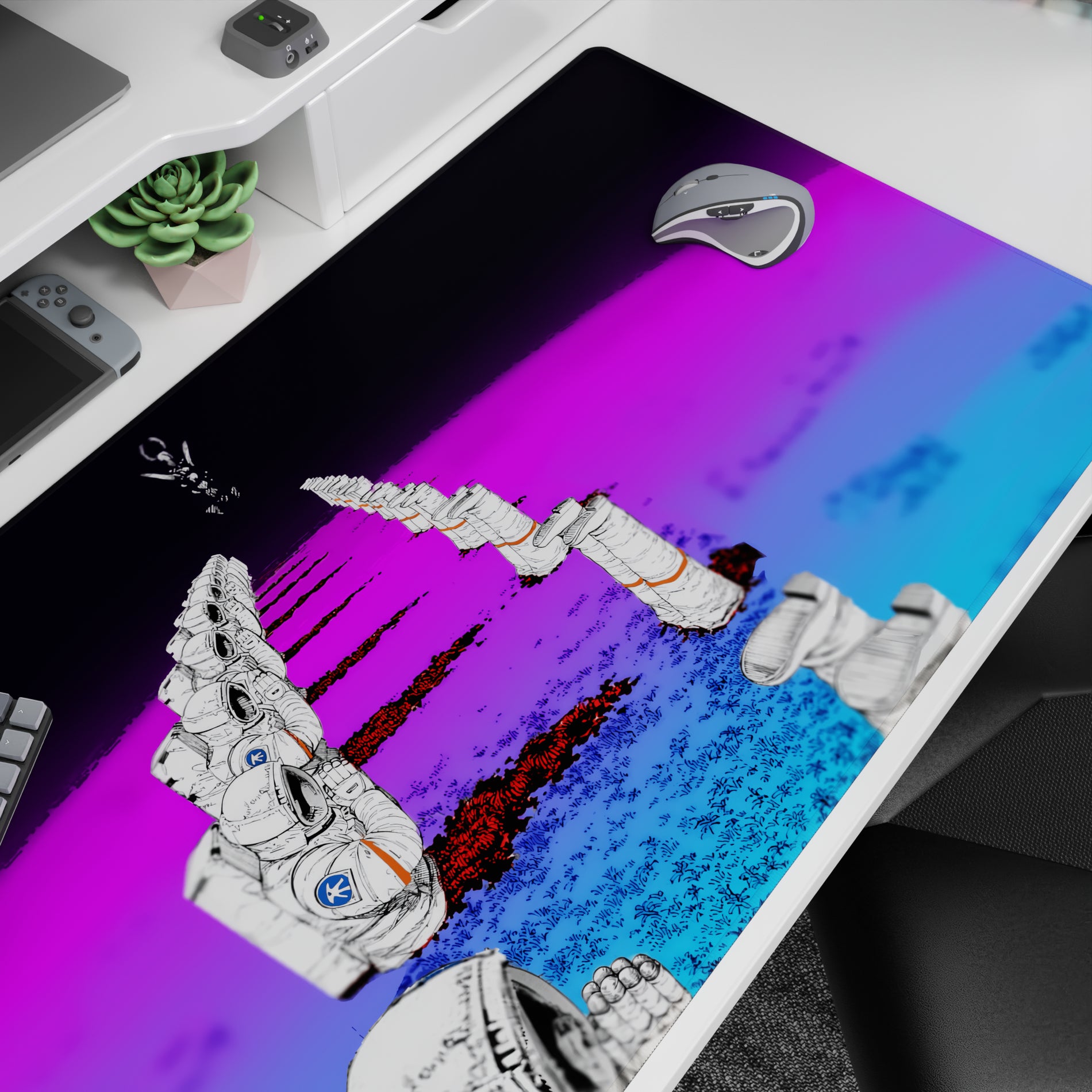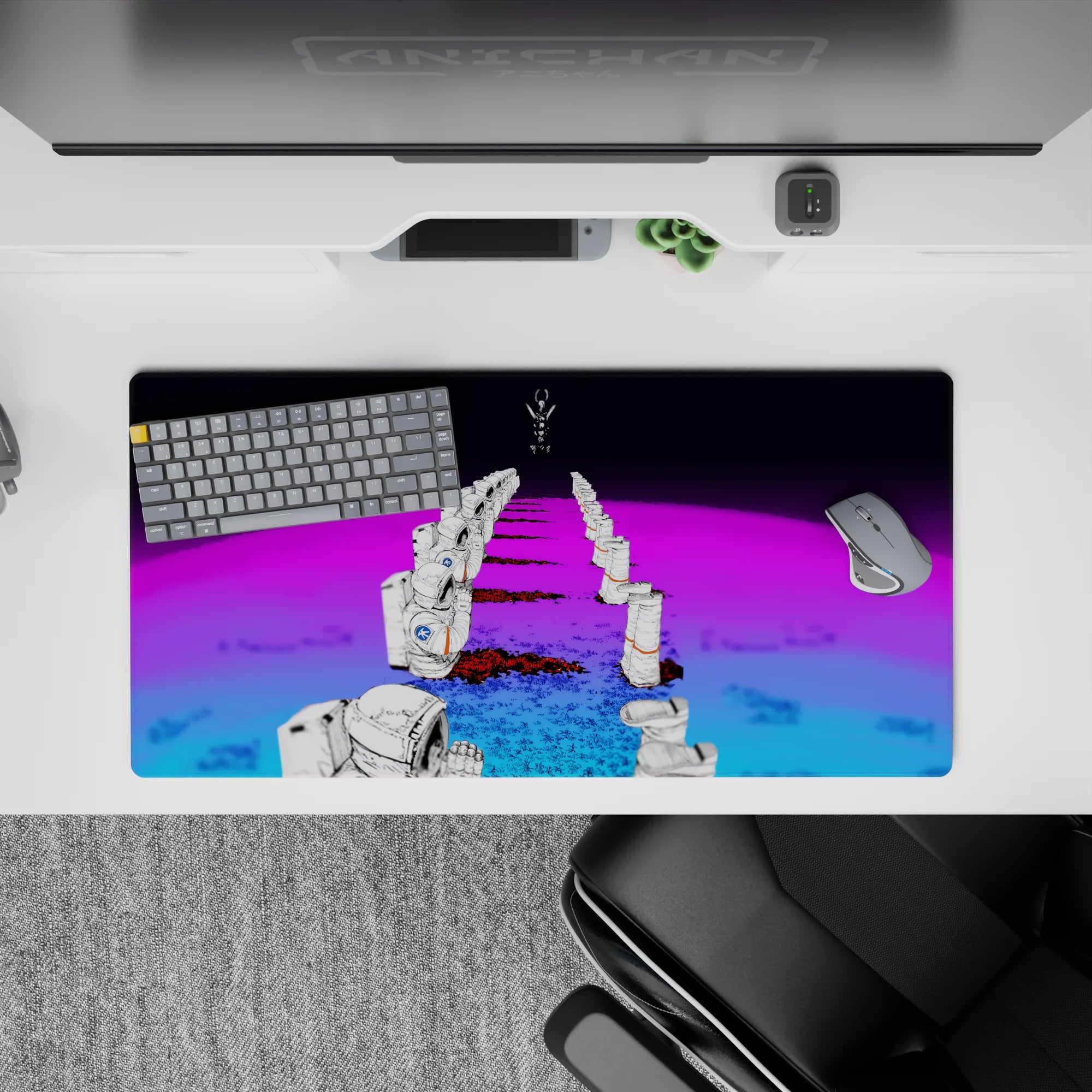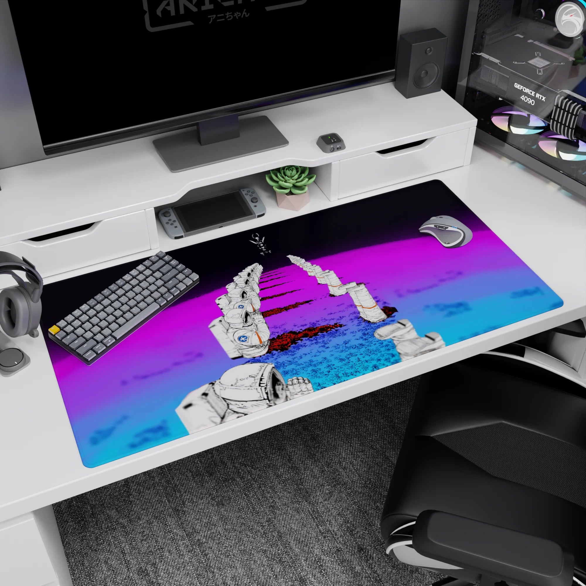 Discover the cosmic allure of our anime mouse pad, where kneeling astronauts and a vibrant gradient from cyan to magenta create a surreal experience. Perfect for gaming or work, it offers a unique blend of peace and imagination, inviting you to explore the unknown.