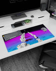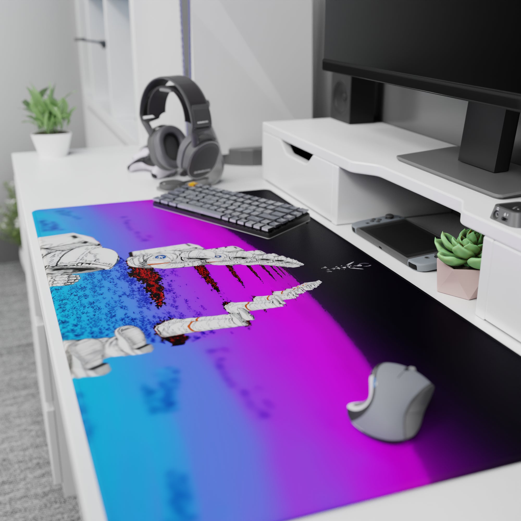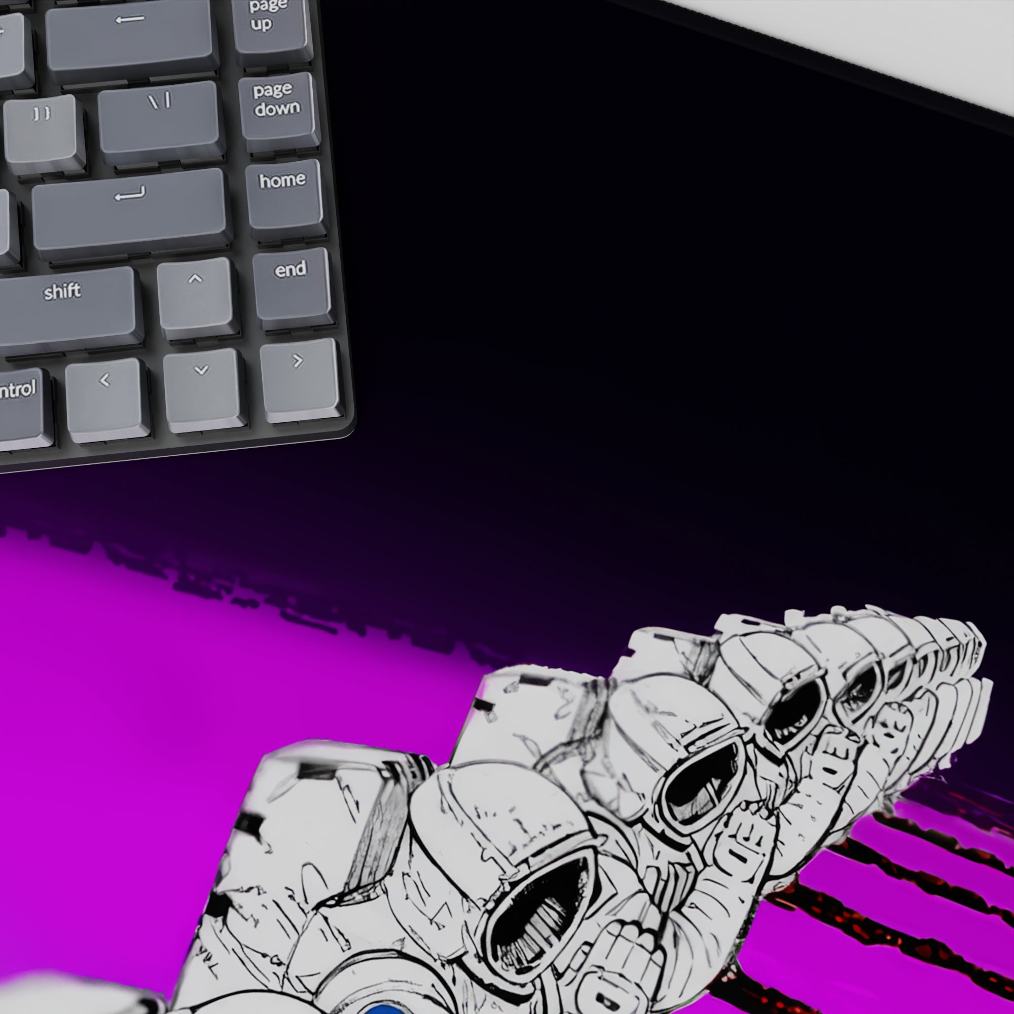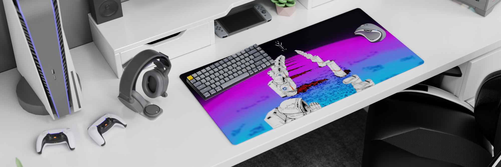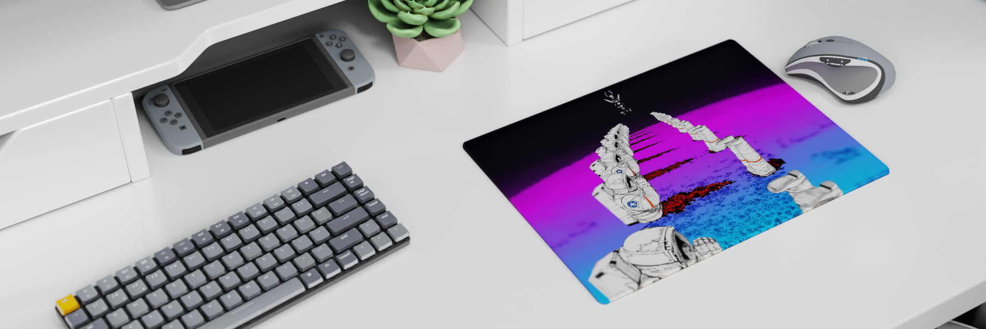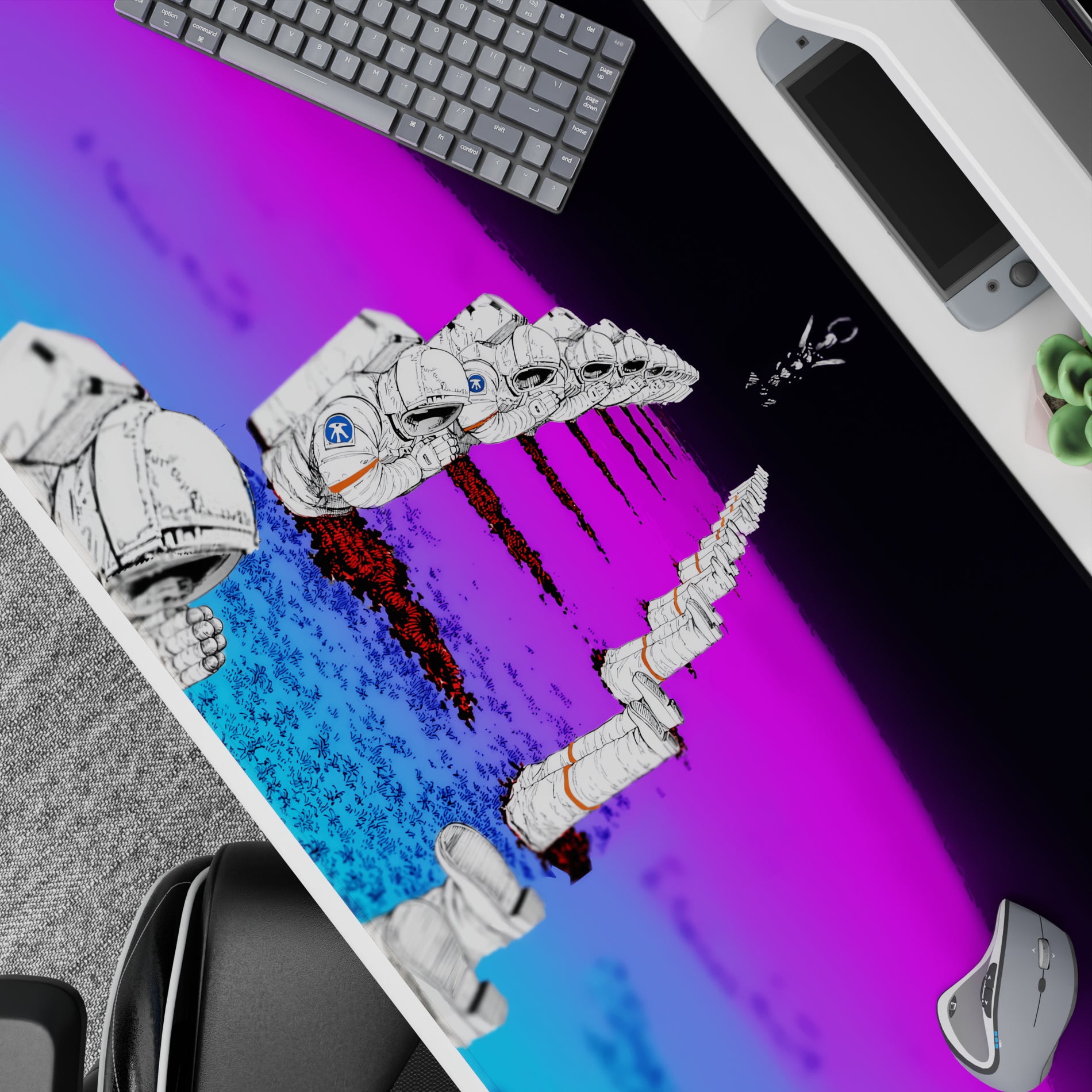 Discover the cosmic allure of our anime mouse pad, where kneeling astronauts and a vibrant gradient from cyan to magenta create a surreal experience. Perfect for gaming or work, it offers a unique blend of peace and imagination, inviting you to explore the unknown.
