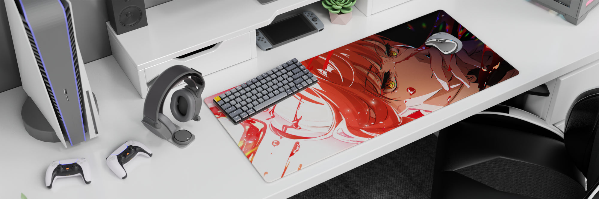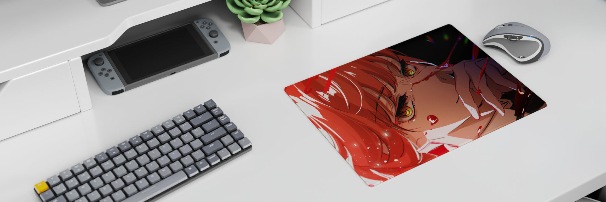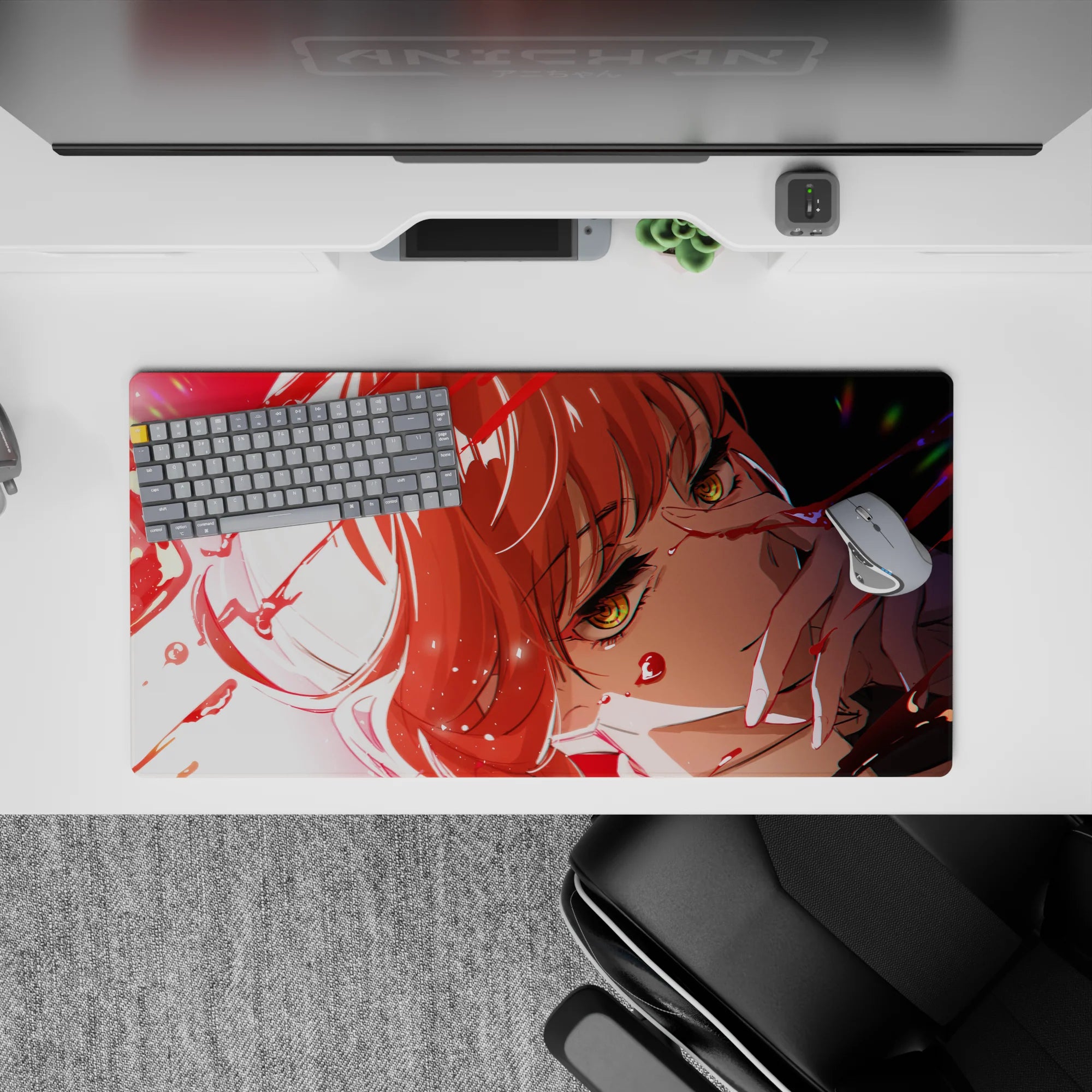 Dive into a world of style and intensity with our anime mouse pad. Featuring a striking red design, it captures the essence of dramatic flair. Amber-gold eyes and crimson hair set against a bold backdrop create a statement piece for your desk. Perfect for those who appreciate the extraordinary.