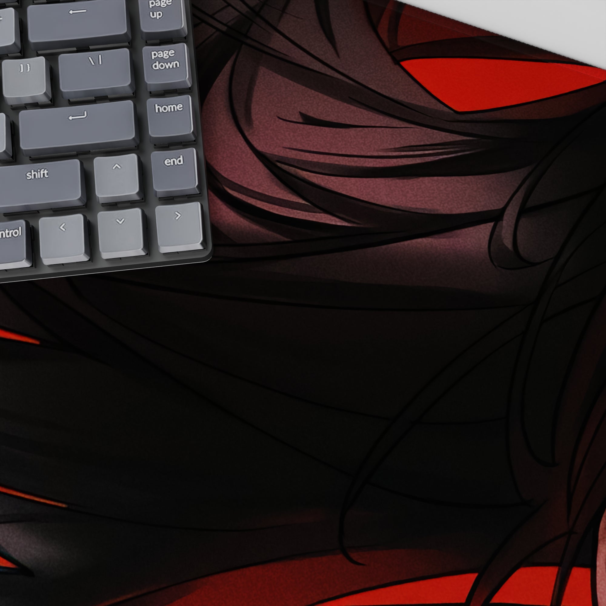 Discover the dark elegance and razor-sharp energy of our anime mouse pad. With crimson eyes that pierce through a storm of black strands, this design is more than a look—it's a statement. Shadows and feathery details create a surreal touch, making it essential for any anime collection.
