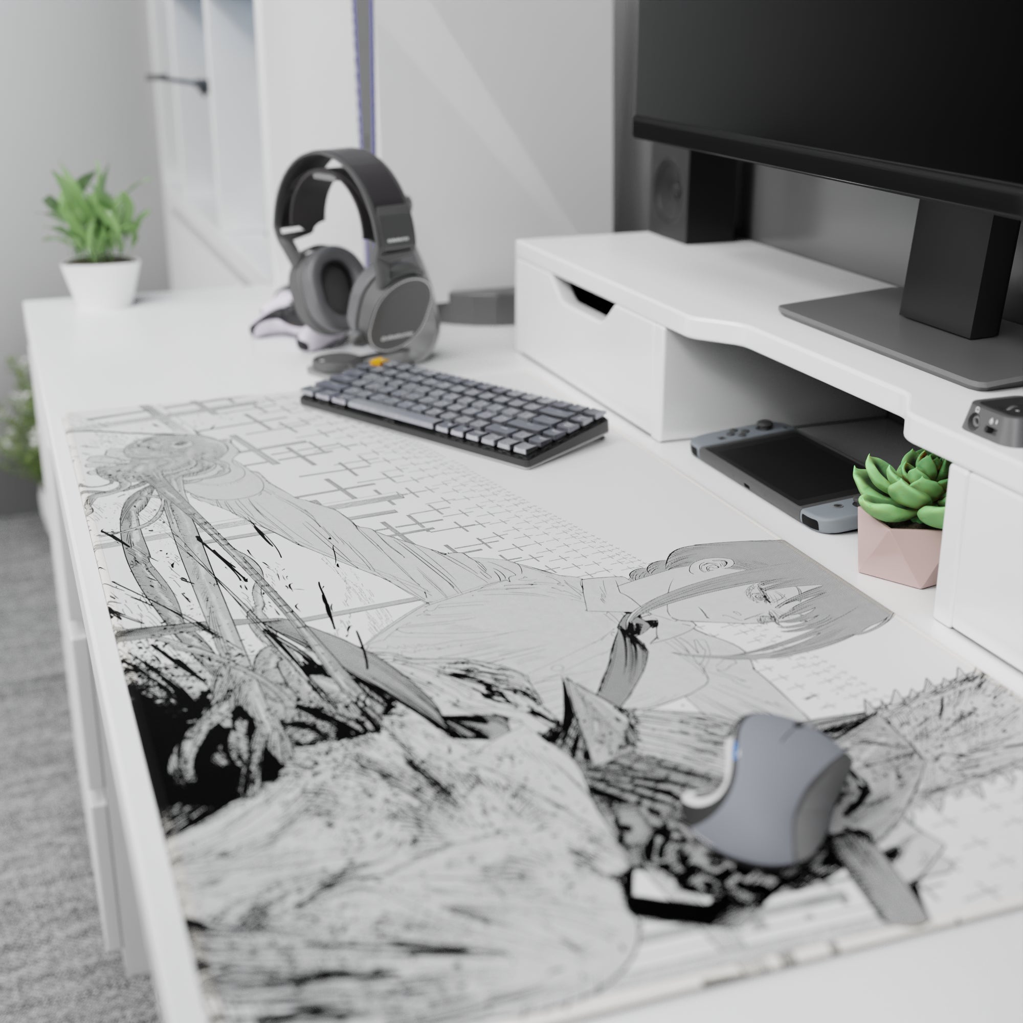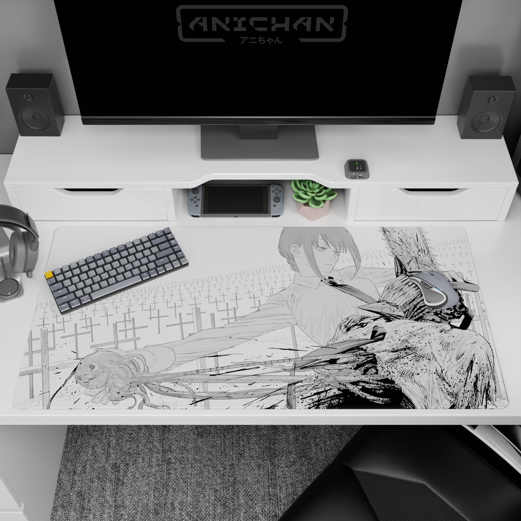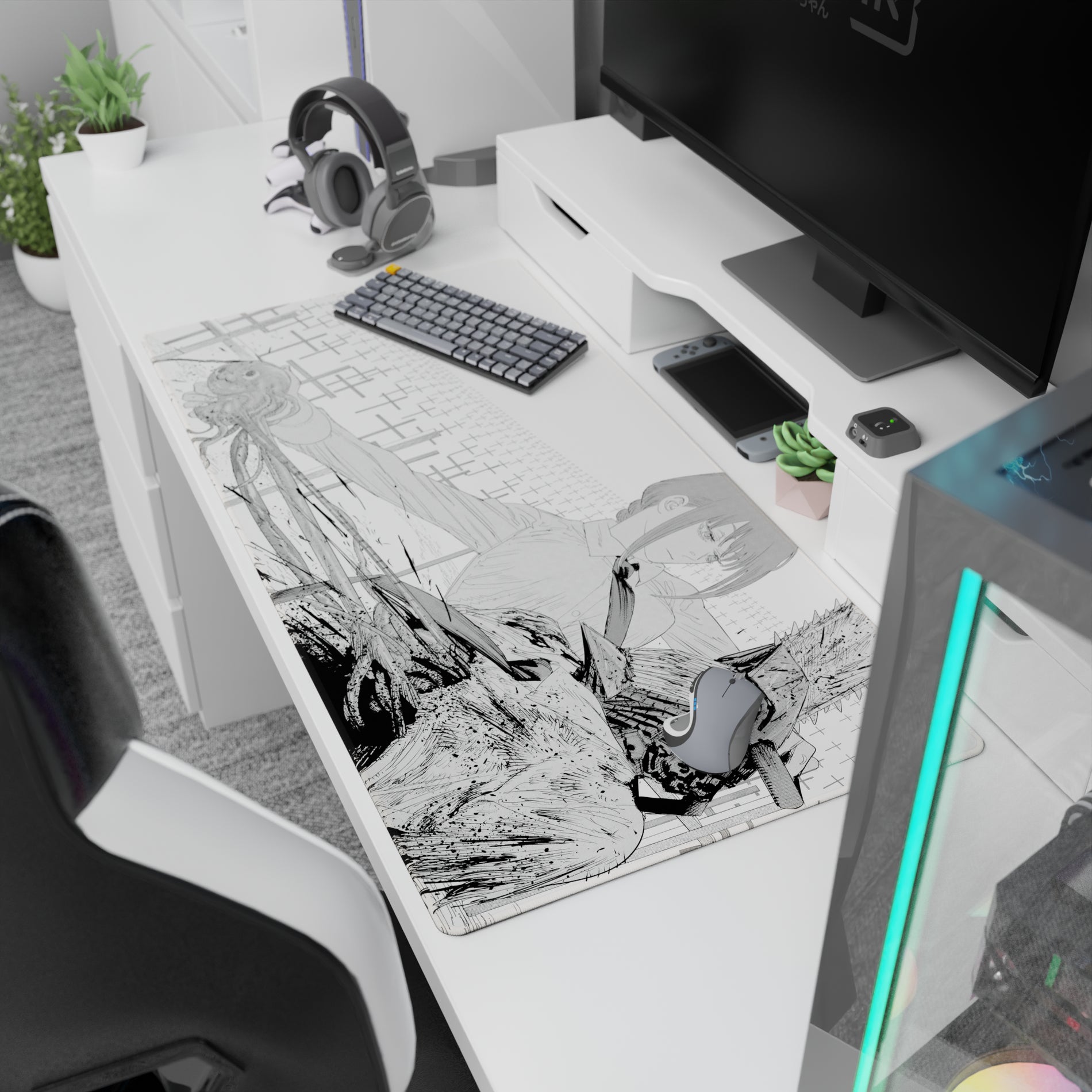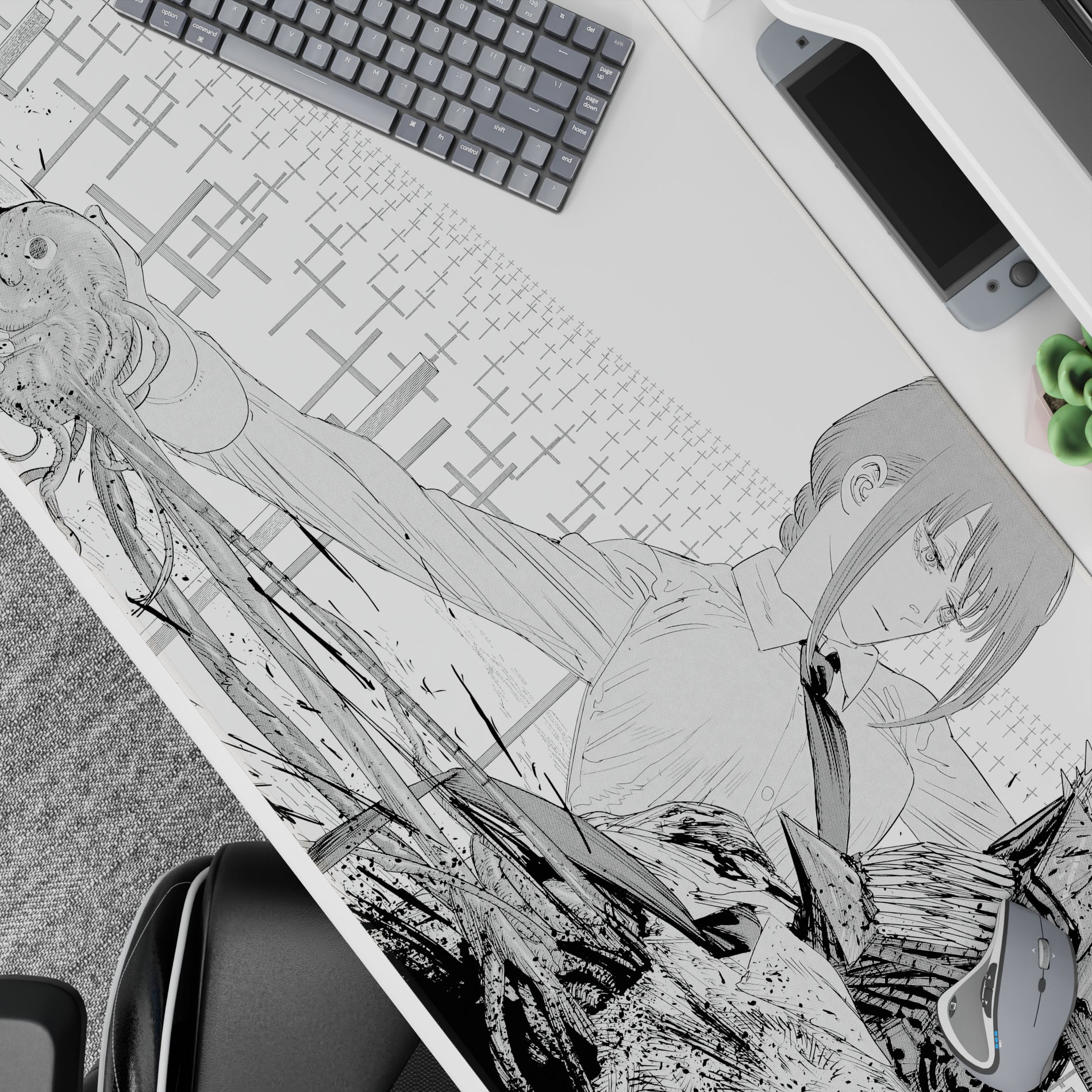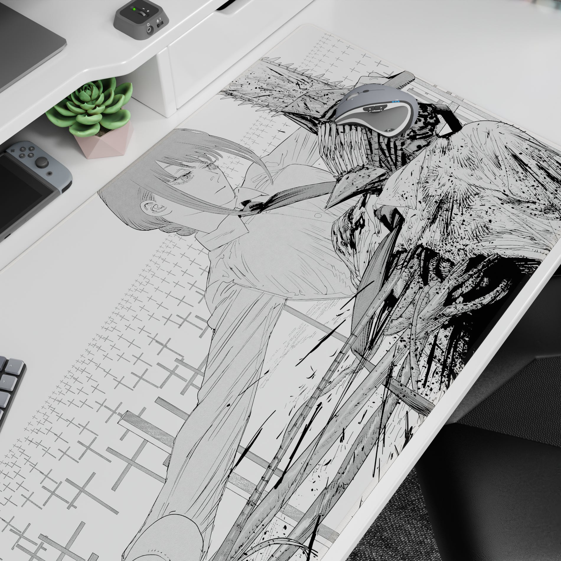 Chainsaw Man - Anime Mouse Pad and Desk Pad - Grayscale Collision