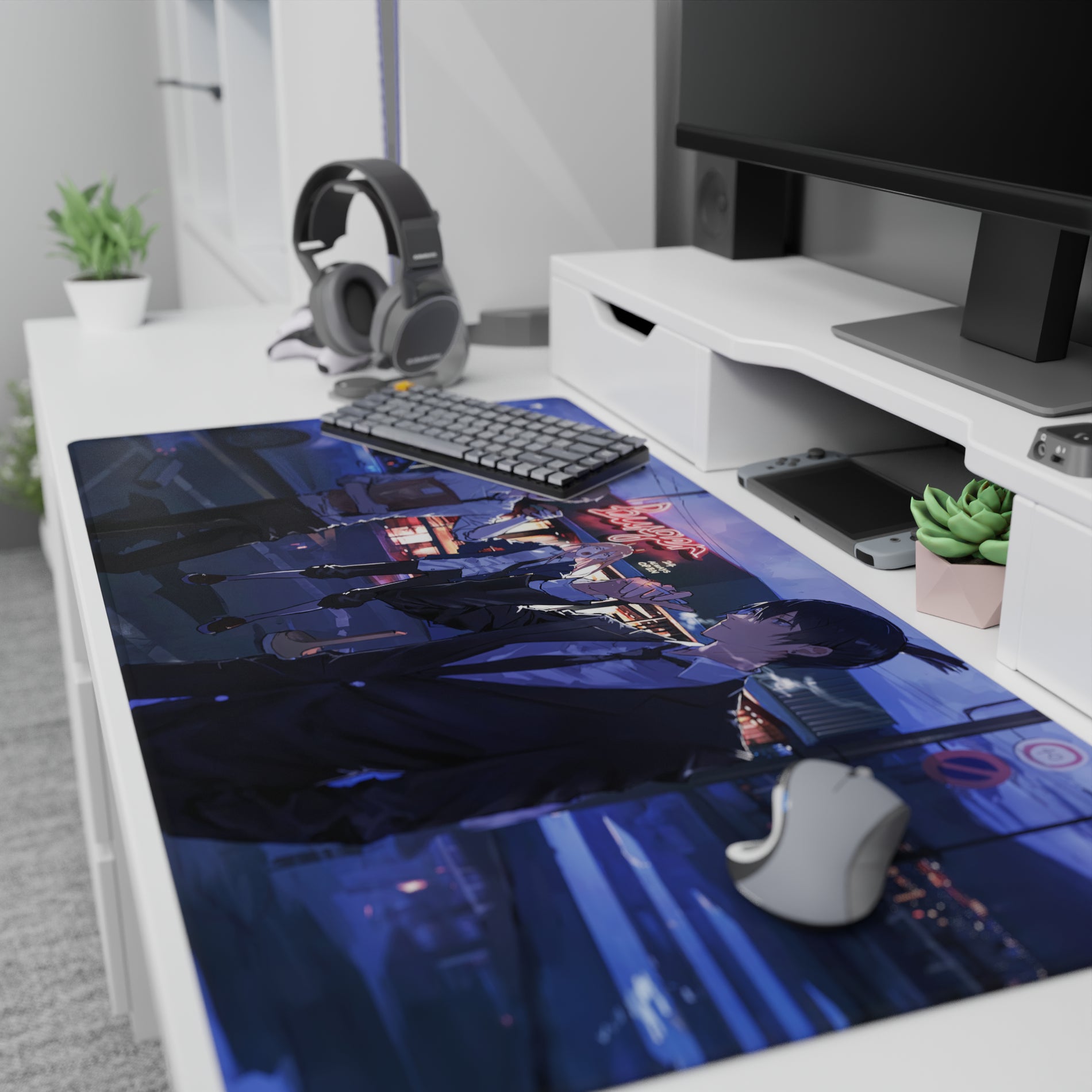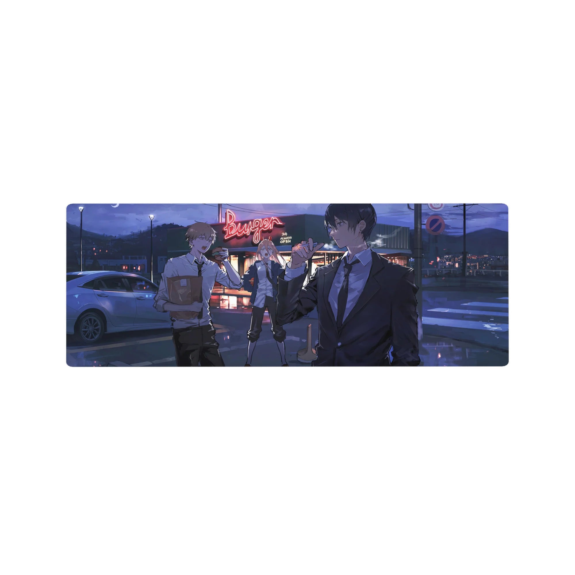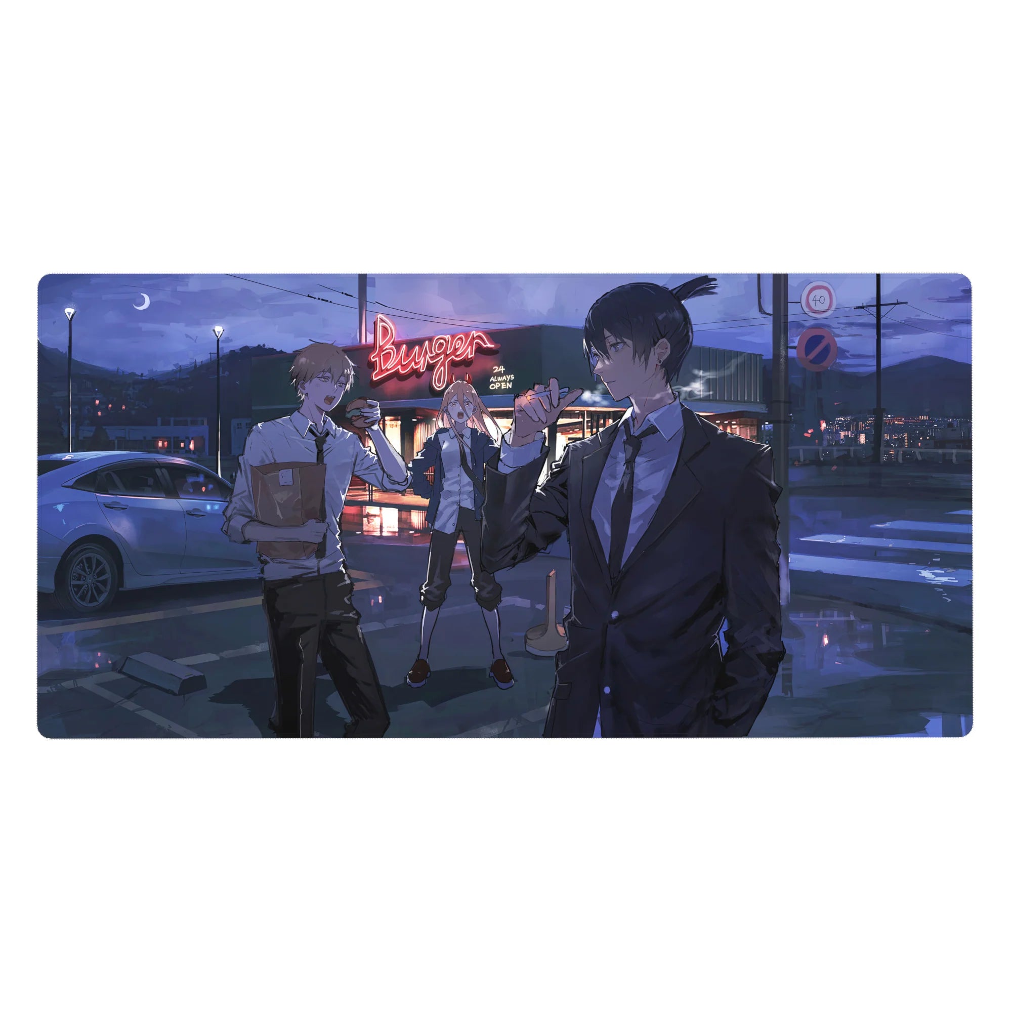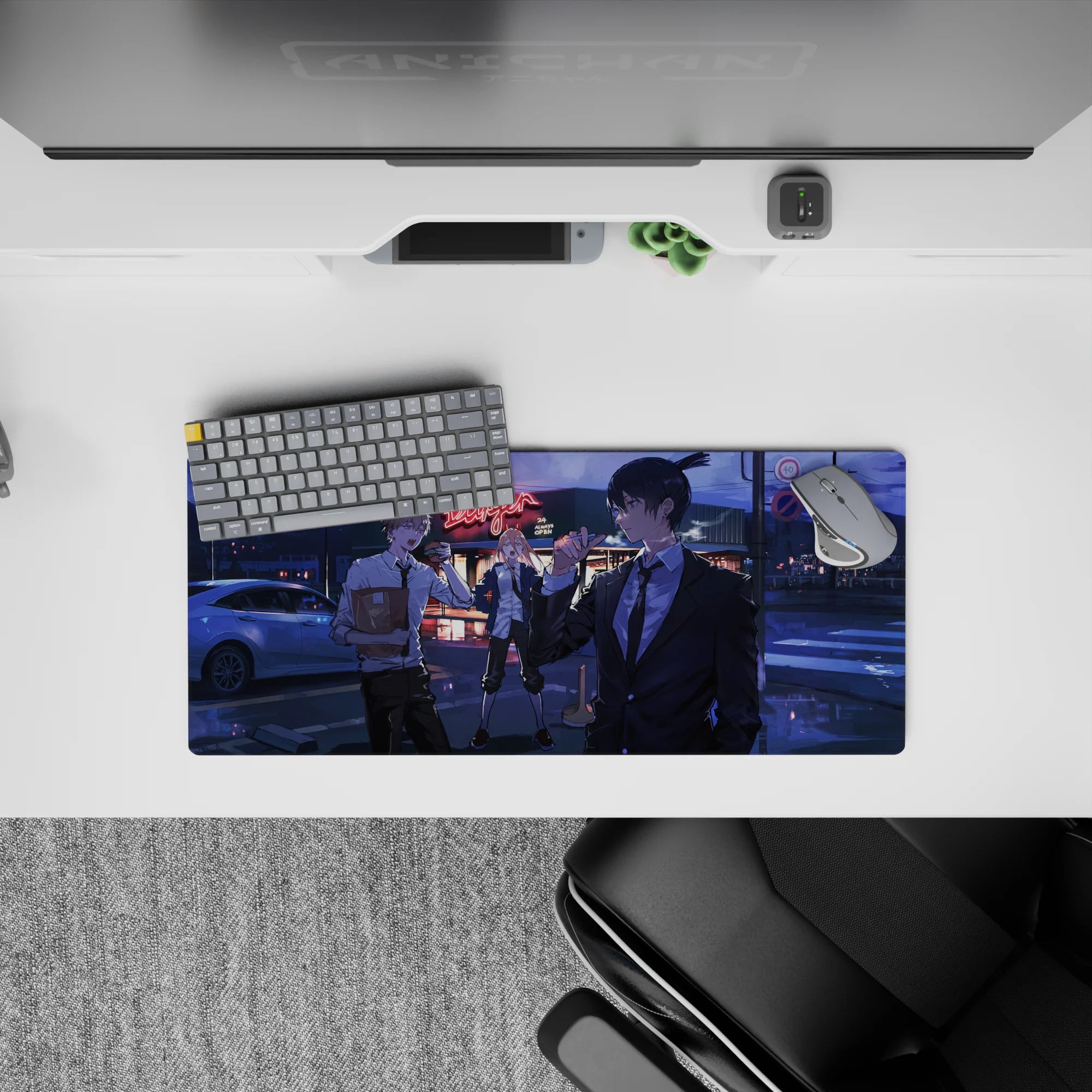 Experience the thrill of urban nights with our dynamic anime mouse pad featuring Denji, Power, and Aki from Chainsaw Man. Wrapped in cool hues and city lights, this mouse pad captures the essence of moody, modern aesthetics, perfect for any setup. Ideal for fans and night owls alike.
