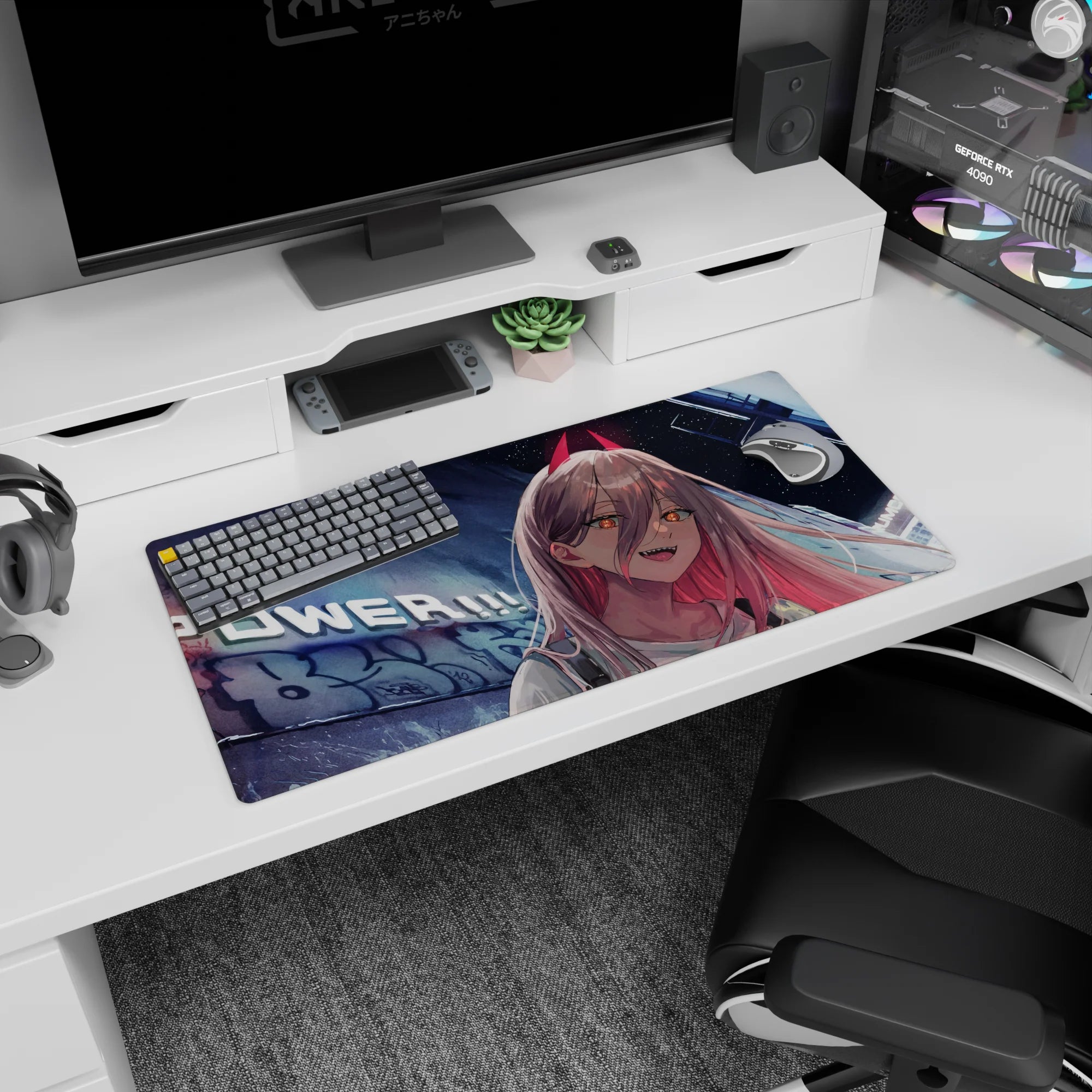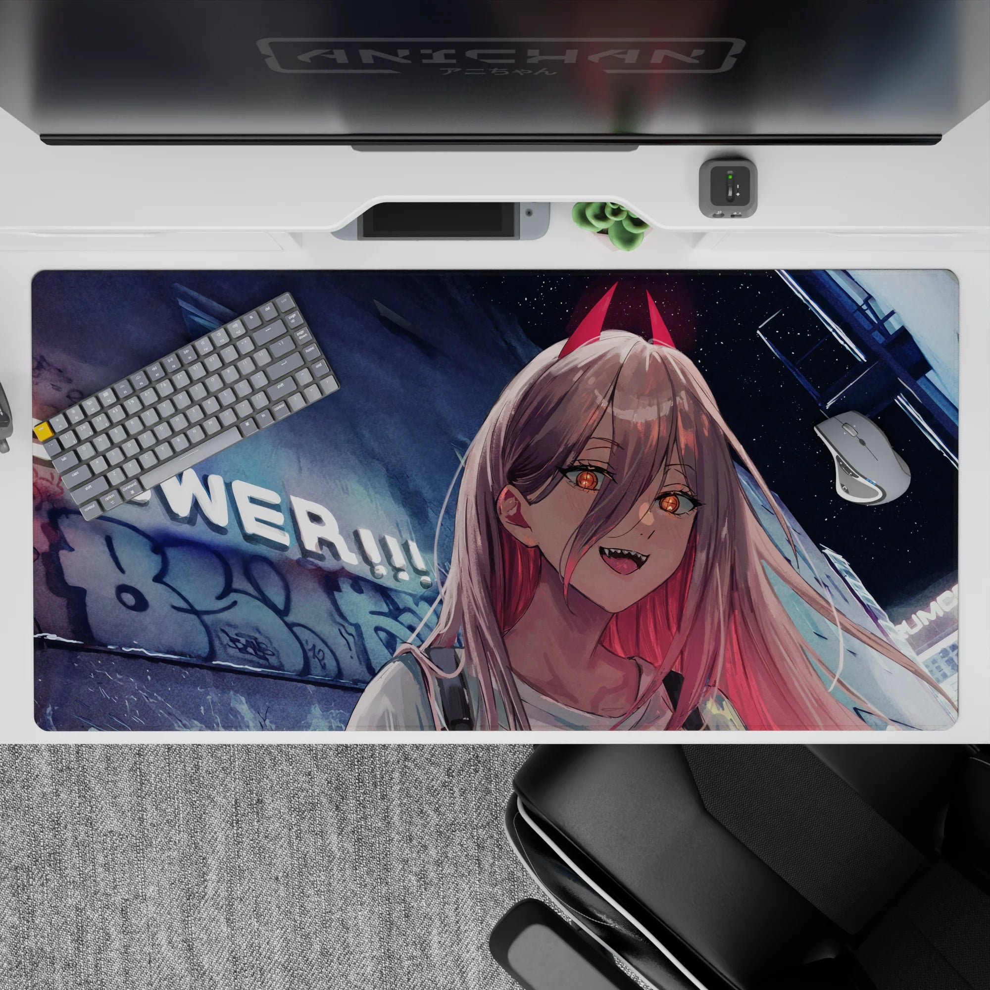 Immerse yourself in the neon-lit chaos of Power with this Chainsaw Man anime mouse pad, featuring glowing city lights, sharp fangs, and a rebellious urban vibe. Perfect for fans who love fiery, unstoppable anime characters with attitude.