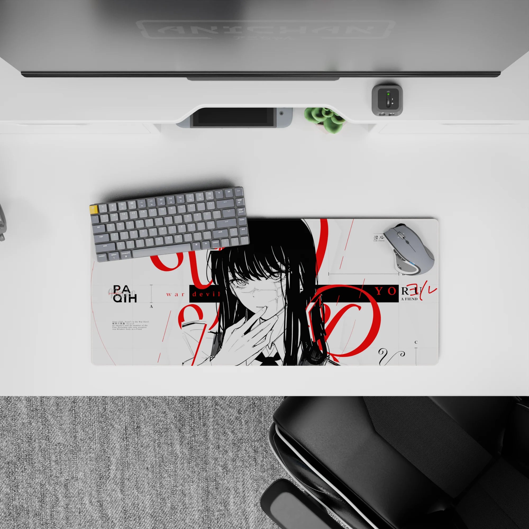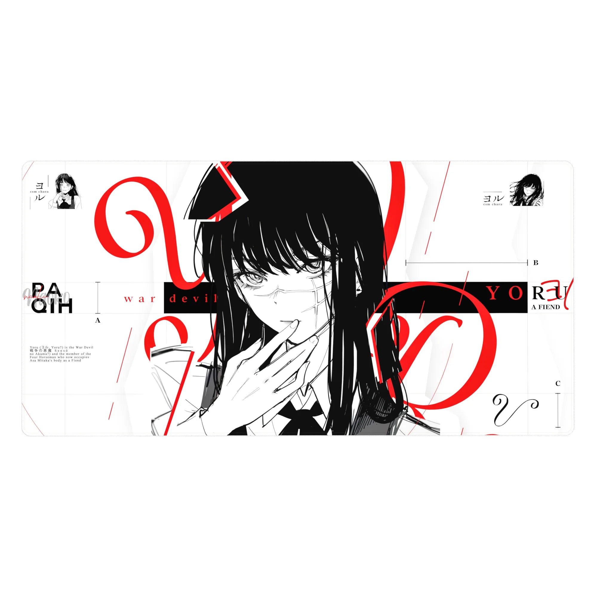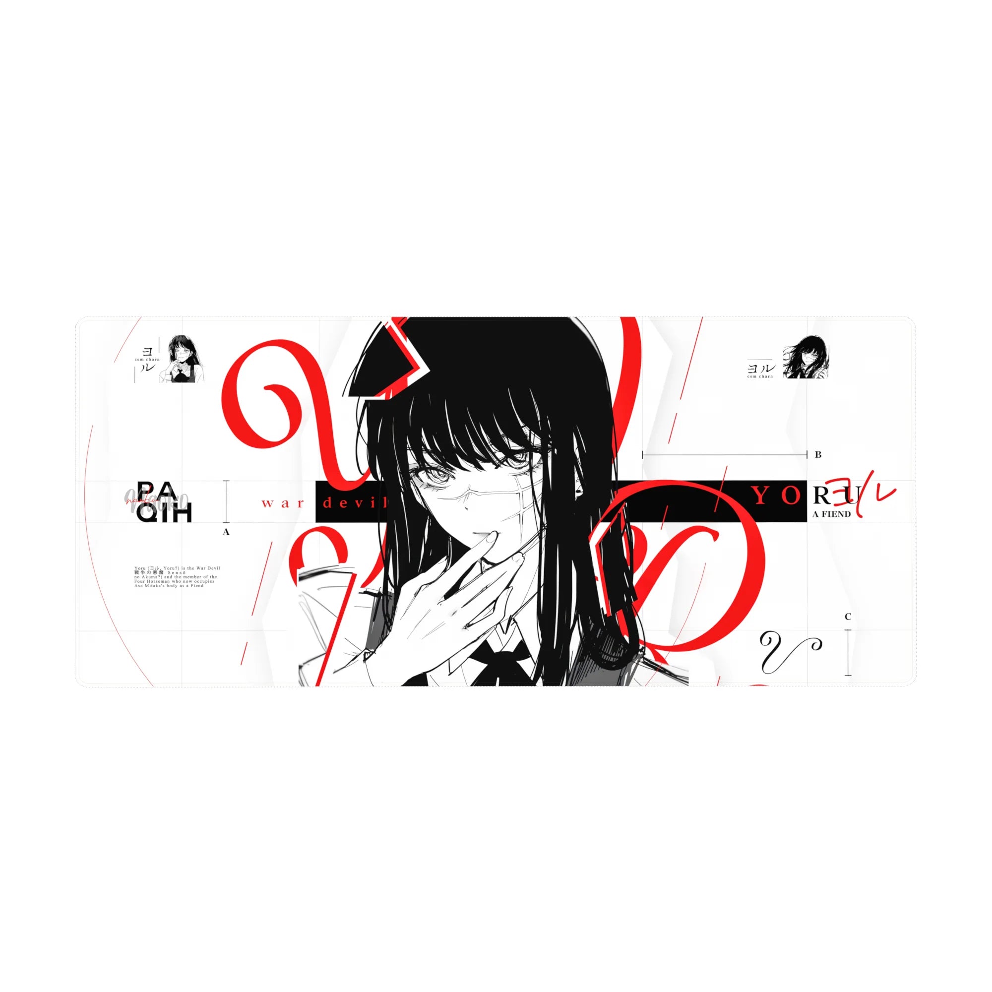 Immerse yourself in the chilling presence of Yoru, the War Devil with this Chainsaw Man anime mouse pad. Featuring monochrome strokes, blood-red typography, and a striking design, this desk pad embodies calculated chaos and fiendish intellect. A perfect addition for those who love sharp, modern anime aesthetics.