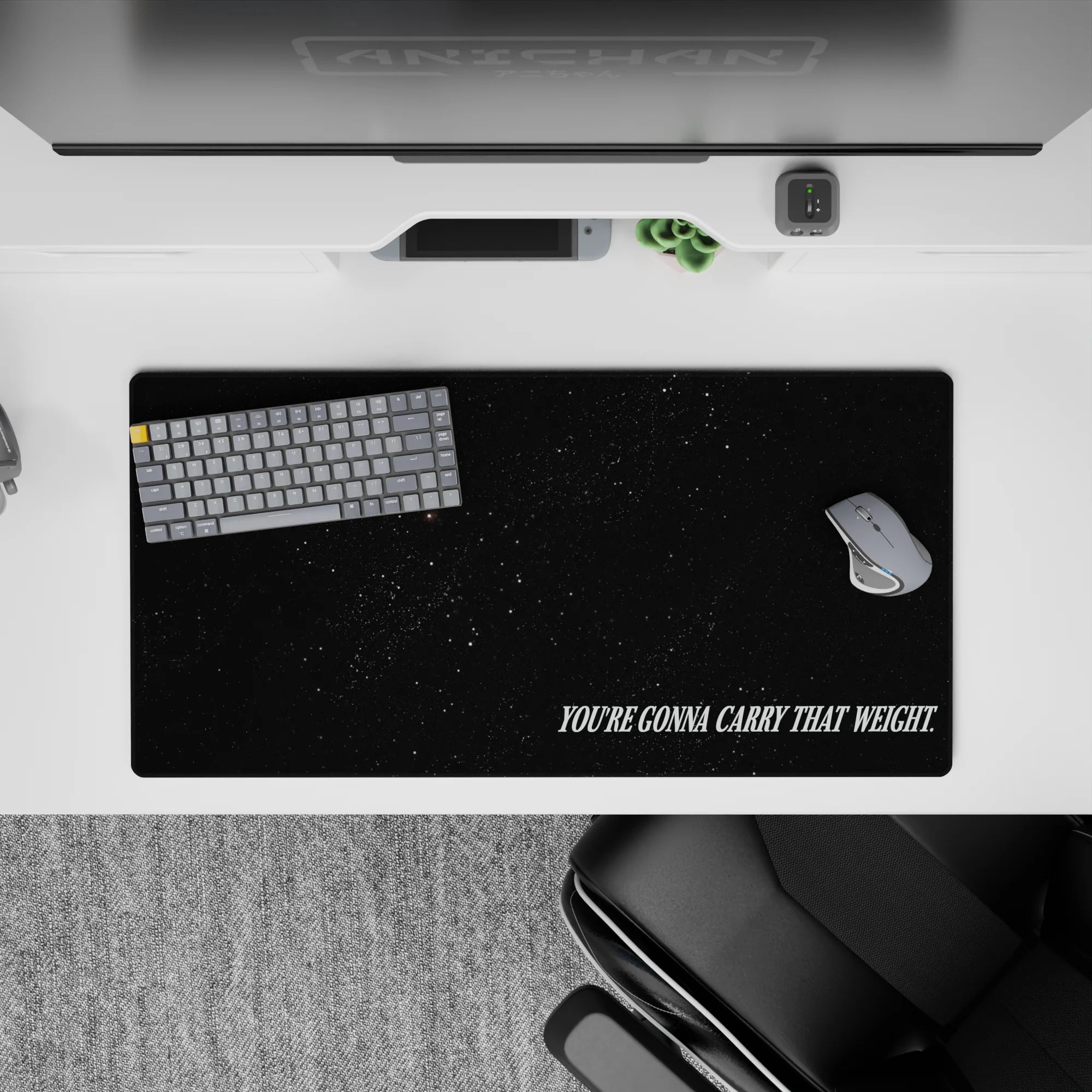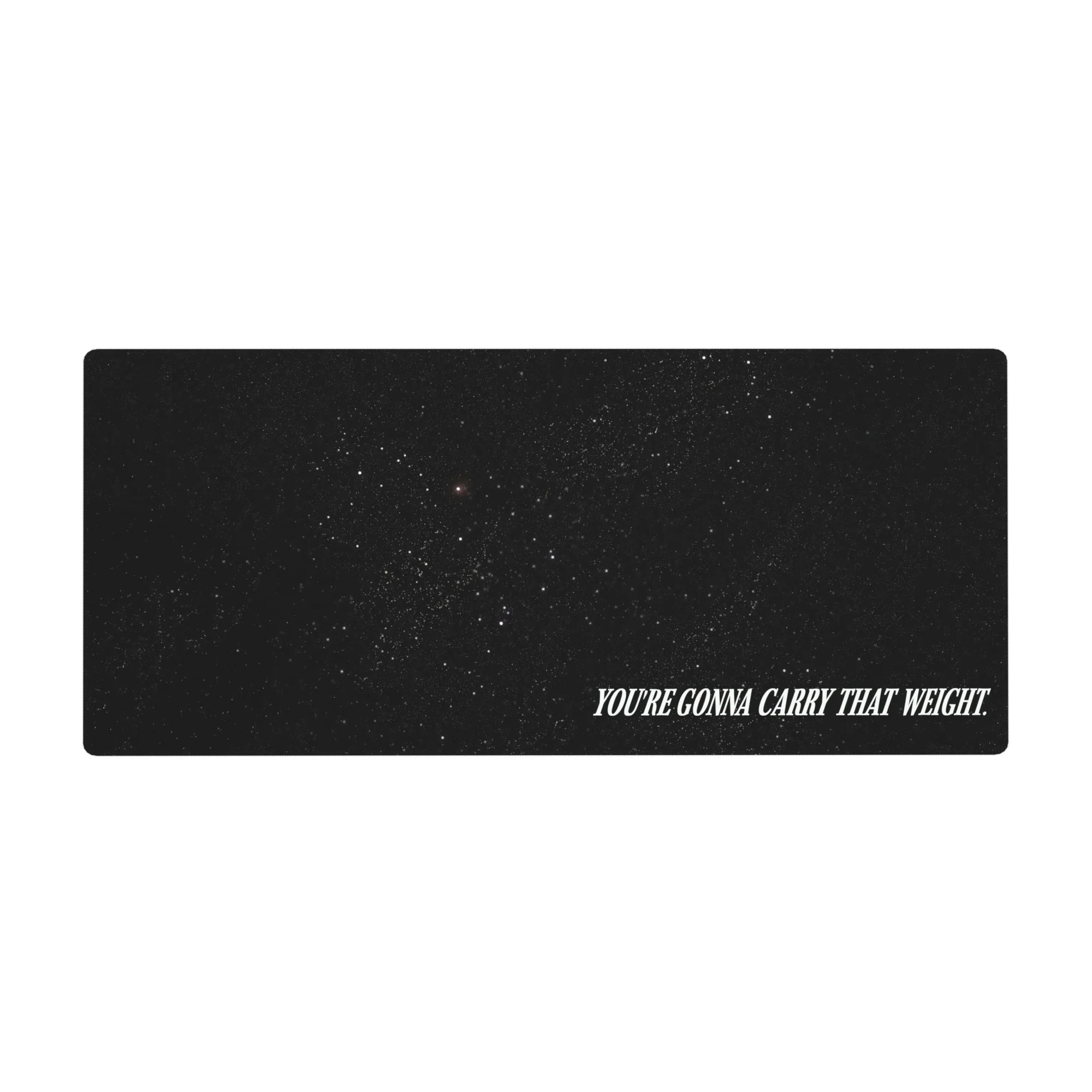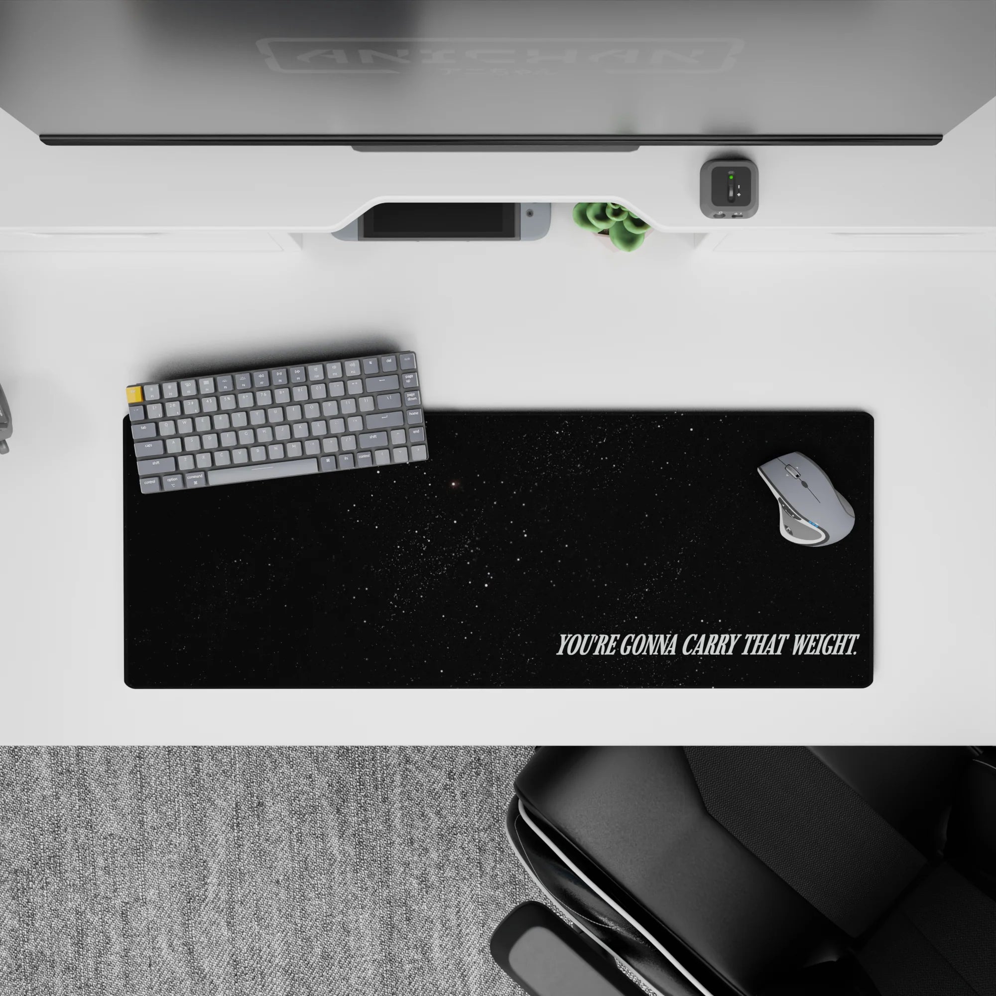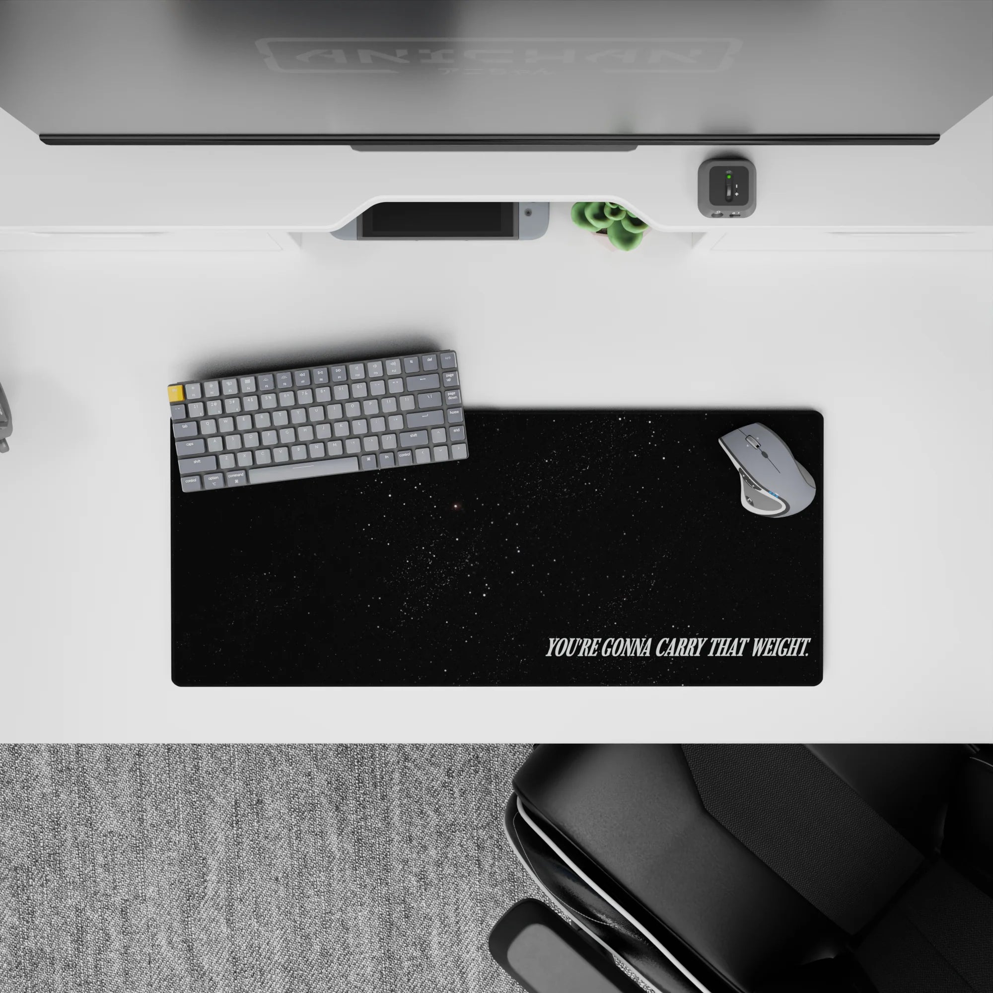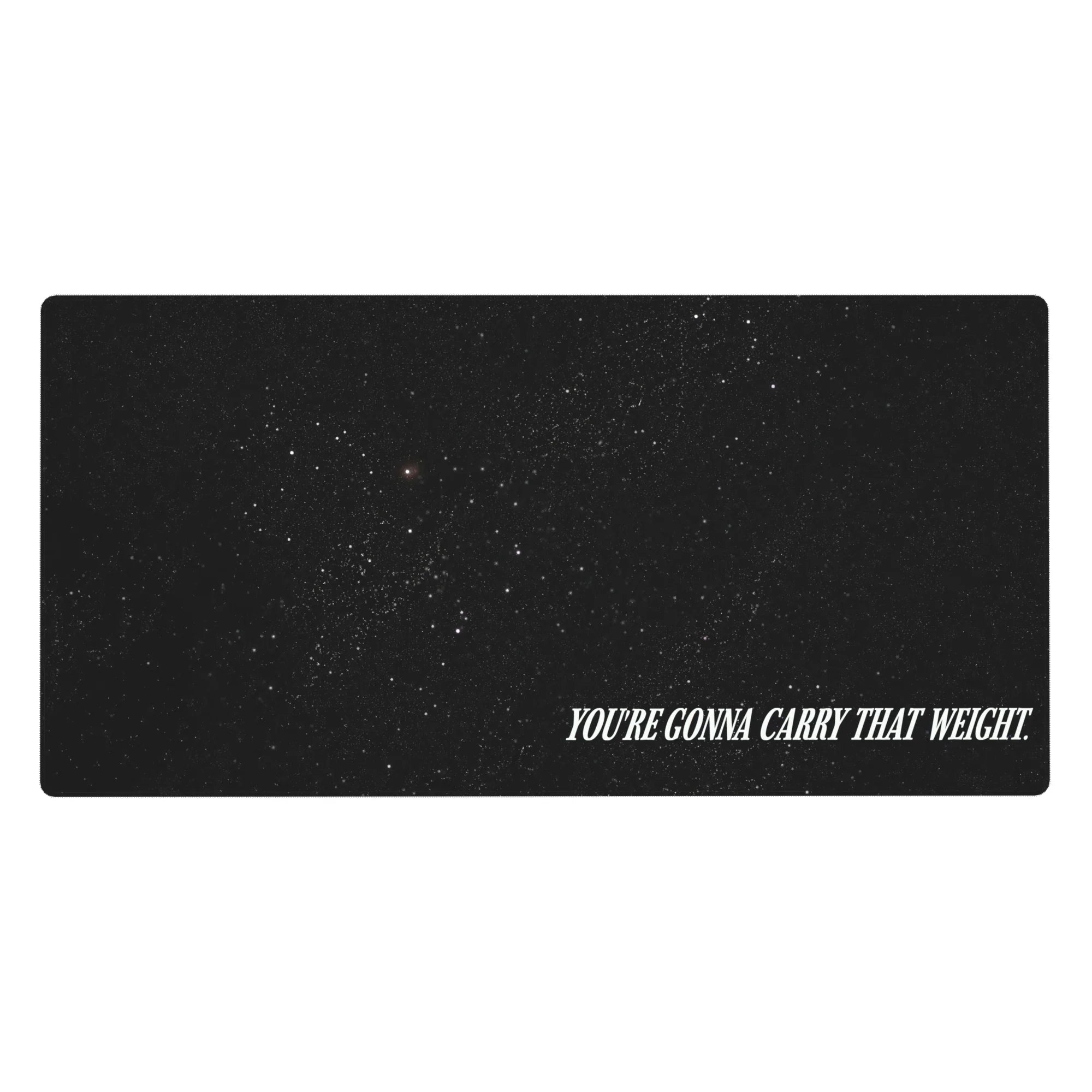 This Cowboy Bebop anime mouse pad embraces minimalism with a starry void and the iconic farewell, "You're gonna carry that weight." A design that captures the lingering emotion of an unforgettable journey.