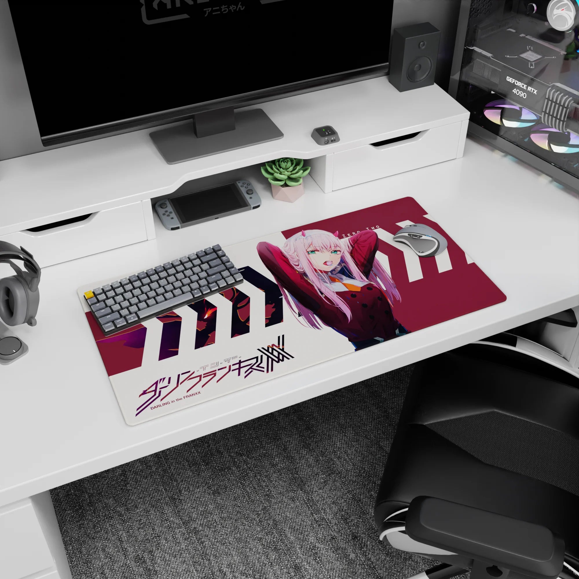 Bring the fierce, confident energy of Zero Two from Darling in the Franxx to your workspace with this stunning desk mat. Featuring her striking pose and captivating colors, it's a must-have for any anime fan seeking to add some dynamic flair to their setup.