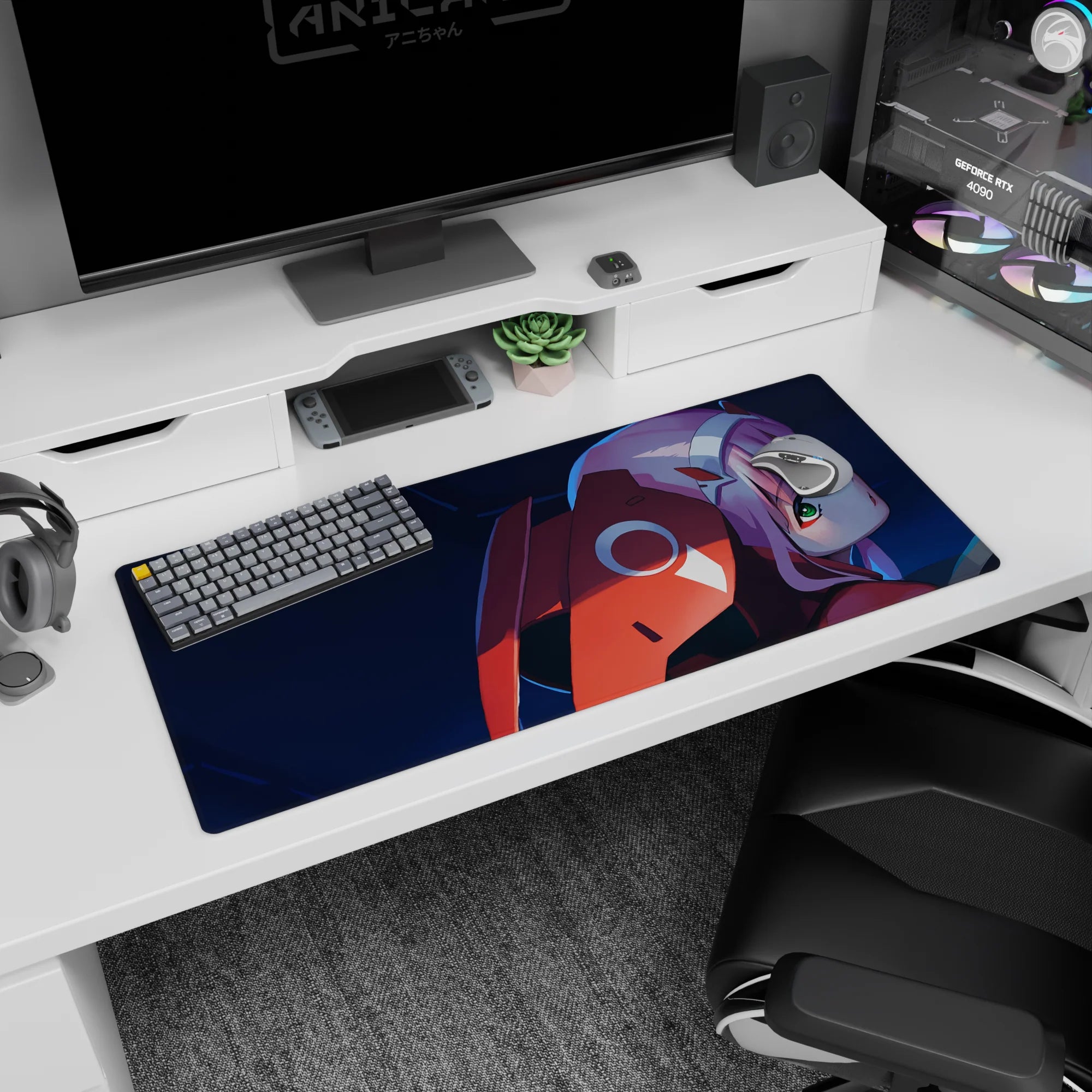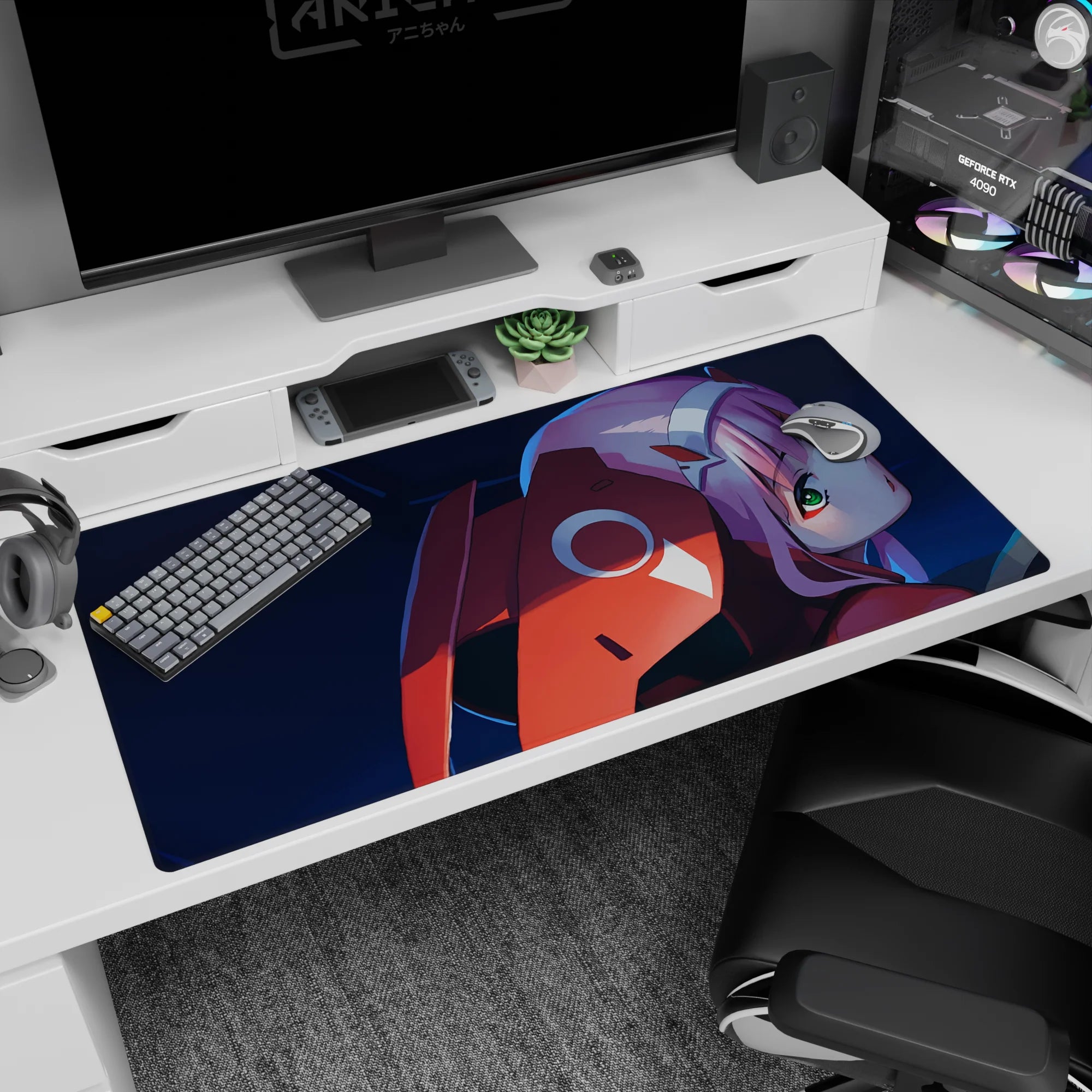 Bring the intensity of Zero Two’s world to your setup with this anime mouse pad, featuring deep blues, fiery reds, and piercing green eyes.