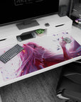 Immerse yourself in a world of vibrant delicacy with this anime mouse pad featuring Zero Two from Darling in the Franxx. Soft pinks and surreal confetti create an enchanting scene, while Zero Two’s captivating gaze adds a magnetic touch. Enhance your desk with this unique and stylish piece.