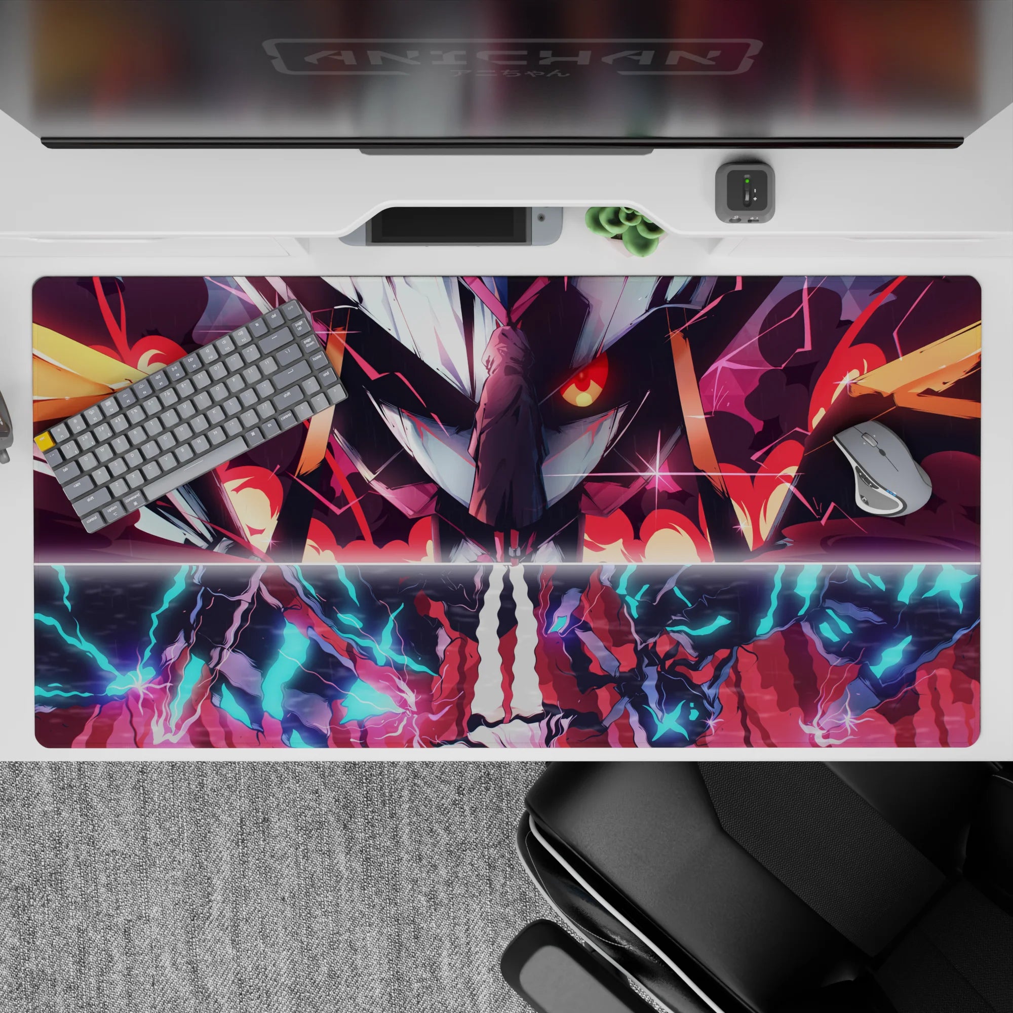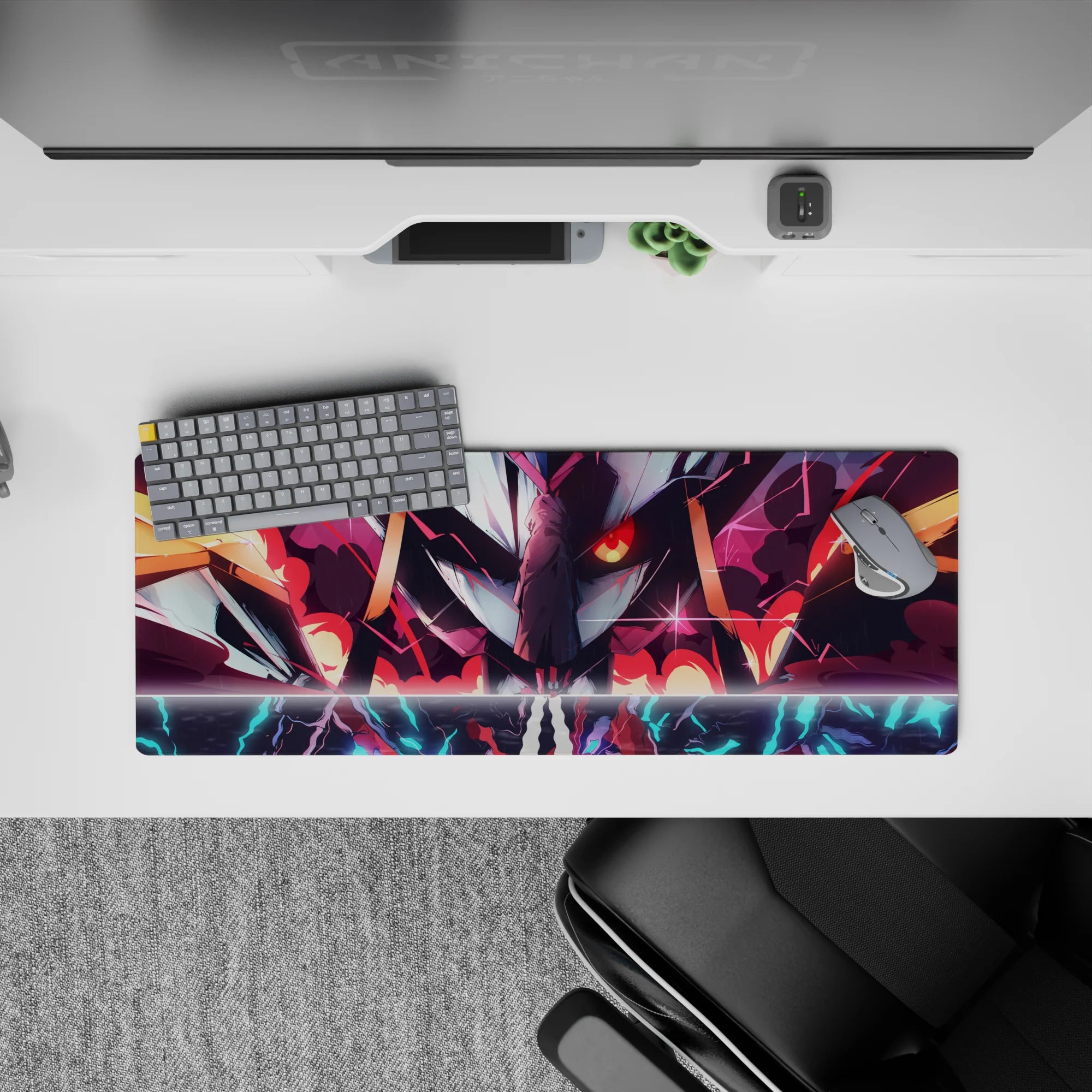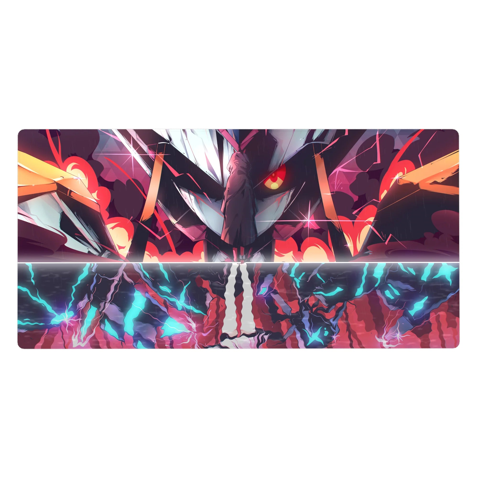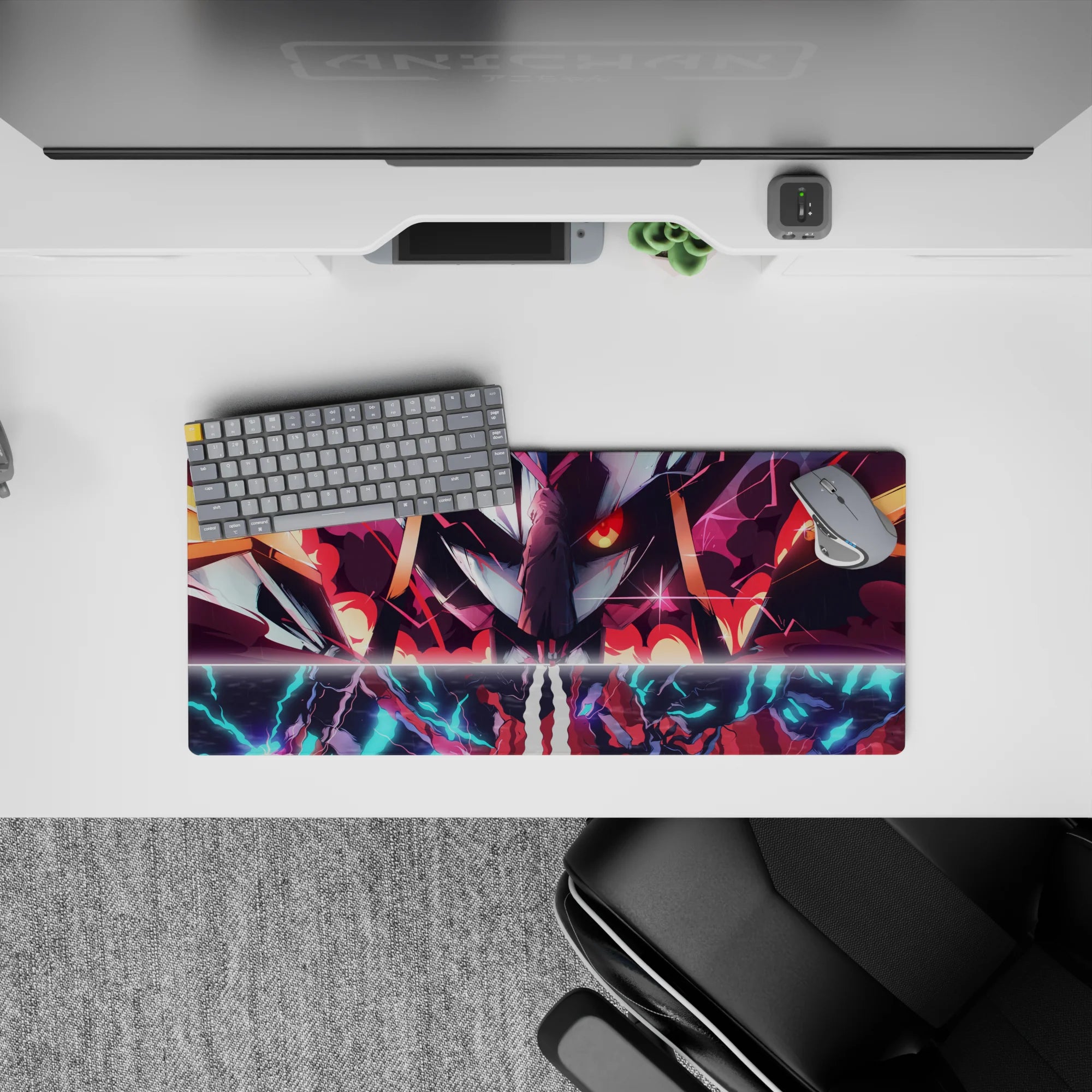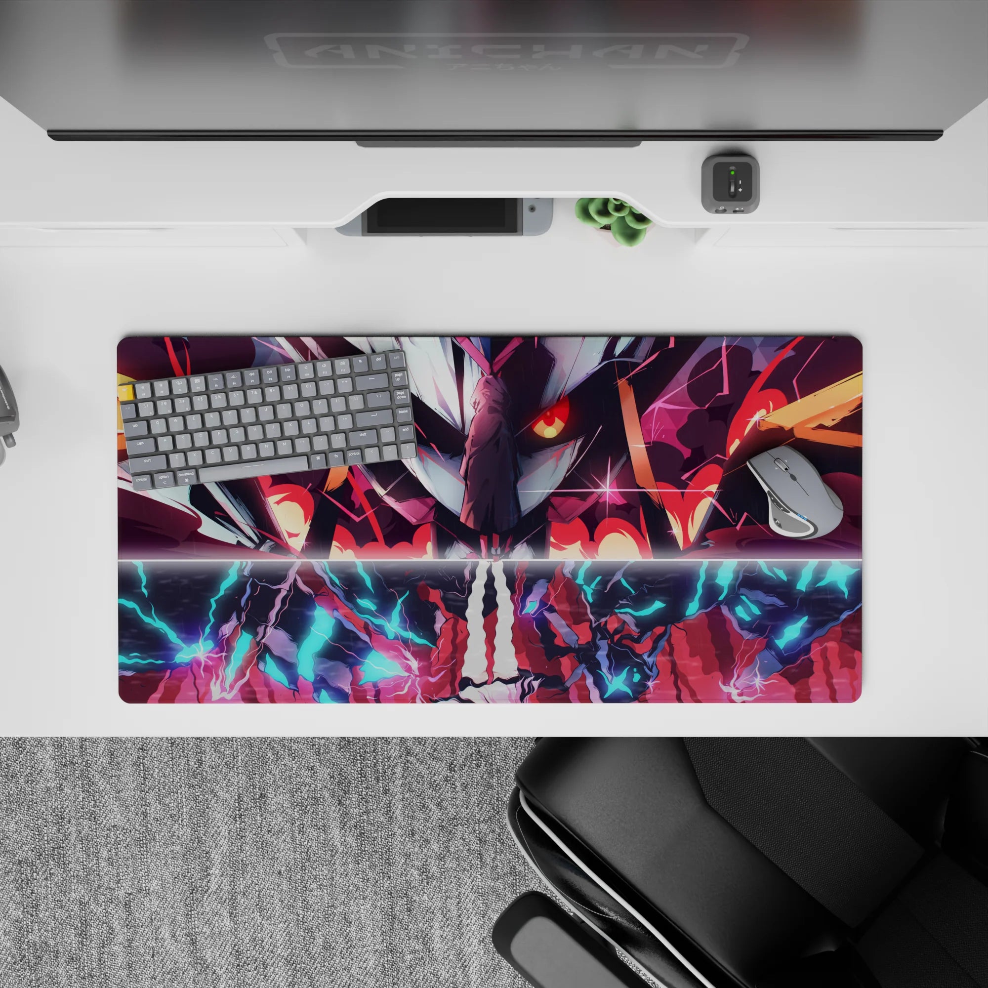 This anime mouse pad showcases an electrifying battle scene from Darling in the Franxx, featuring a colossal mecha, glowing red eyes, and crackling blue and red lightning. A must-have for fans of epic anime battles.