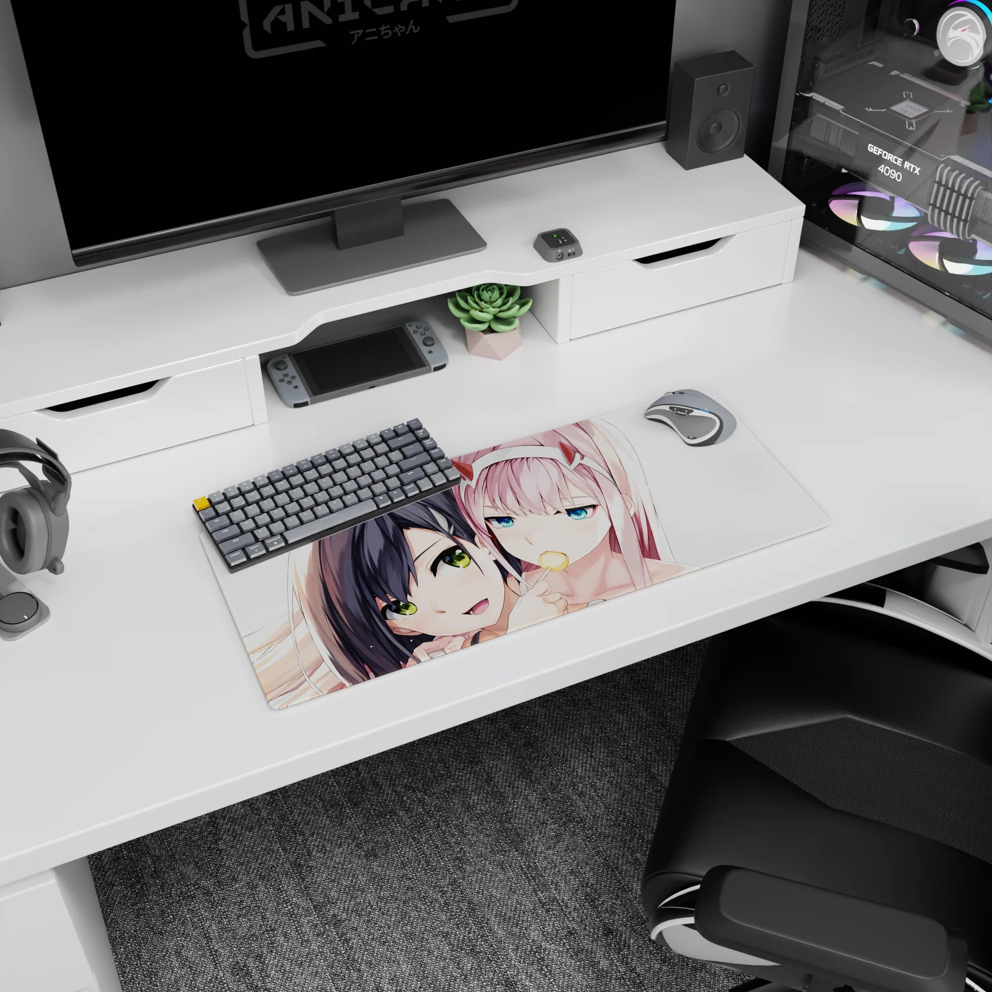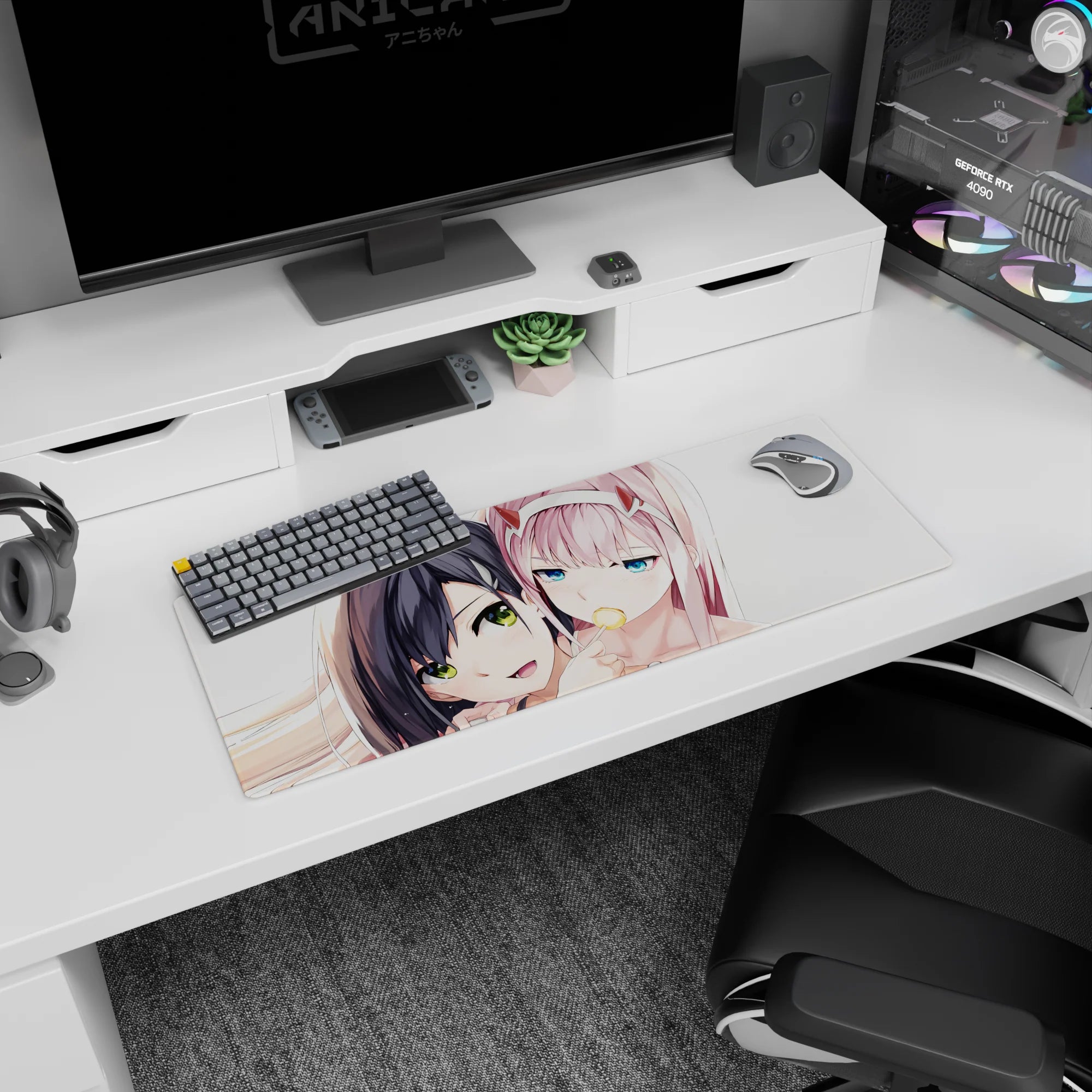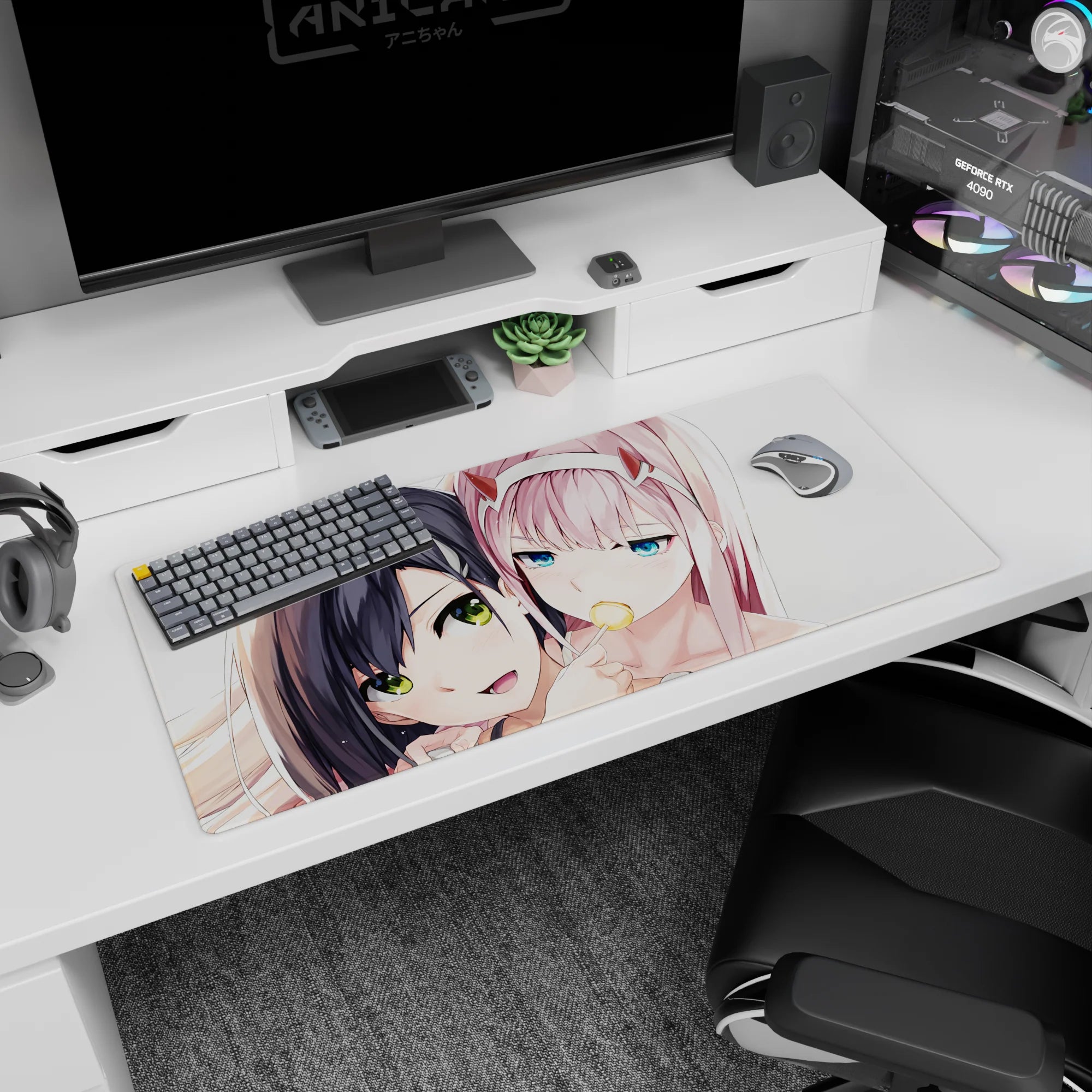 A sweet yet sassy anime moment—Zero Two’s sharp glare meets a playful tease in this expressive, high-detail mouse pad. Perfect for fans who love personality-packed anime art.