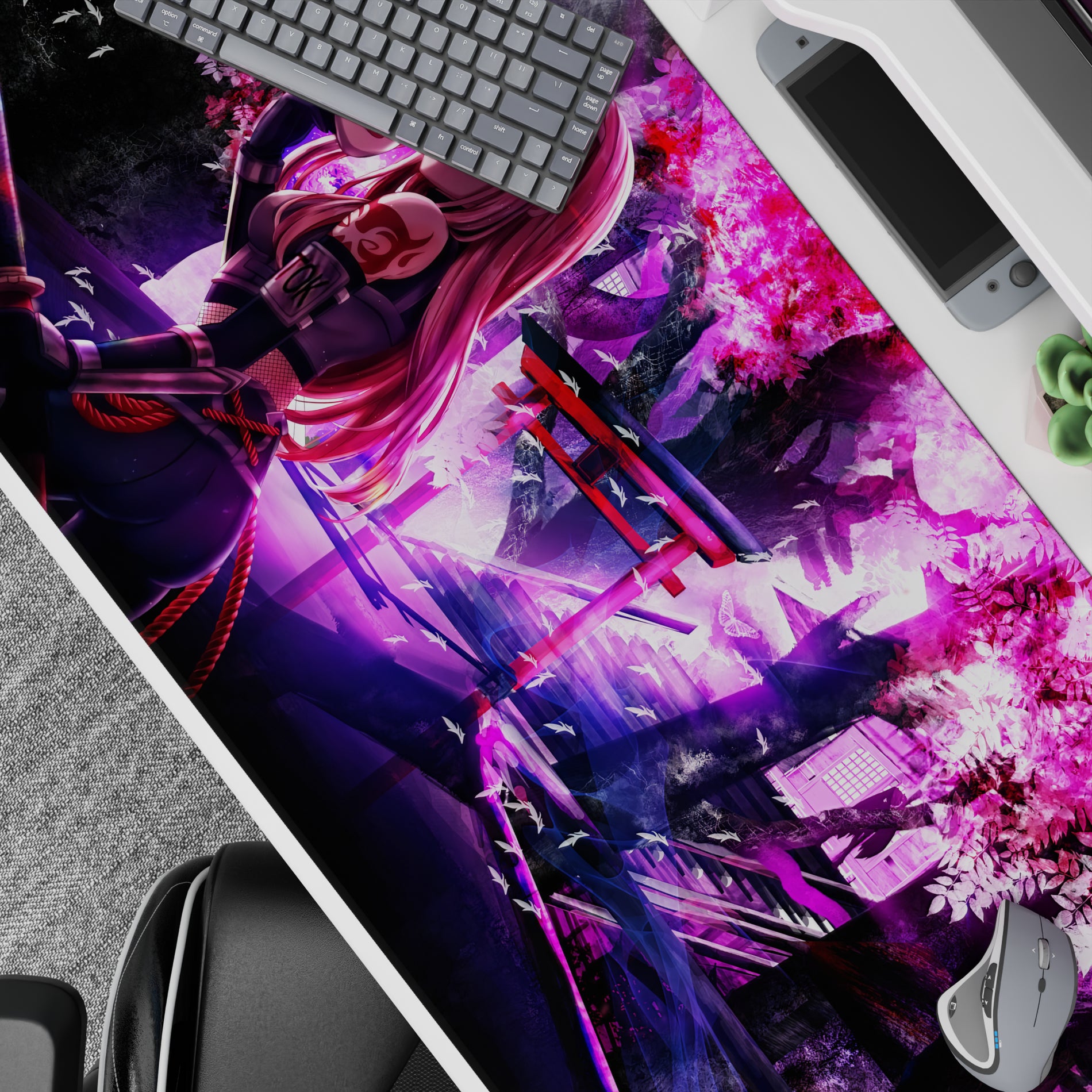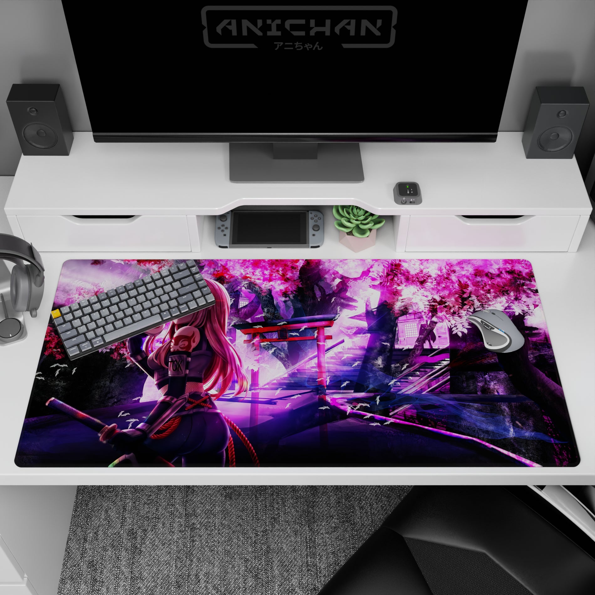 Experience a rebellious blend of cherry blossoms and ninja chic with this anime mouse pad. It's more than just a desk accessory; it's a bold statement of elegance and intrigue. Infused with deep violets and shimmering petals, this mouse pad is the perfect match for your daring spirit.