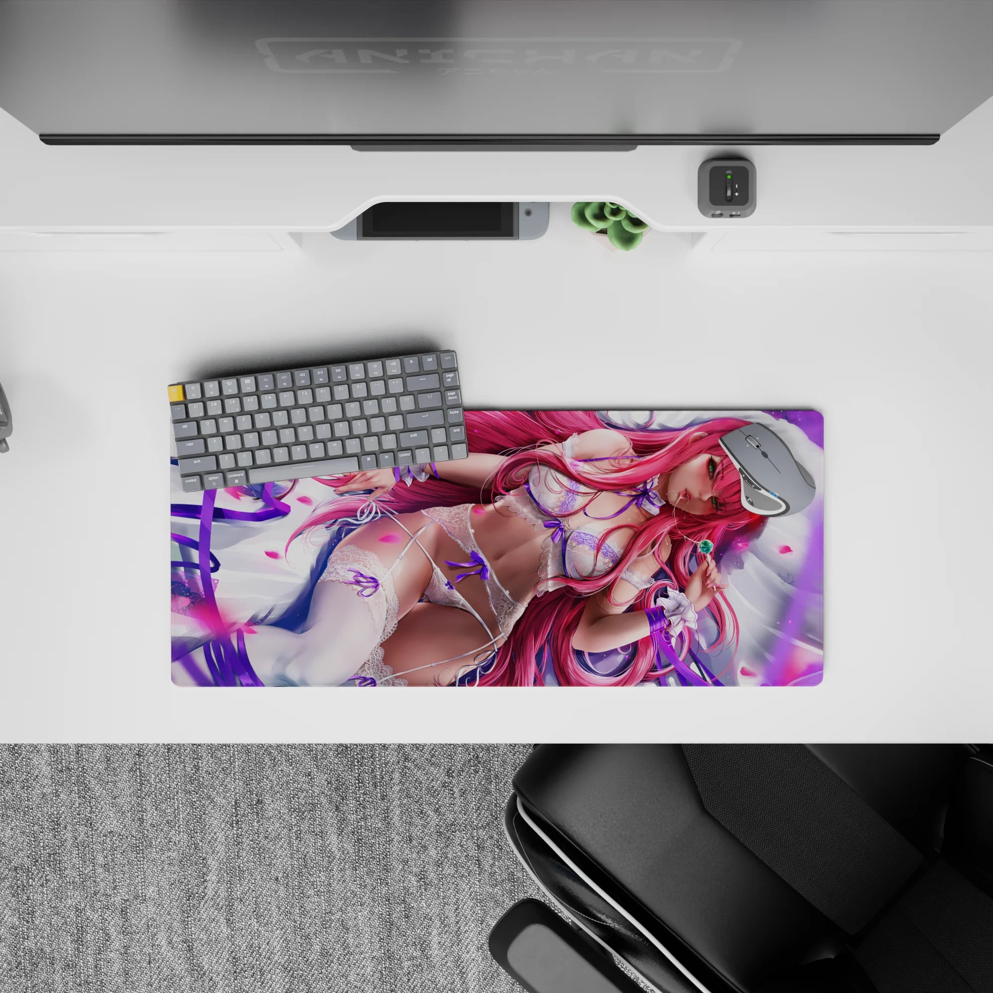 This anime mouse pad features Zero Two in a stunningly elegant design, wrapped in delicate lace and satin ribbons. With soft textures, glowing violet hues, and a gaze full of mystery, this is the ultimate anime desk upgrade.