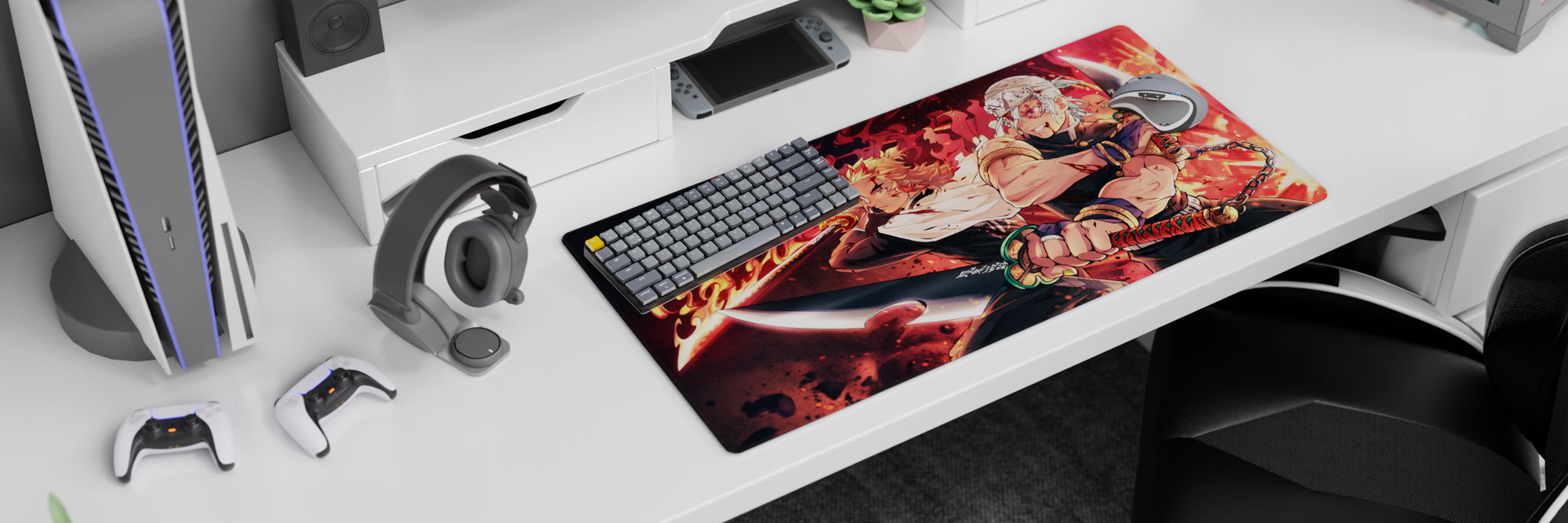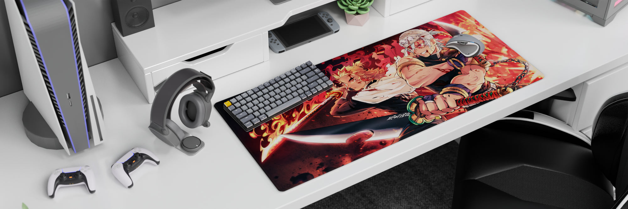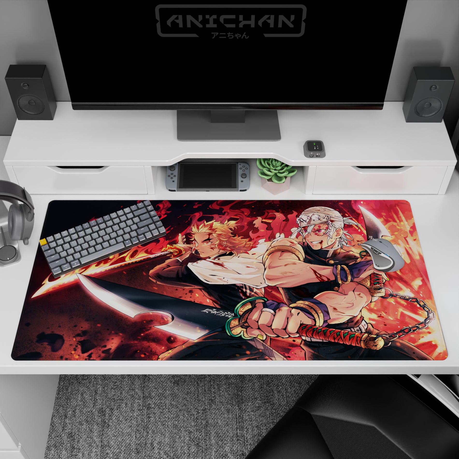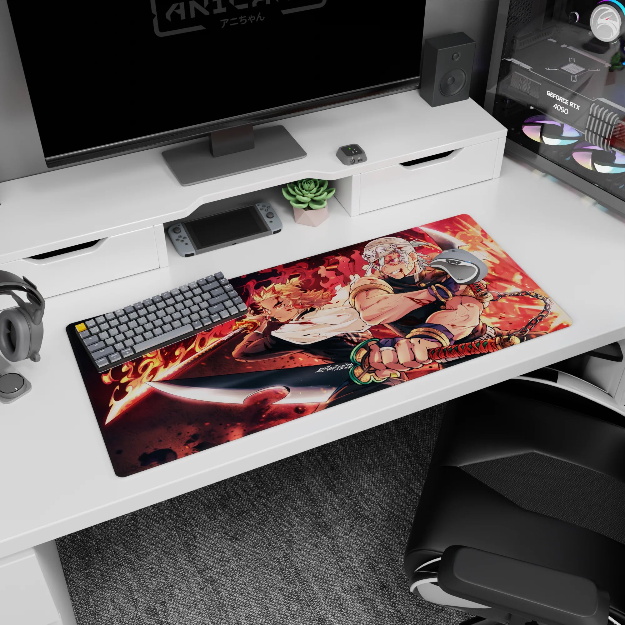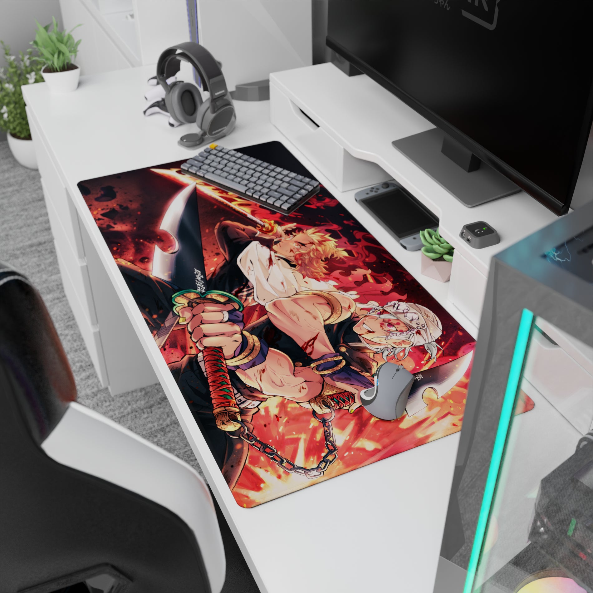 Rengoku and Tengen storm the scene on this anime mouse pad, capturing intense energy. Flames and blades dance with fiery colors and explosive details. A must-have for Demon Slayer fans seeking a dynamic, powerful setup that stands out in every sense.