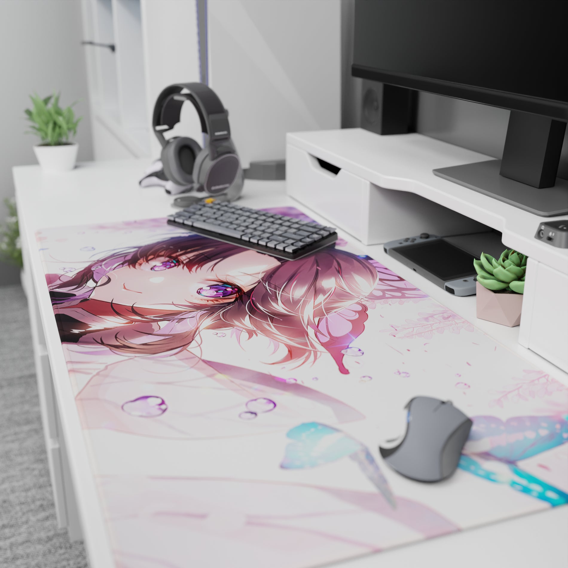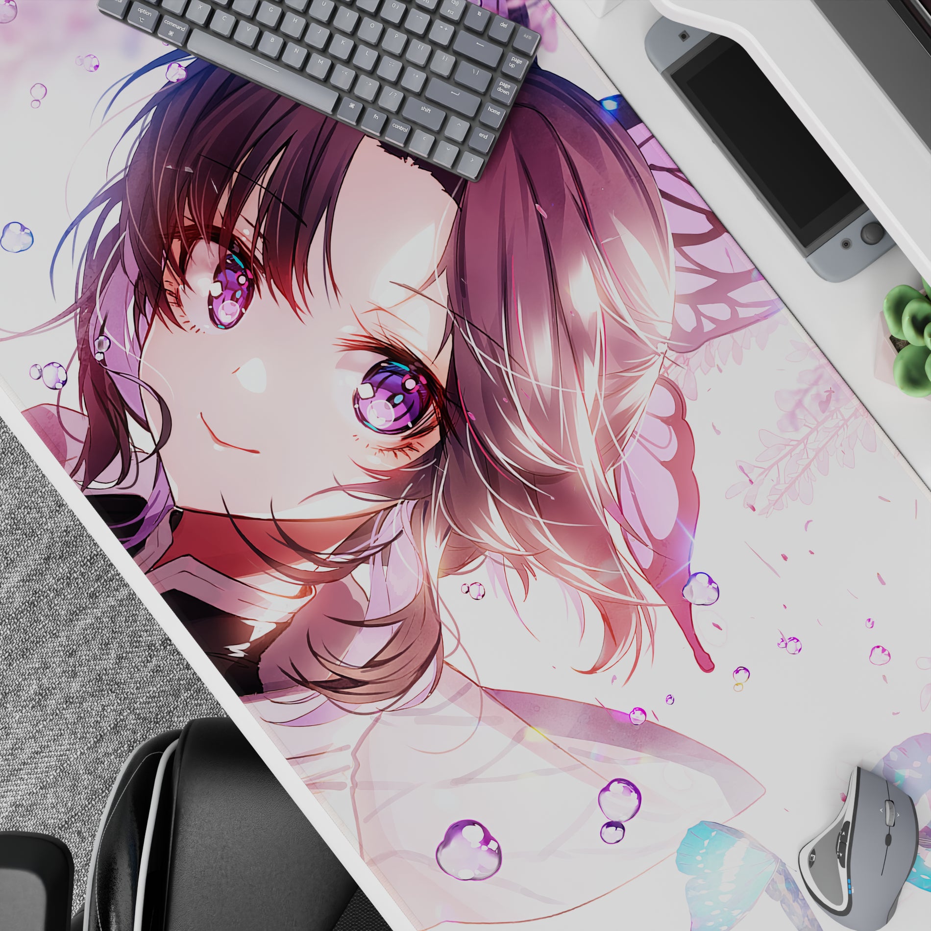 Discover the enchanting Shinobu anime mouse pad with its dreamy pastel hues and surreal shimmer. Violet eyes and butterflies add magic to your workspace. Perfect for Demon Slayer fans, this desk pad brings a touch of fantasy and whimsy to your everyday setup, making work a bit more delightful.