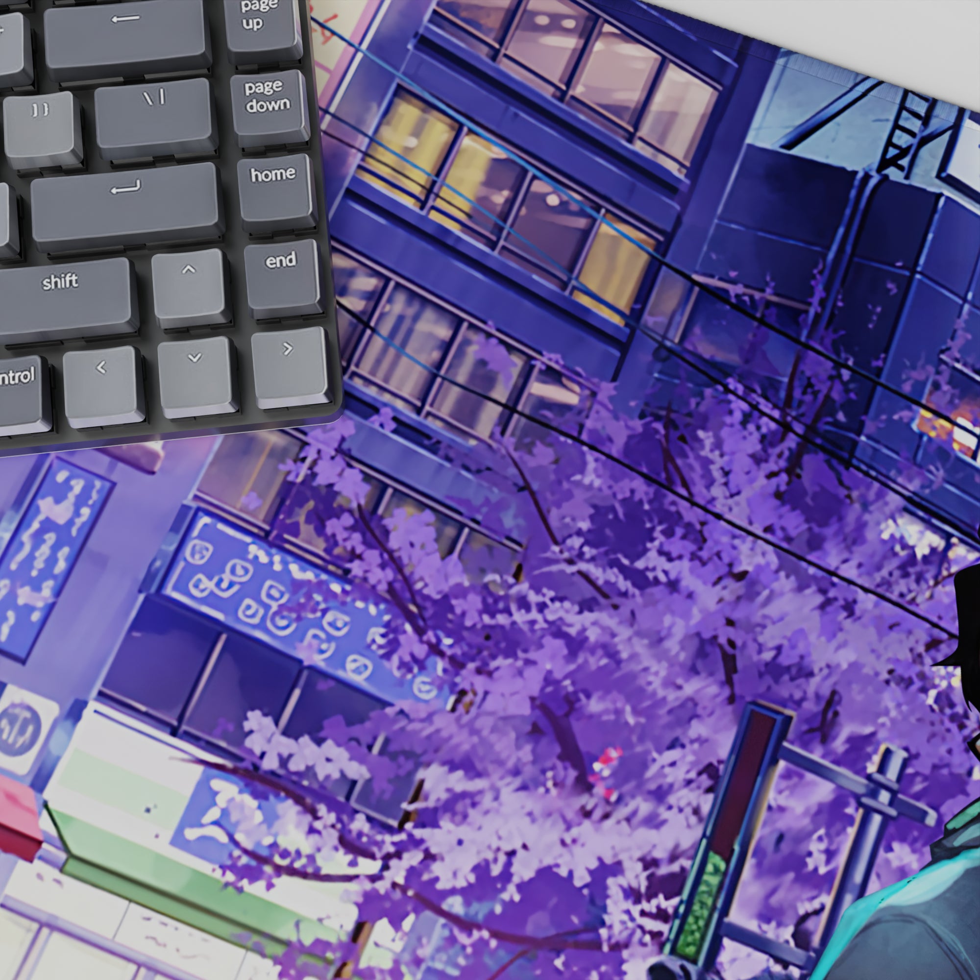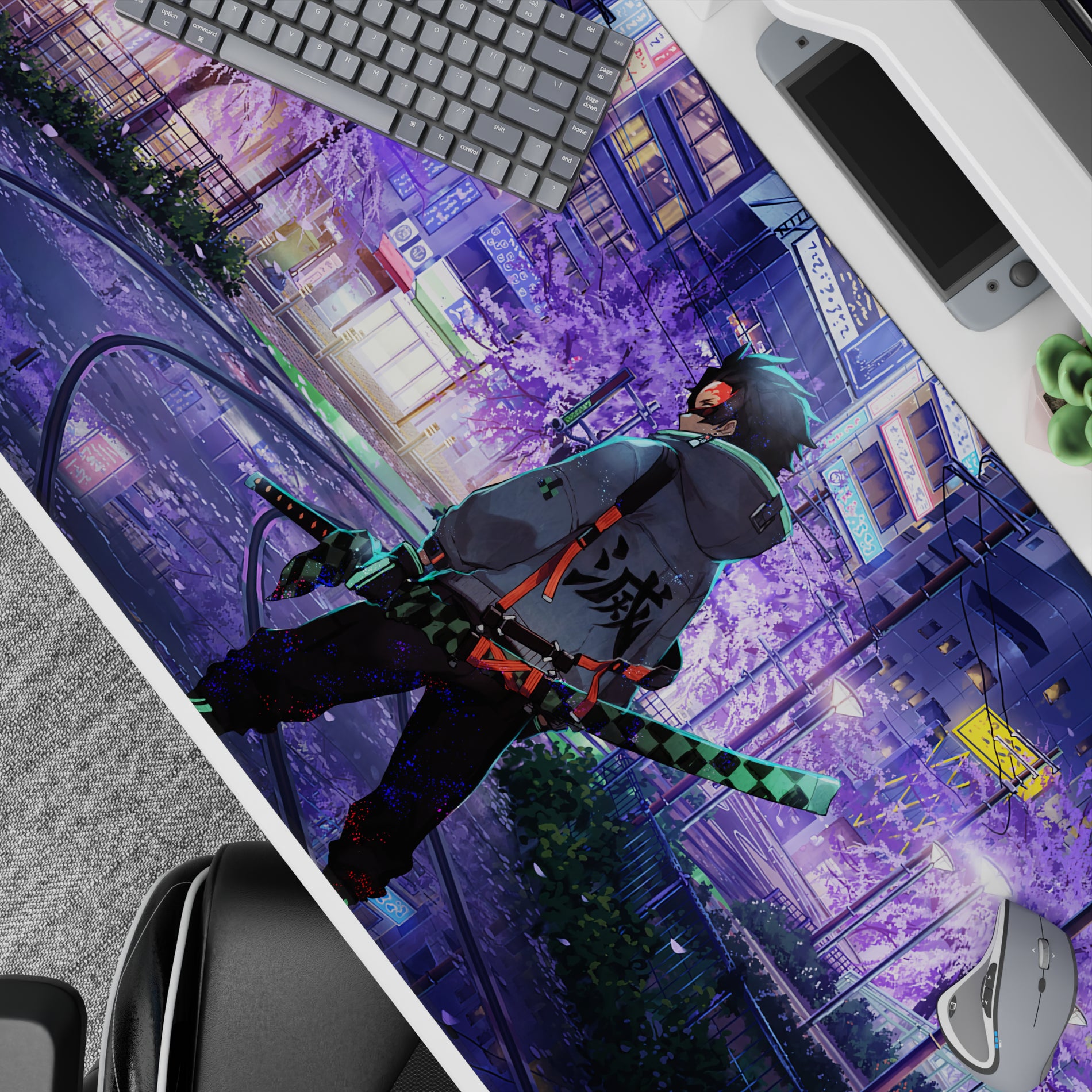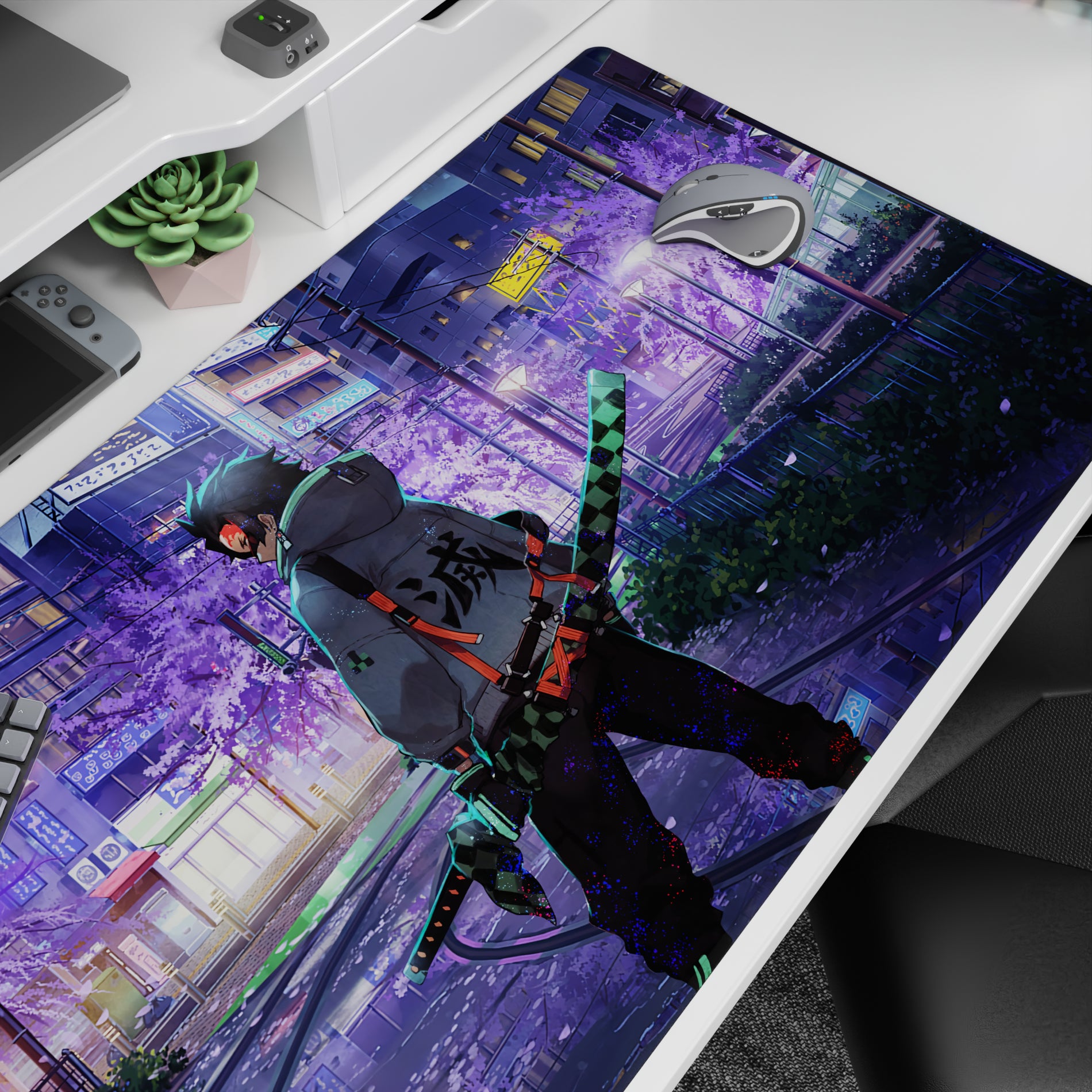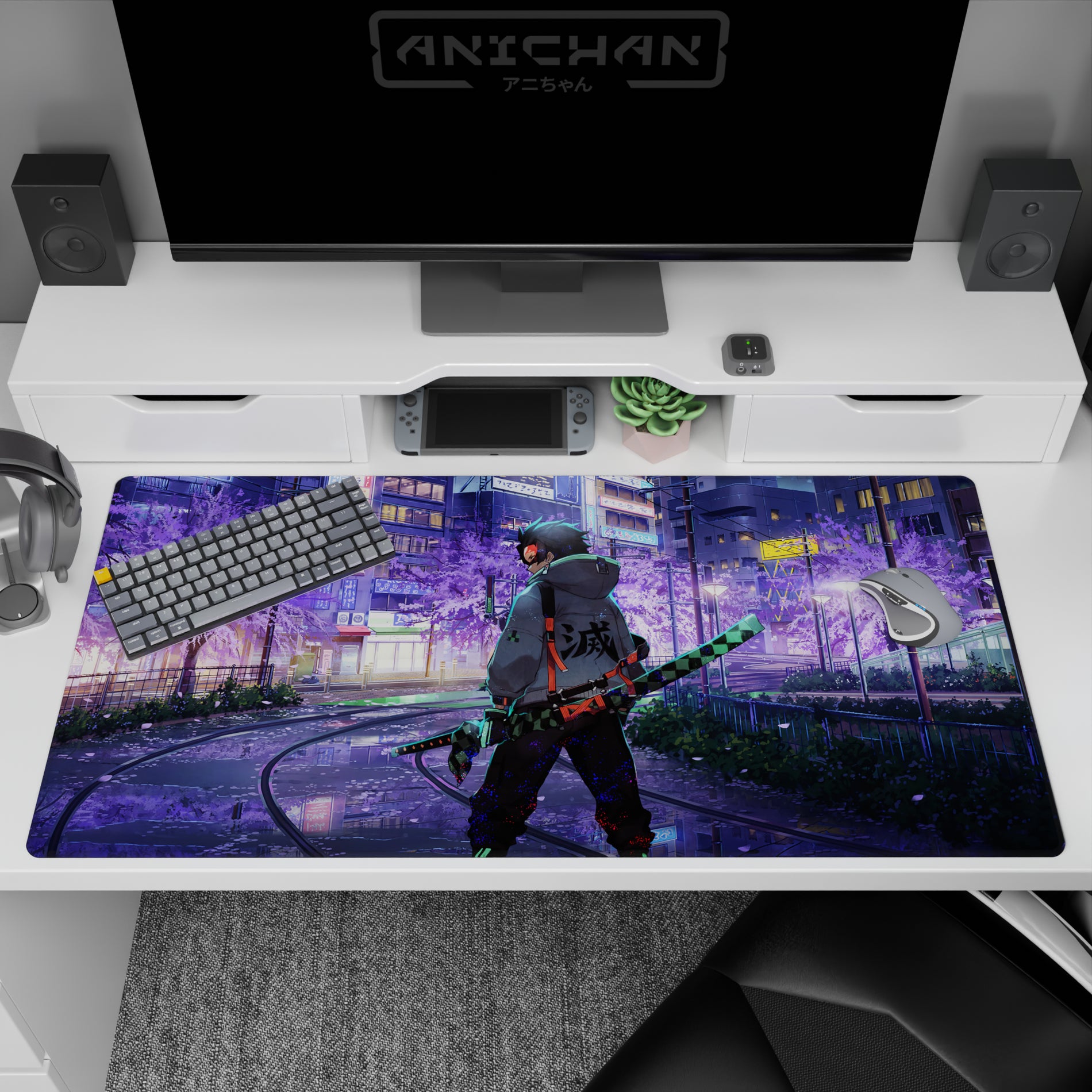 Explore the fusion of modern and ancient with our anime mouse pad, featuring Tanjiro in neon-lit streets with sakura tones. Embrace the Tokyo mood and iconic power. Perfect for fans seeking a unique blend of style and functionality in their workspace.