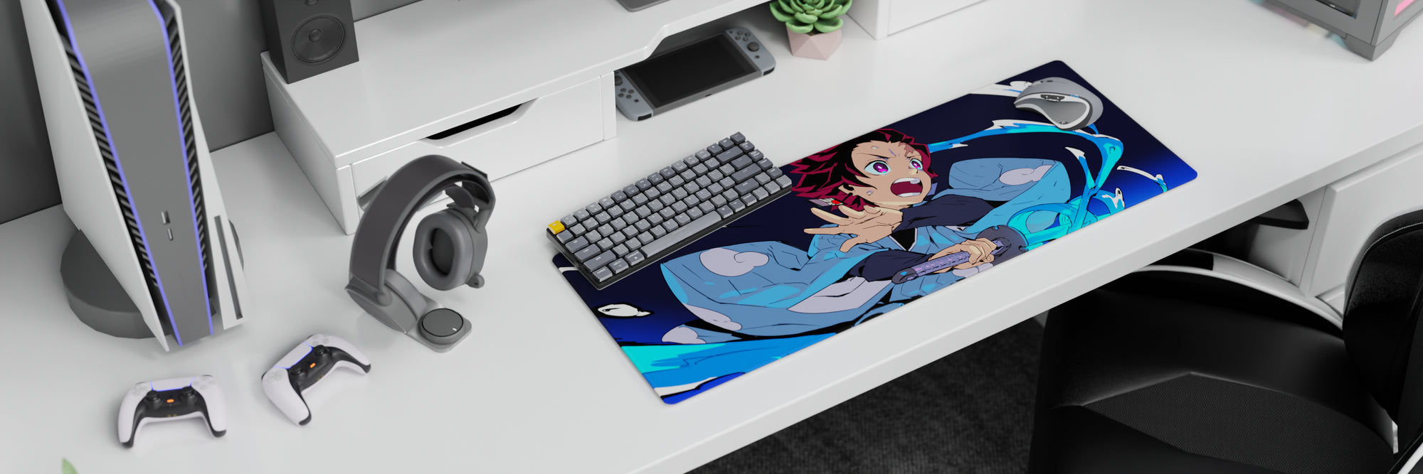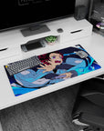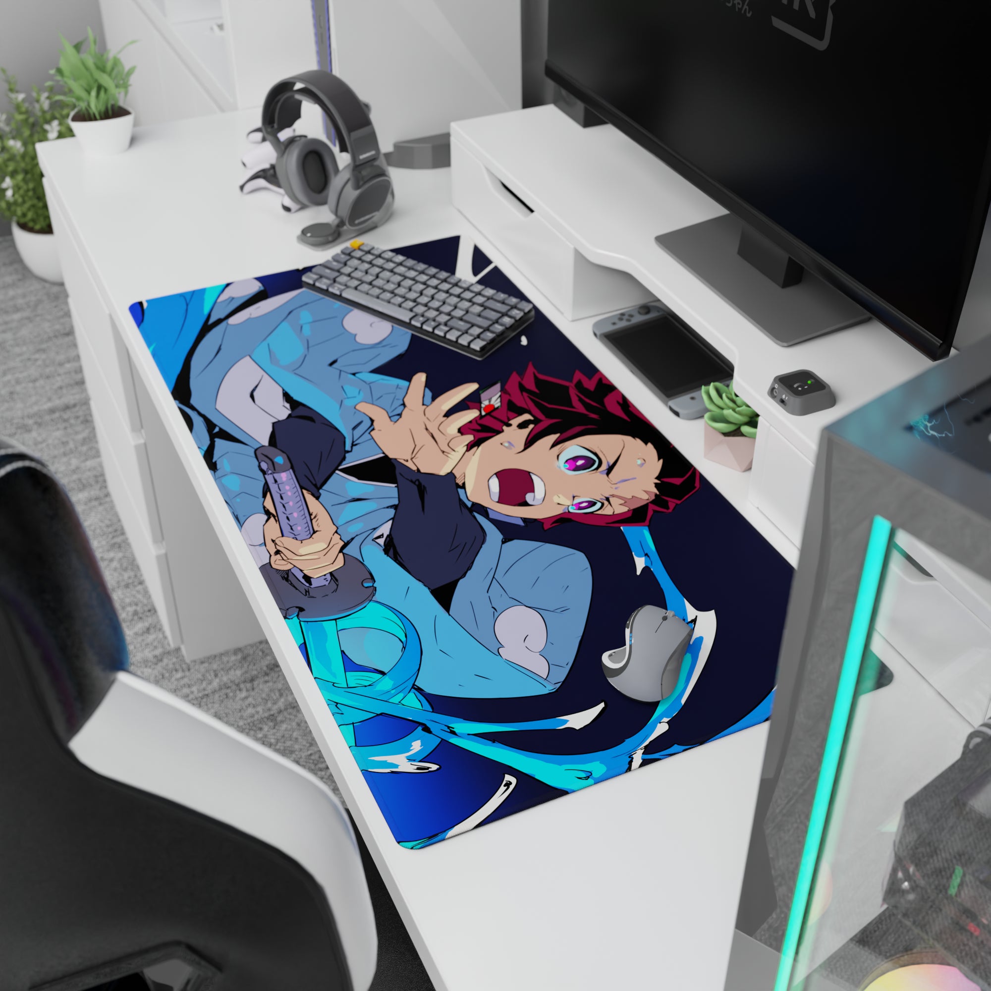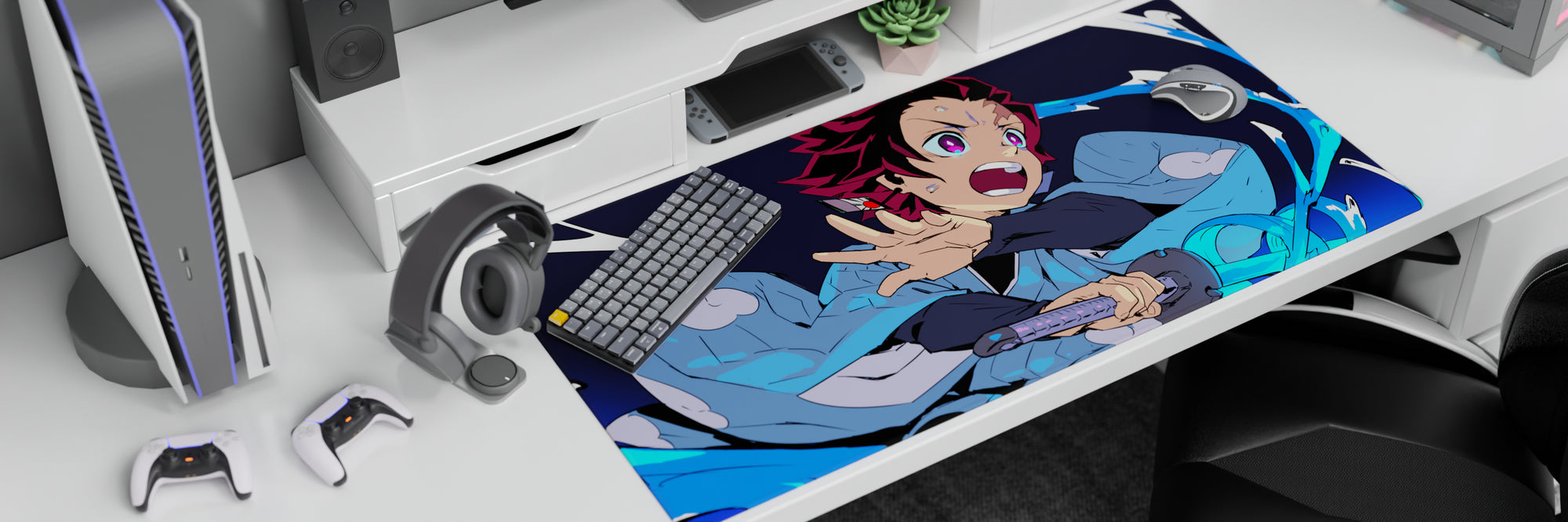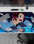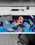 Experience dynamic energy on your desk with our anime mouse pad featuring Tanjiro. Bursting with electric blues and bold blacks, it showcases intense motion and striking water art. Let your workspace reflect the fierce artistry of this unique design, creating a visually stunning environment.