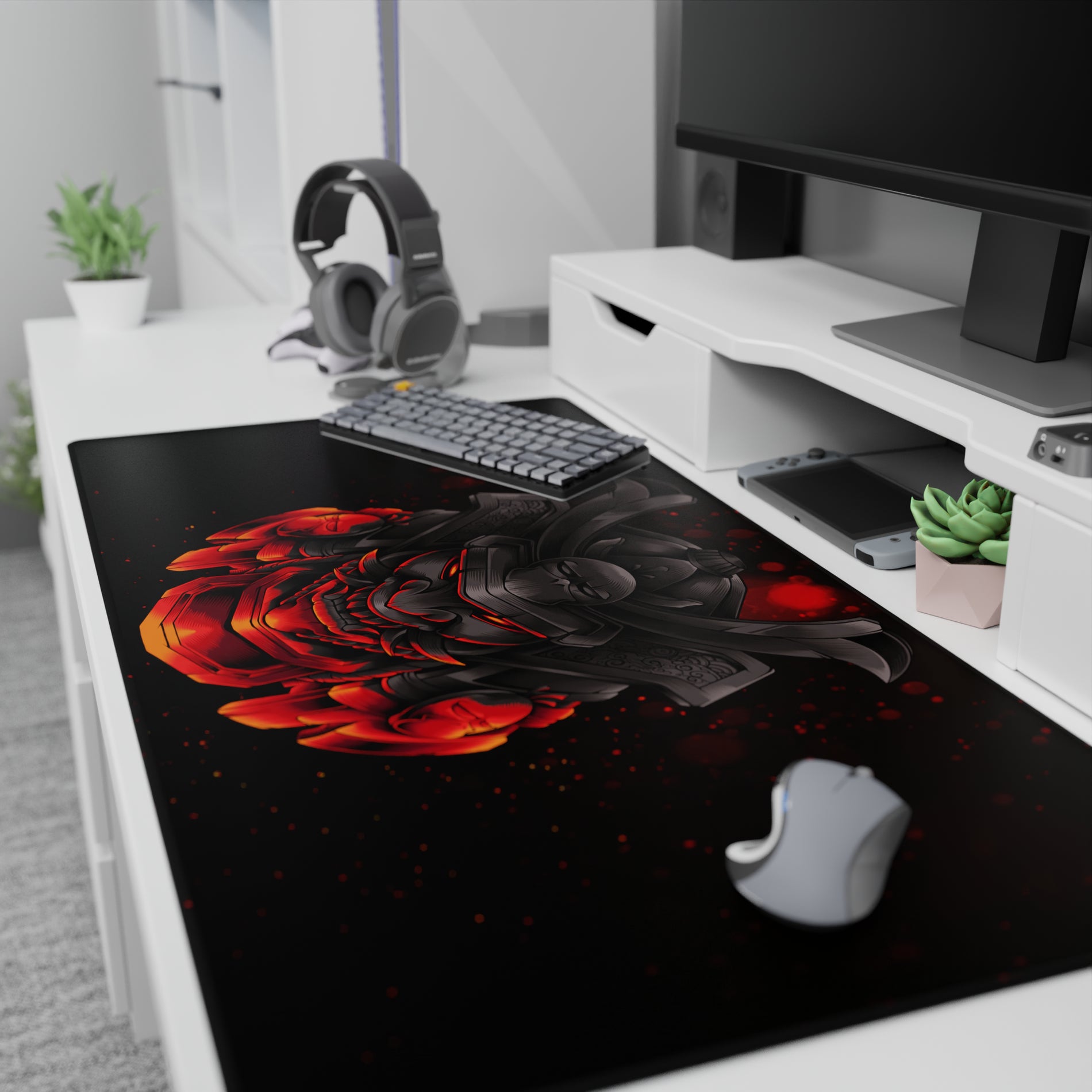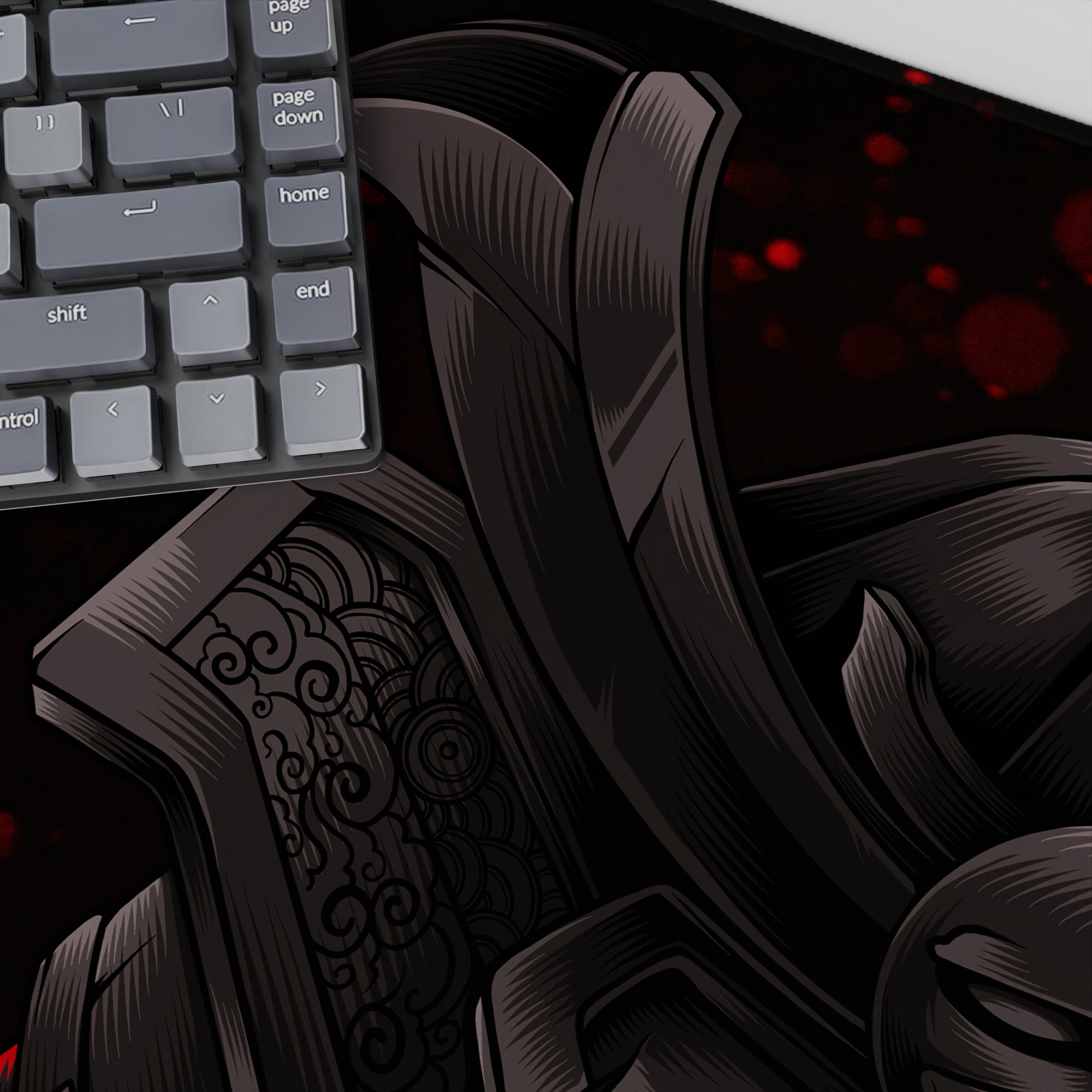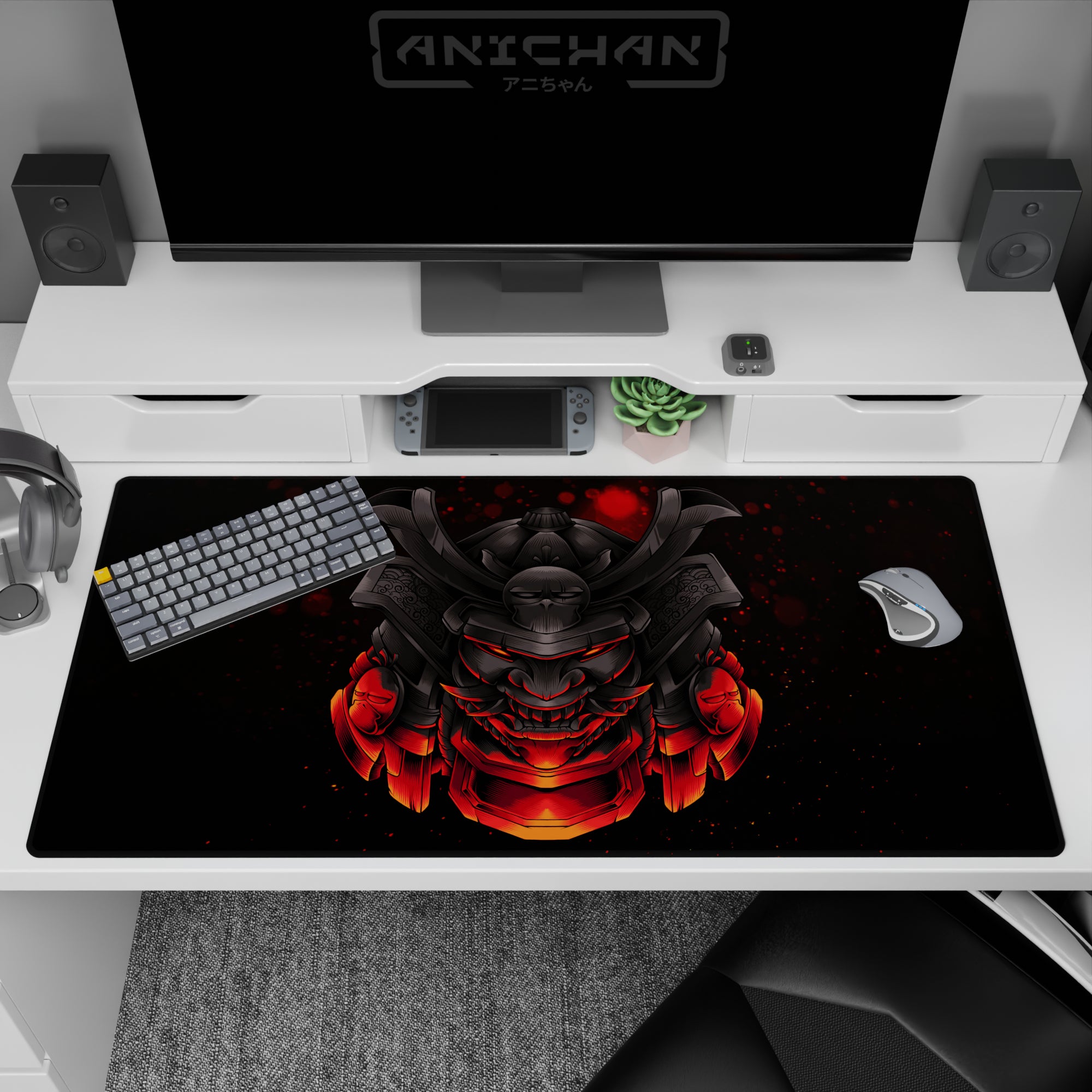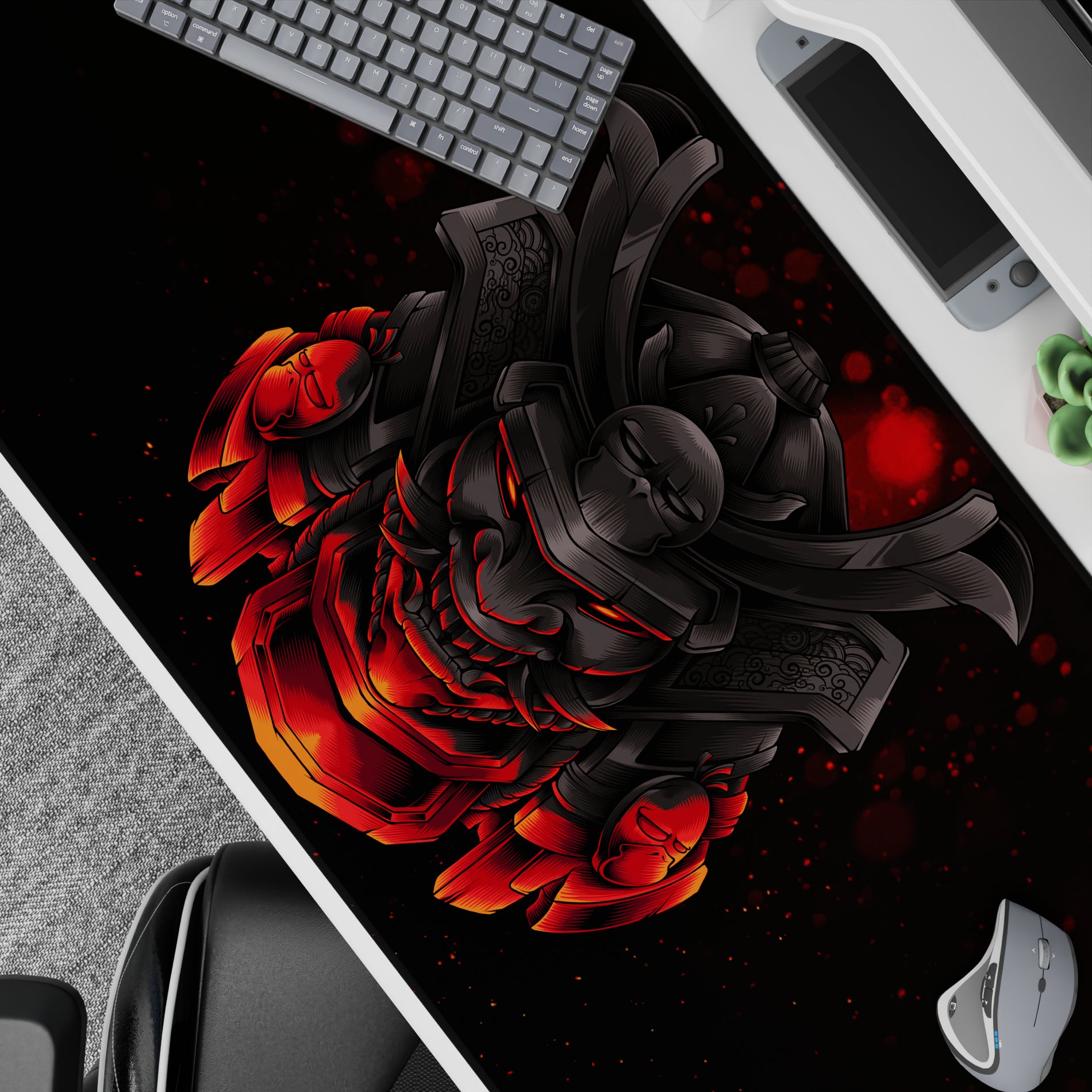 Embrace the intensity of a samurai mask with this anime mouse pad. Intricate designs in deep black and red create a mesmerizing, intimidating look. Perfect for fans of Japanese armor and bold aesthetics. Experience the power of this unique design on your desk.
