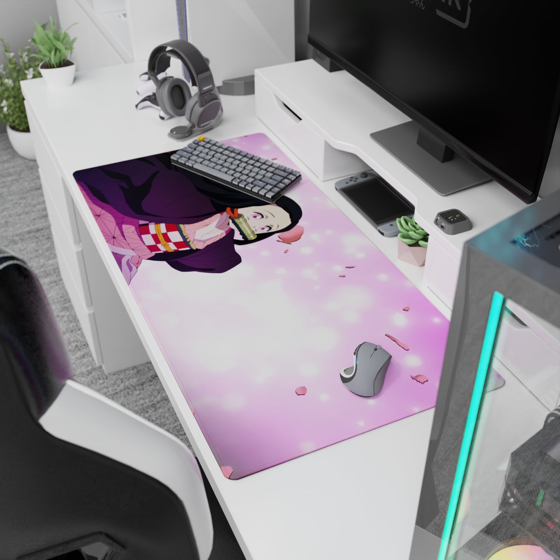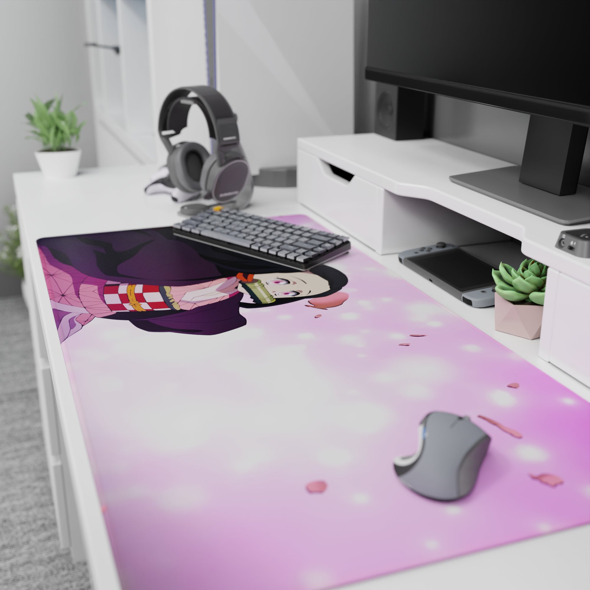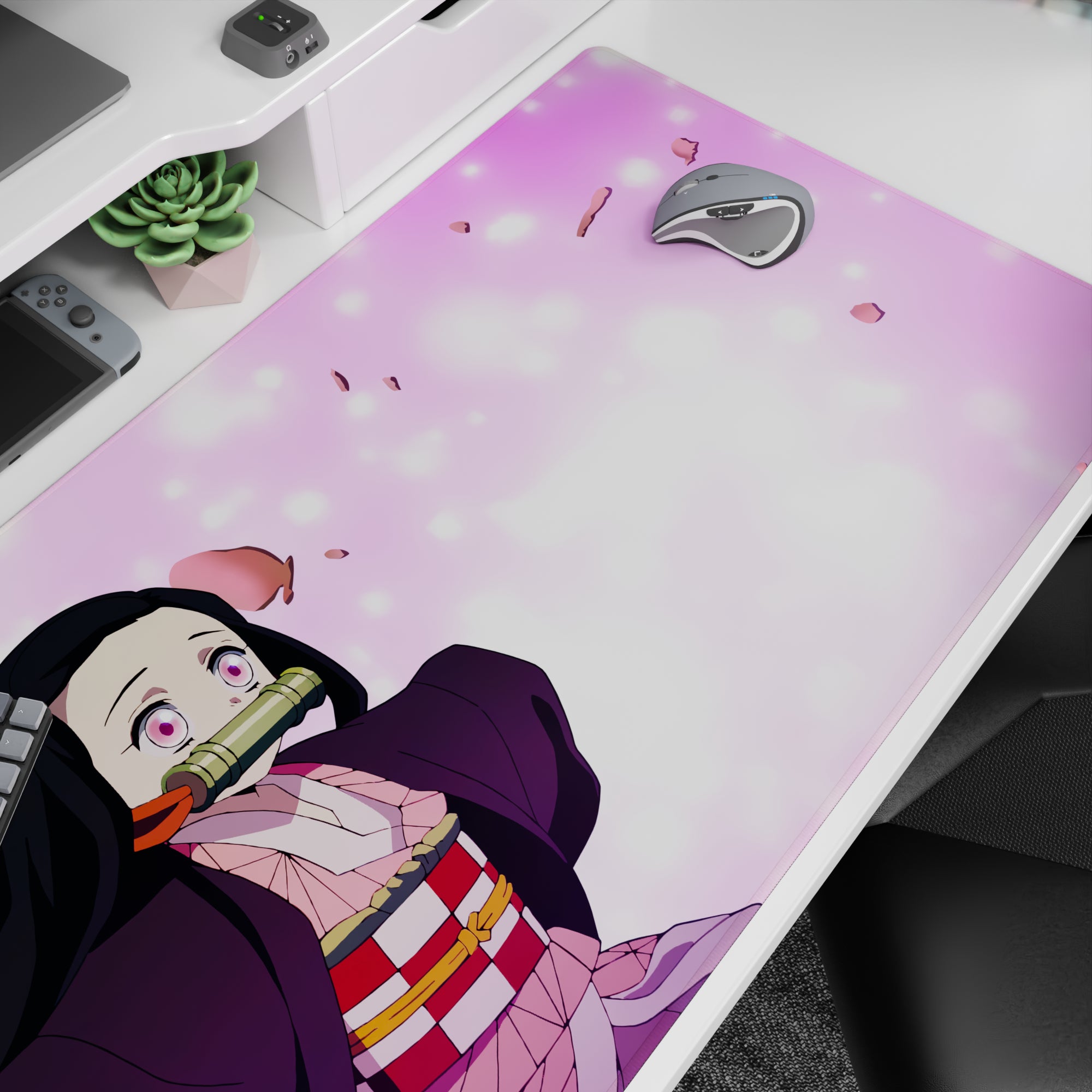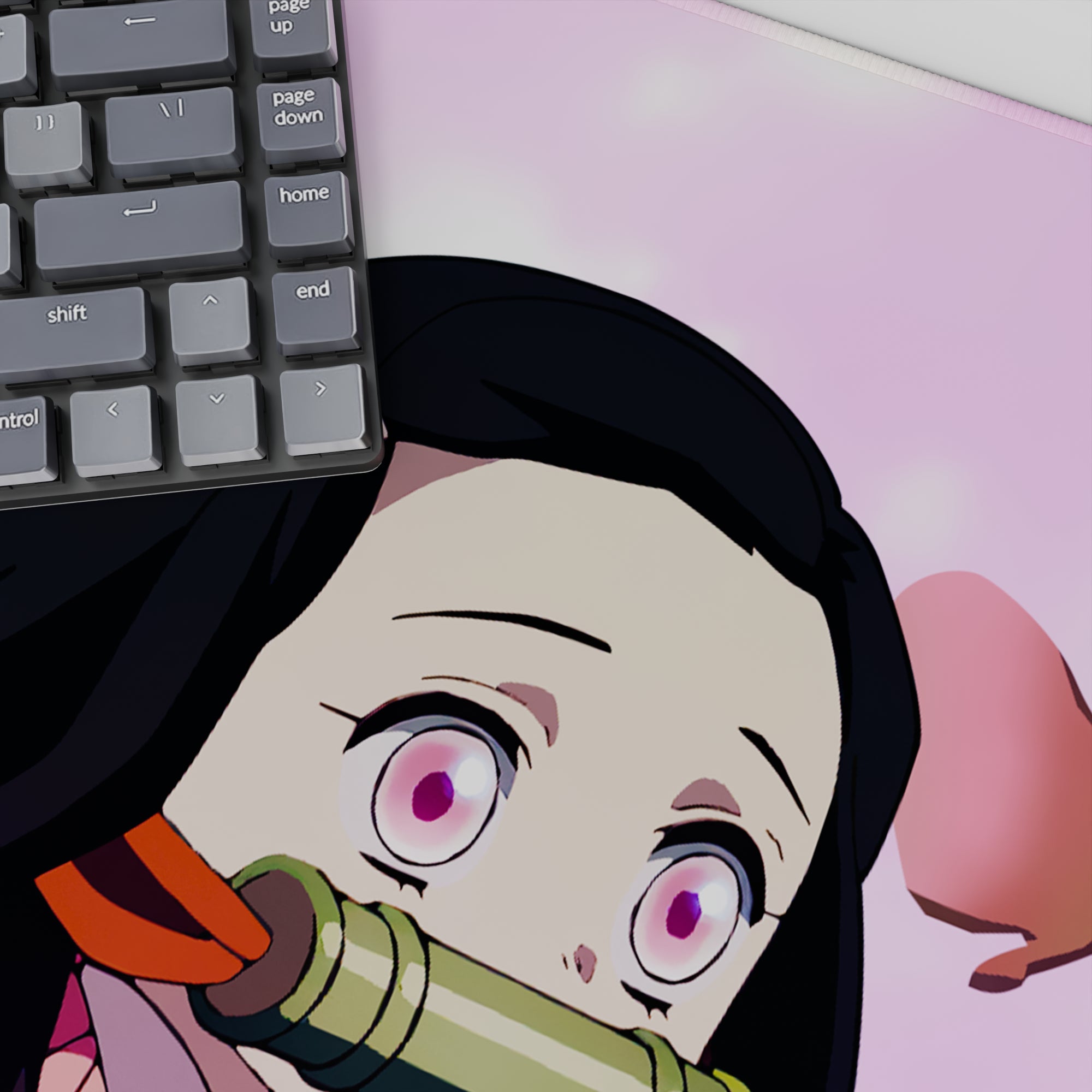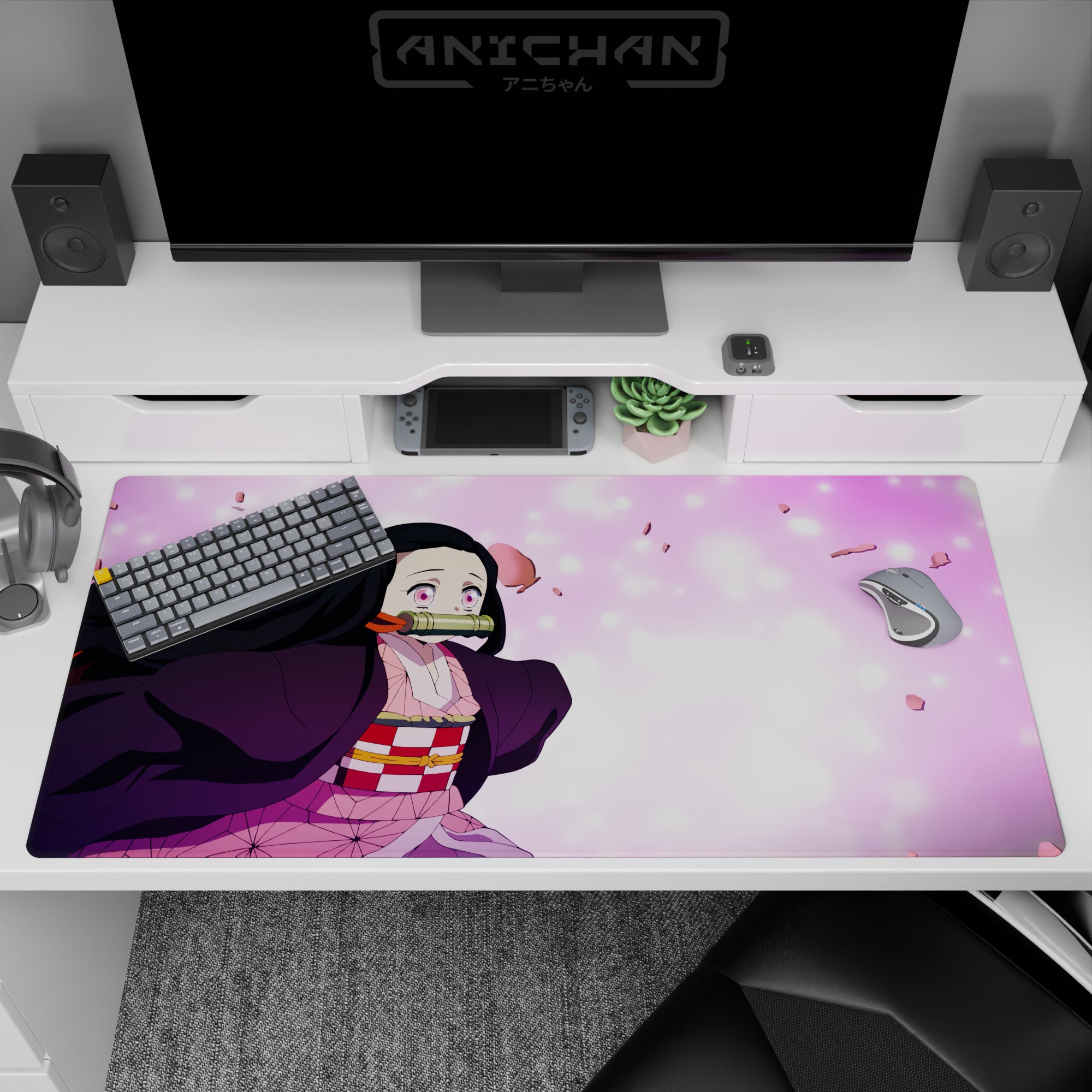 Experience the dynamic charm of Nezuko with our anime mouse pad, featuring vibrant sakura petals and her captivating eyes. Soft pastels meet an energetic design, capturing the essence of spring's gentle power. Perfect for anime fans seeking style and comfort on their desk.