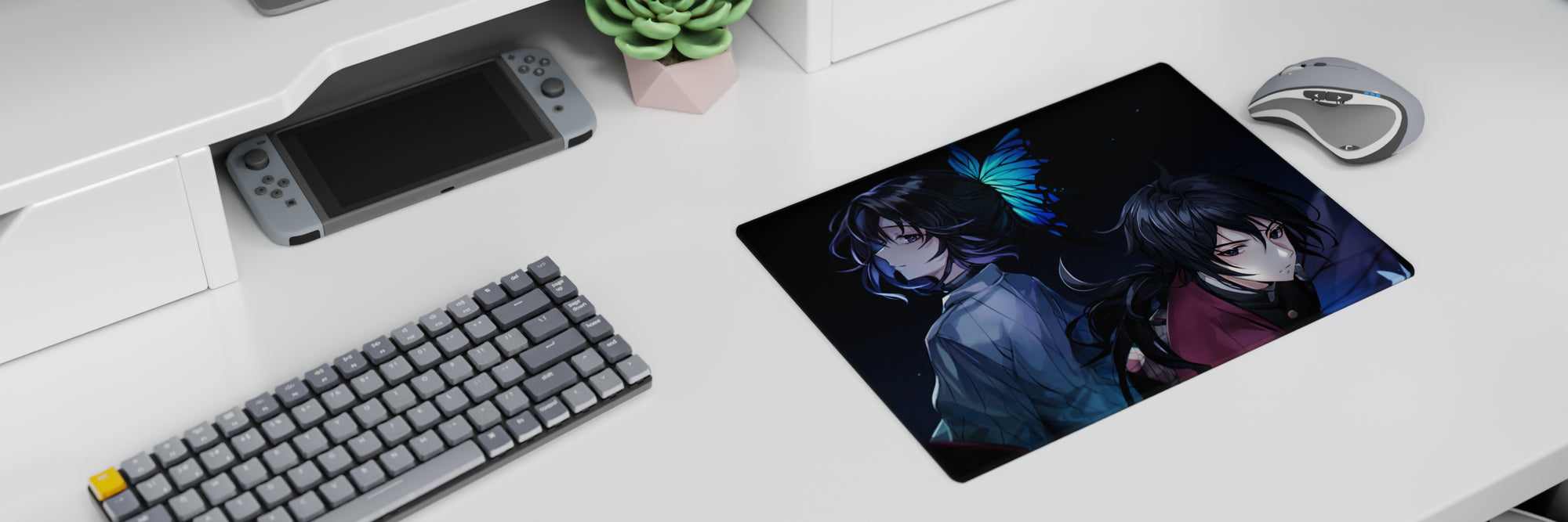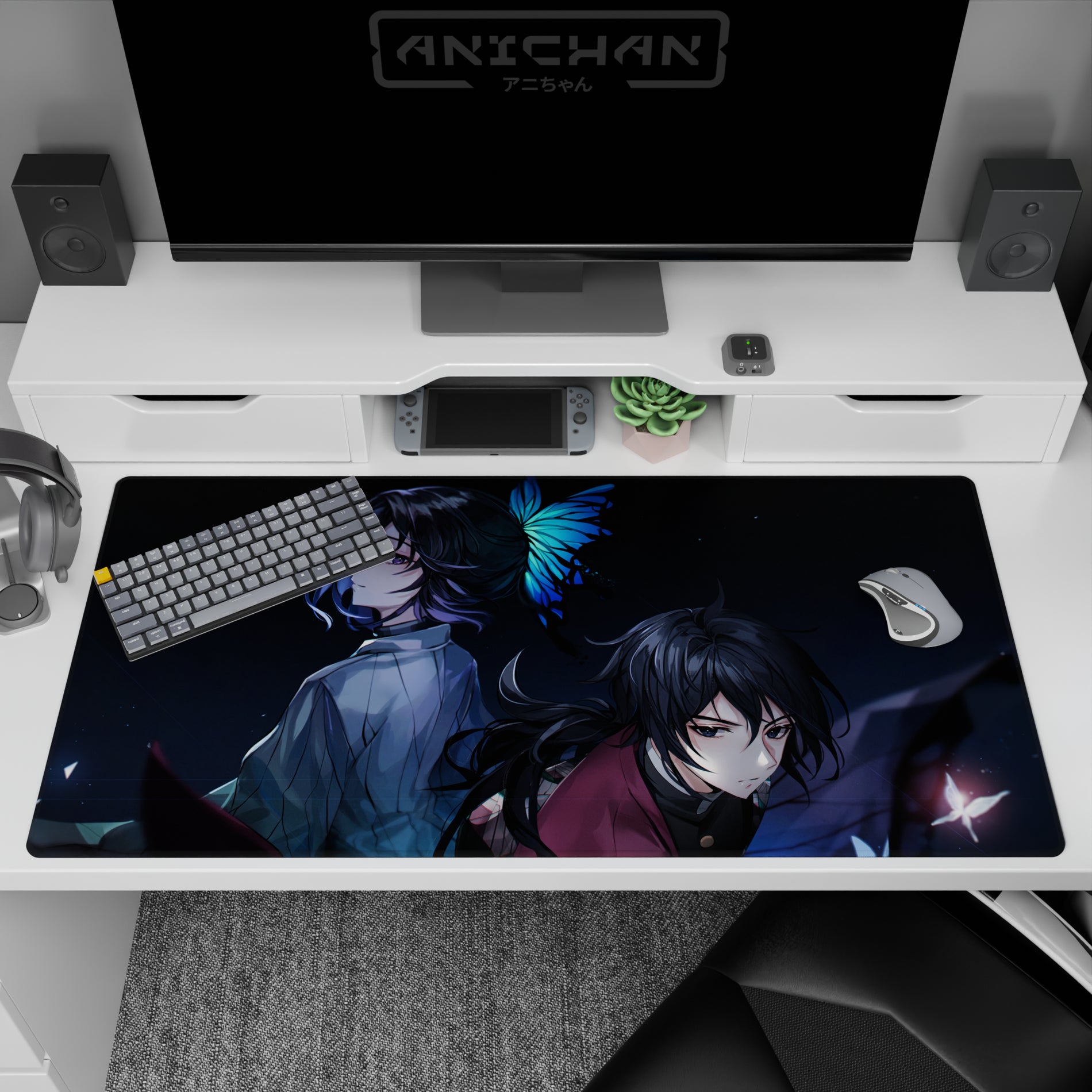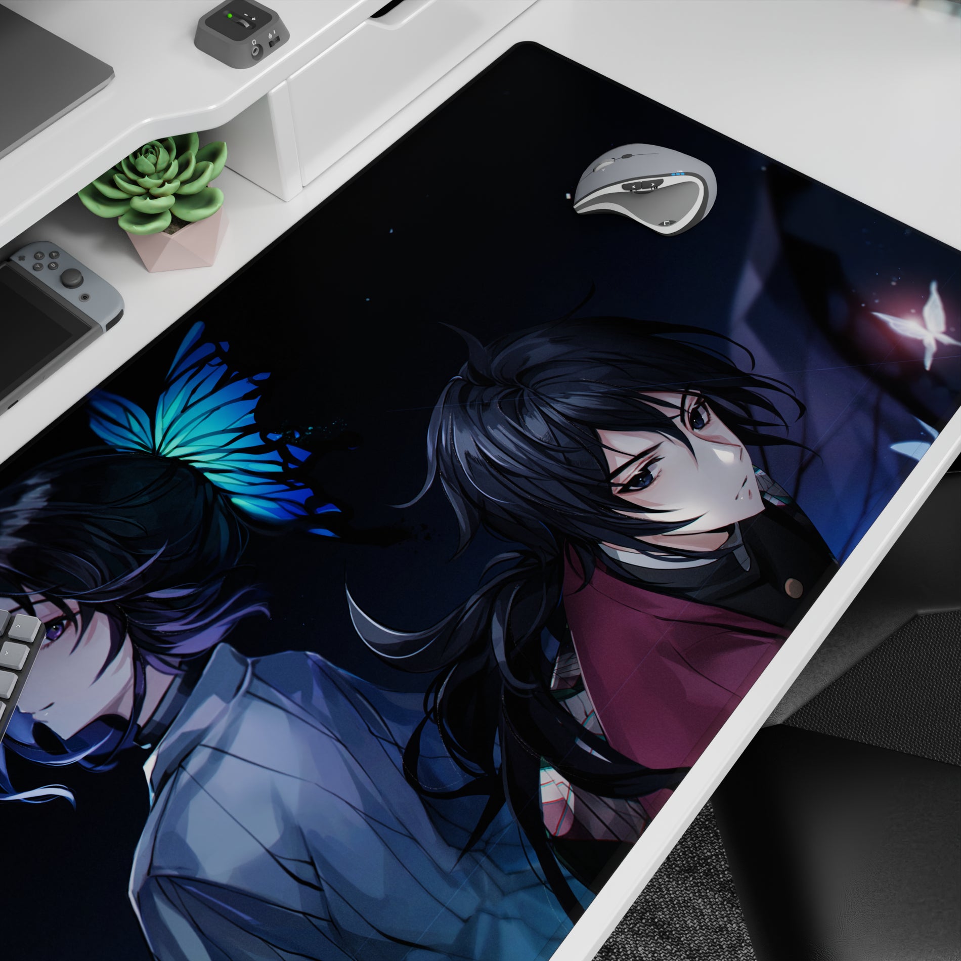 Discover the allure of our anime mouse pad featuring Shinobu and Giyu. Dark hues with a touch of mystery, this pad offers both style and comfort. Perfect for fans seeking the extraordinary in every swipe. Add a unique touch to your desk today and feel the quiet power in every glance.