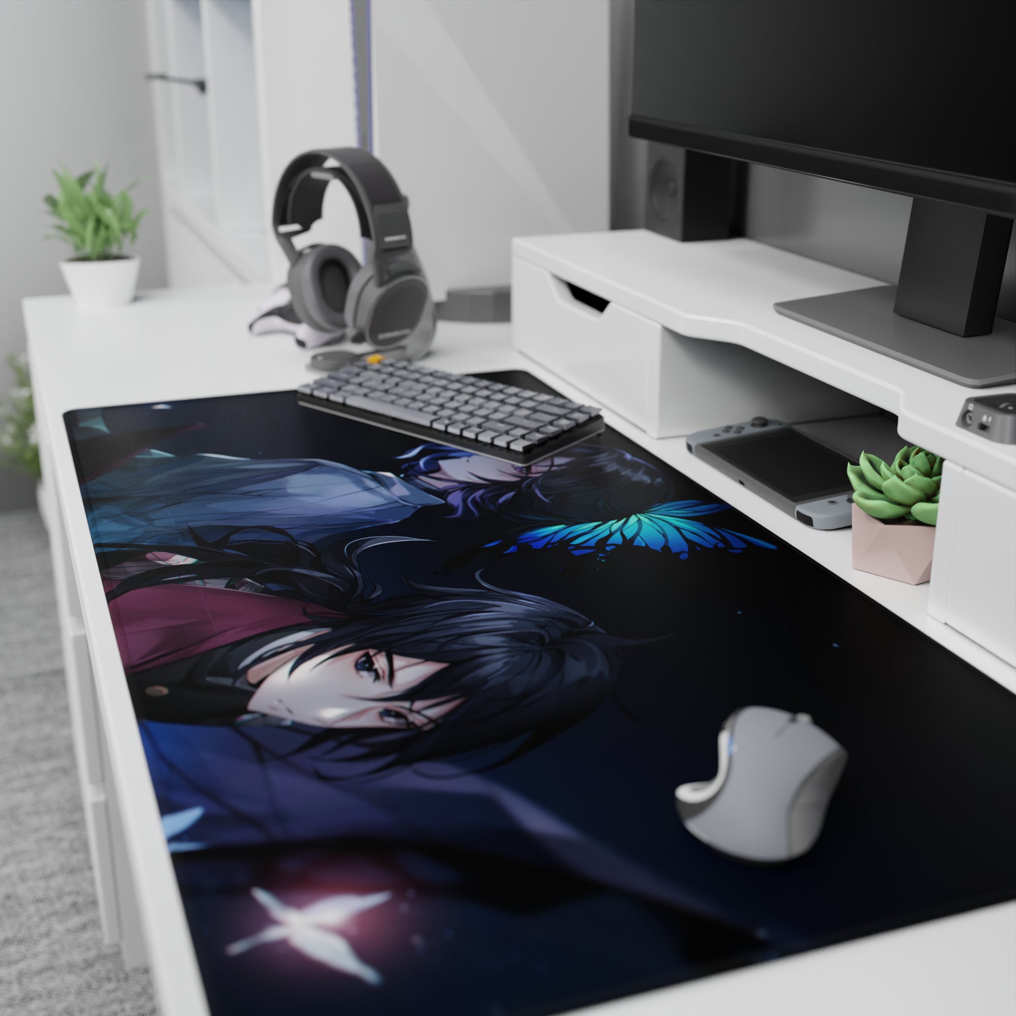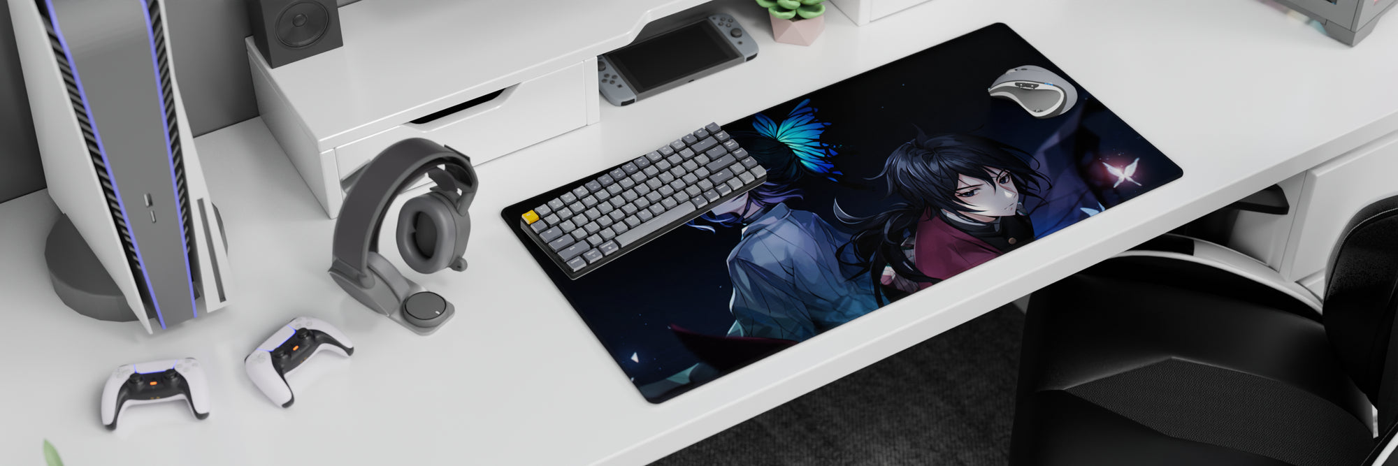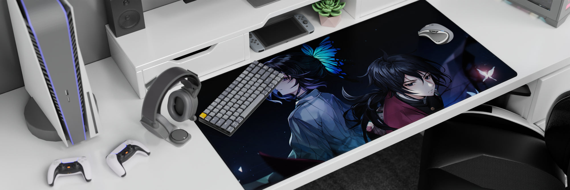 Discover the allure of our anime mouse pad featuring Shinobu and Giyu. Dark hues with a touch of mystery, this pad offers both style and comfort. Perfect for fans seeking the extraordinary in every swipe. Add a unique touch to your desk today and feel the quiet power in every glance.