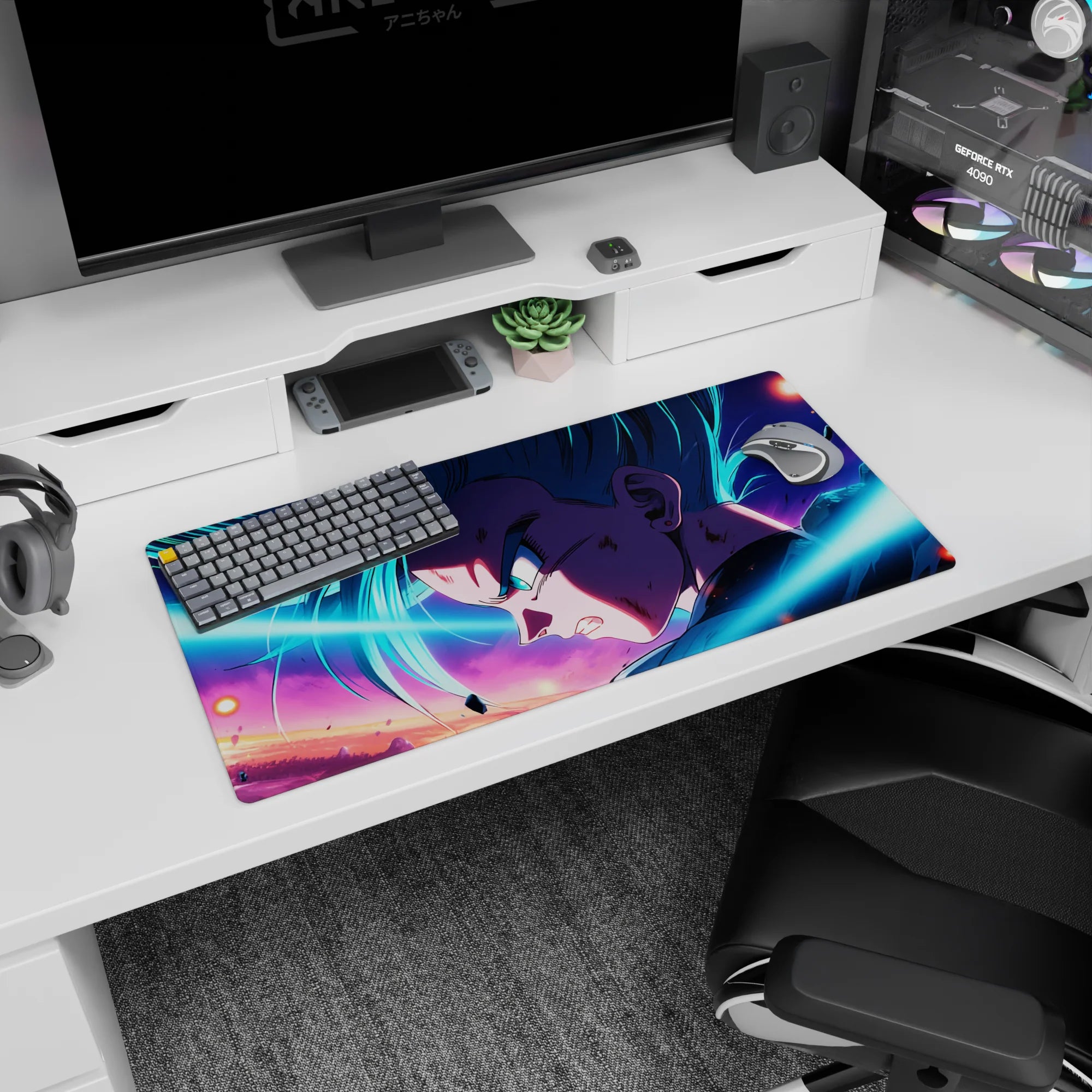 Channel the energy of a Super Saiyan with this stunning desk mat featuring Goku in the midst of battle, surrounded by vibrant colors and intense action. Perfect for any anime fan’s desk, this high-quality mat is a must-have addition to your setup.