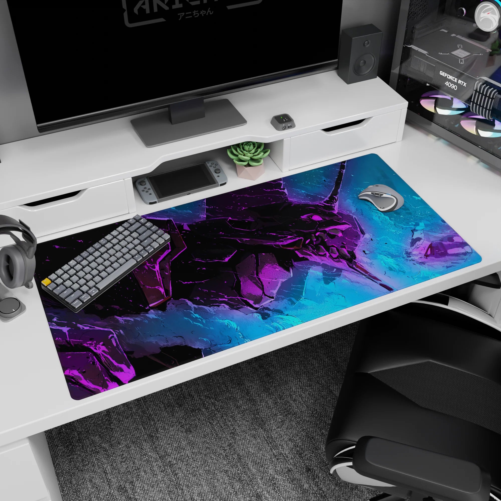 Feel the unstoppable rage of Evangelion Unit-01 with this anime mouse pad, drenched in neon purples and electric blues. A dynamic, high-energy design that captures the raw power of Neon Genesis Evangelion, perfect for fans who want their desk to radiate chaos and strength!