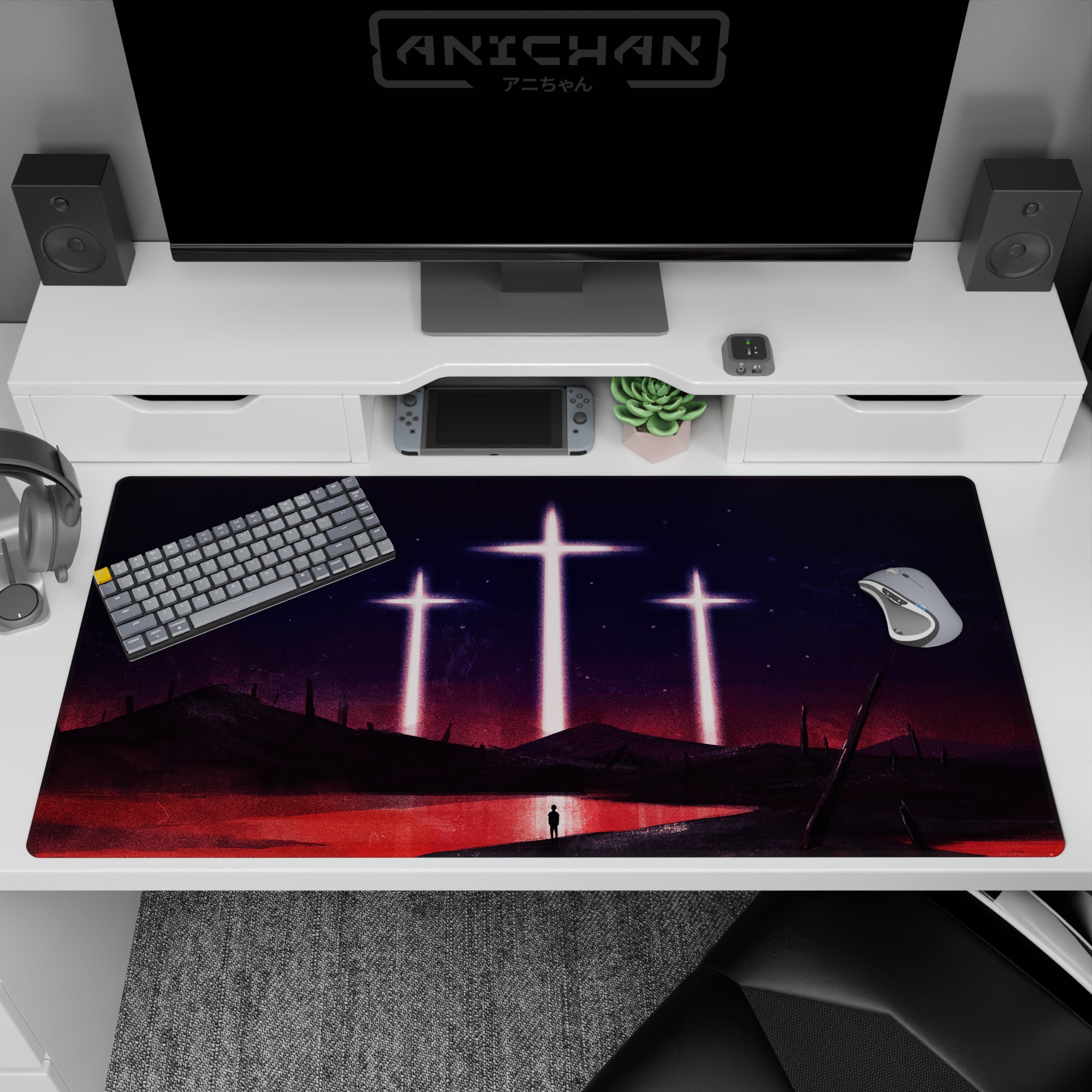 Discover an anime mouse pad that captures the eerie calm of Evangelion's final act with its blood-red sea and glowing crosses. Perfect for fans, this piece adds a serene yet haunting touch to your setup, drenched in purples and crimson, making it essential for any Evangelion collection.
