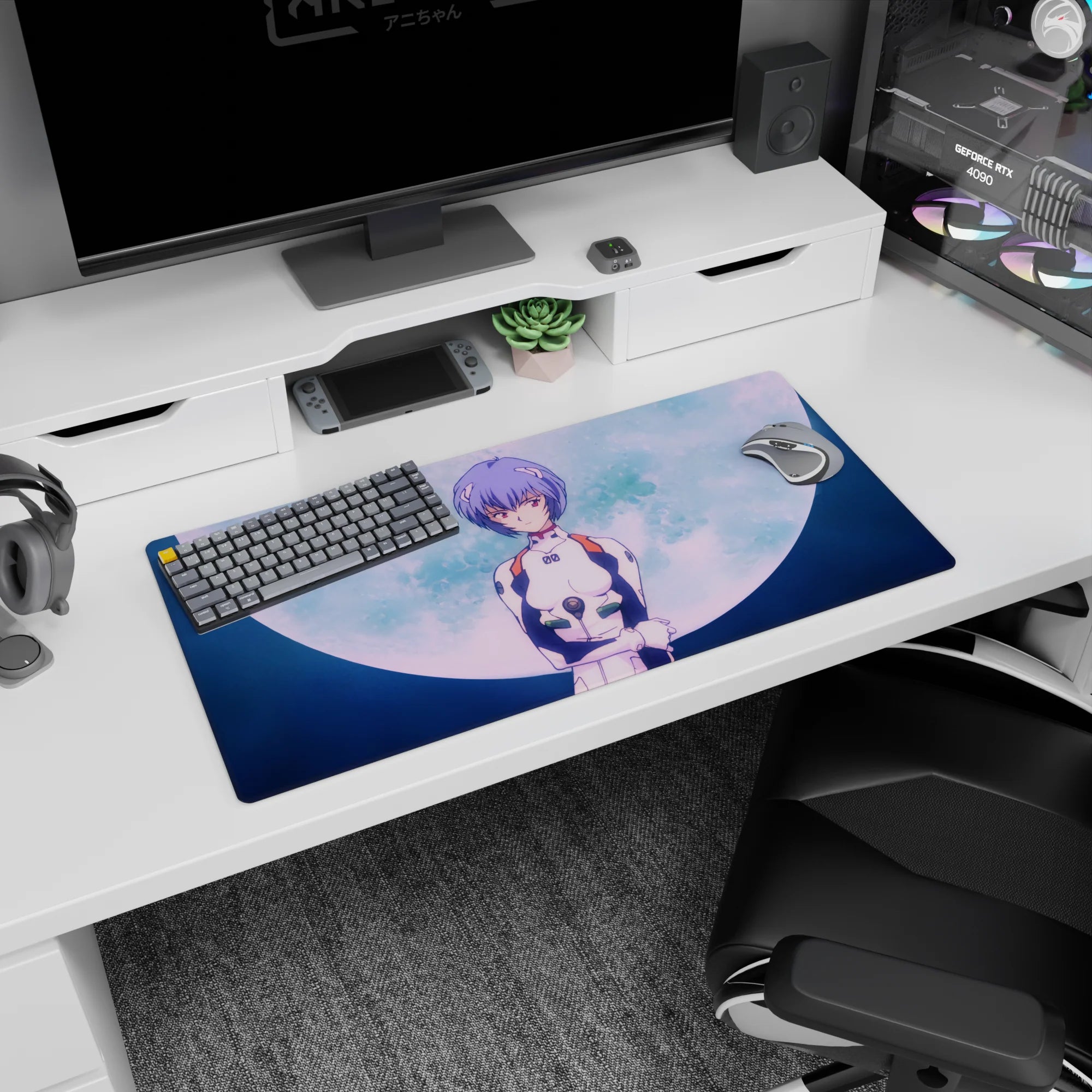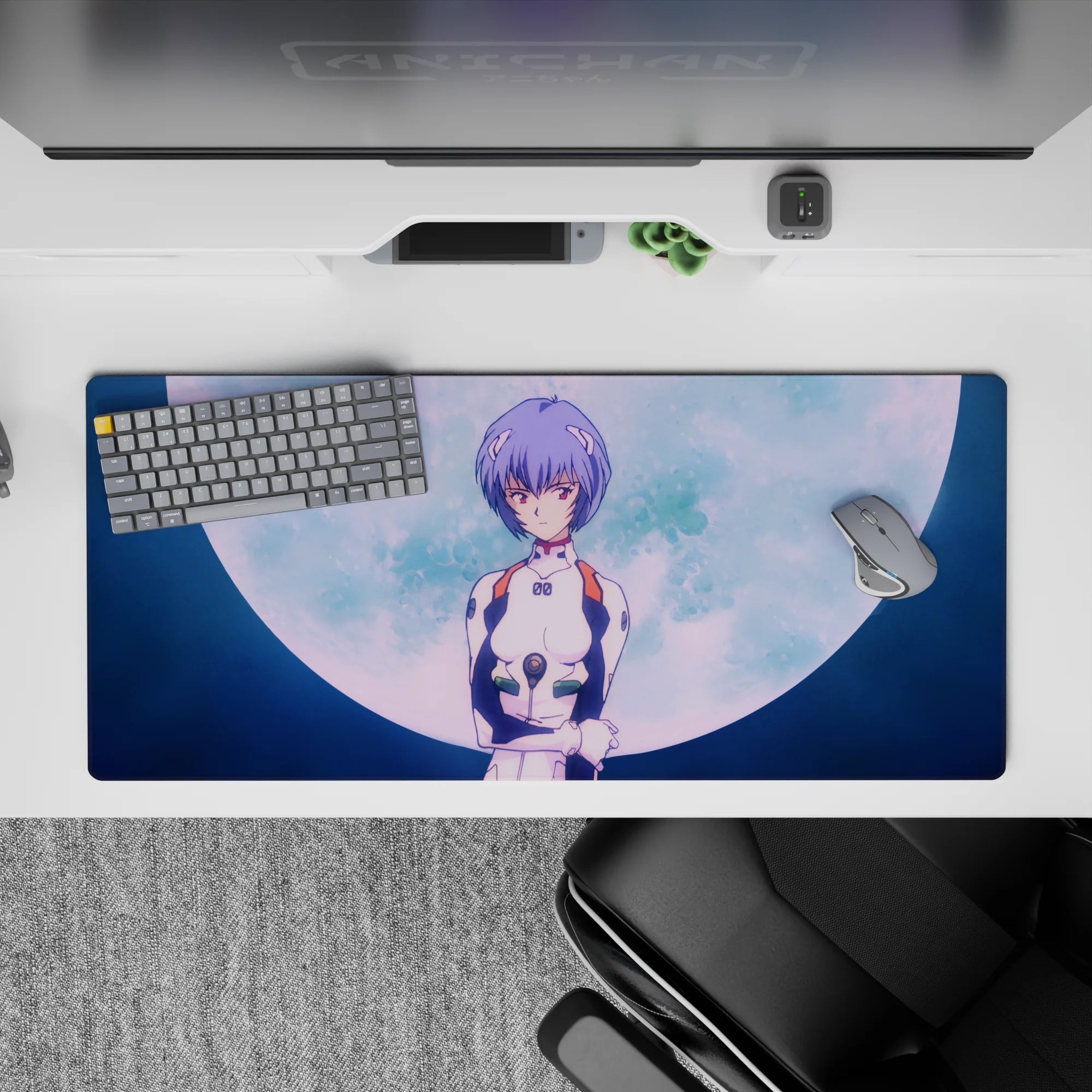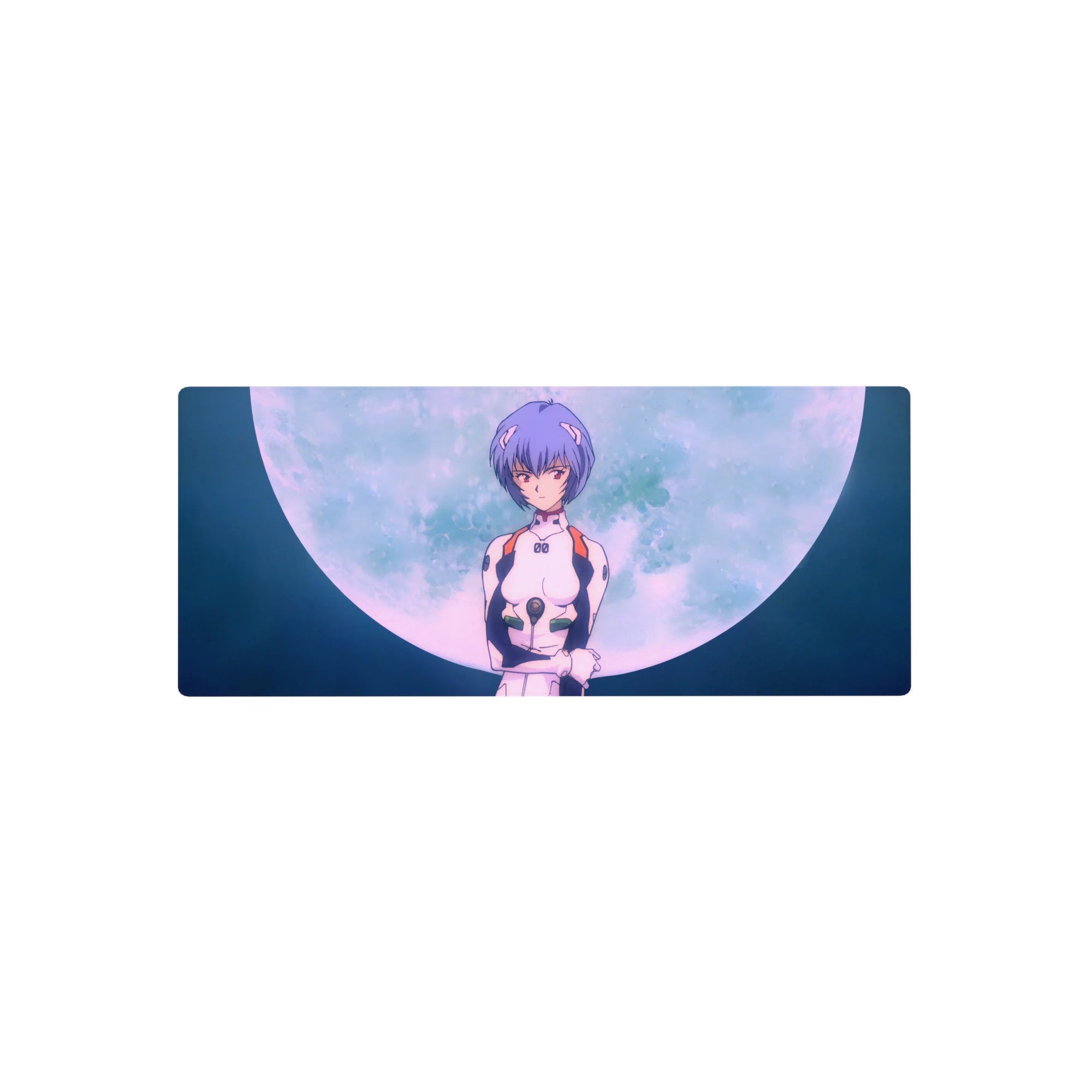 Step into the celestial beauty of Neon Genesis Evangelion with this anime mouse pad featuring Rei Ayanami against a luminous full moon. The soft blues and ethereal glow create a mesmerizing touch to any desk setup. Perfect for fans who love cosmic elegance and a touch of mystery.