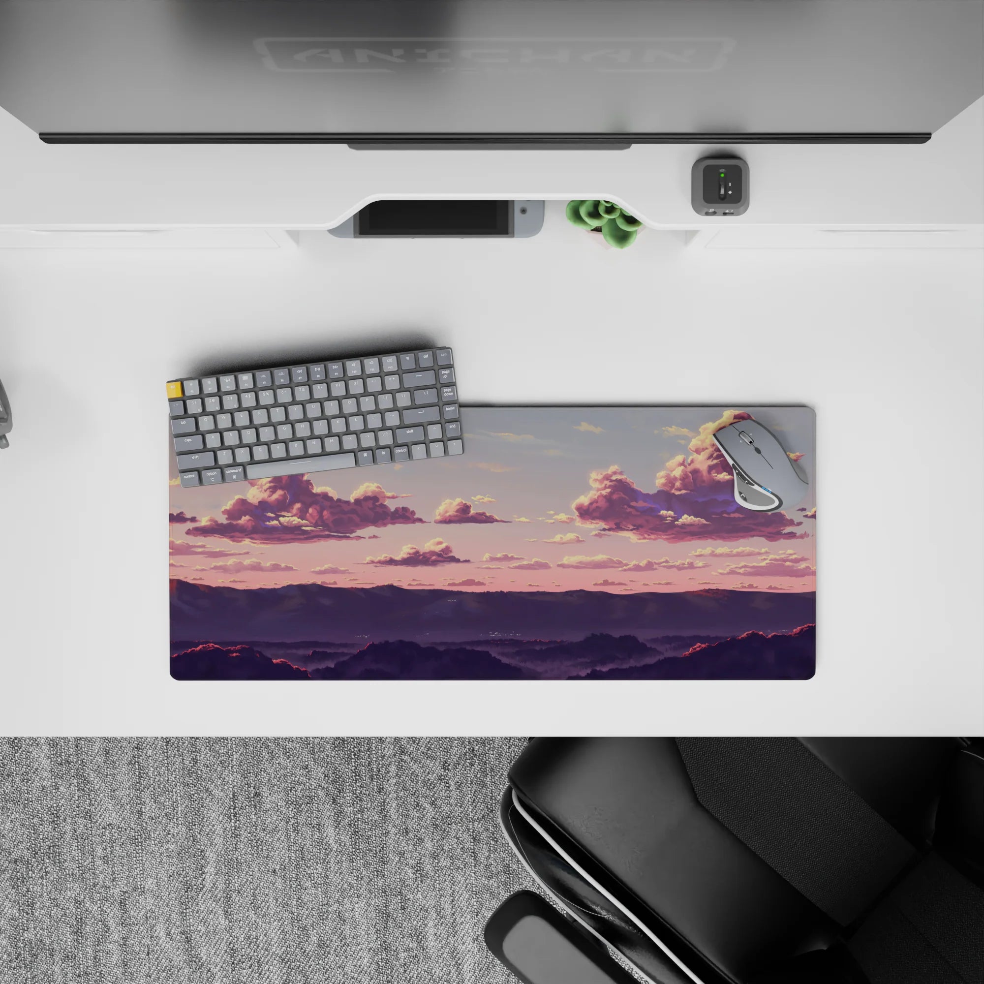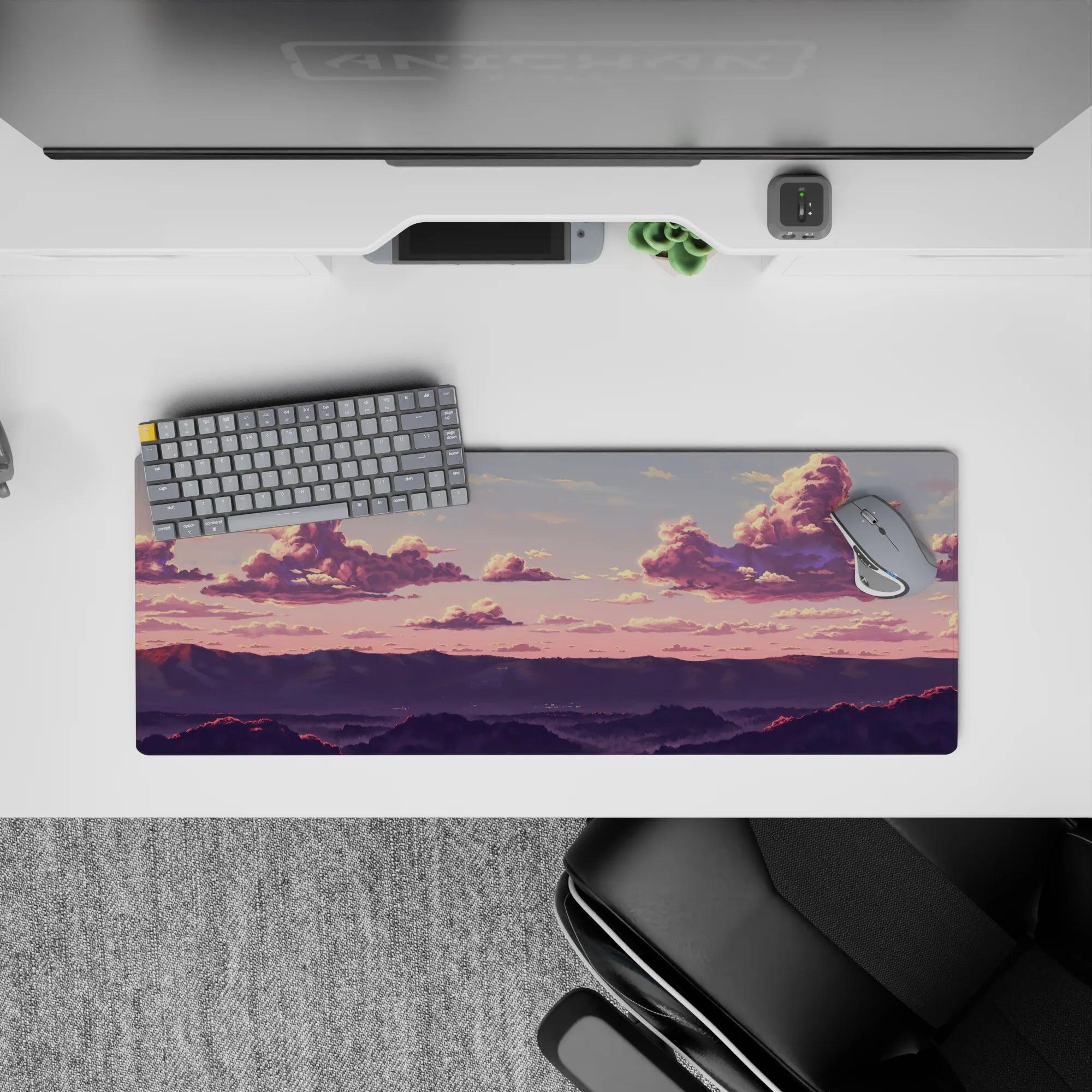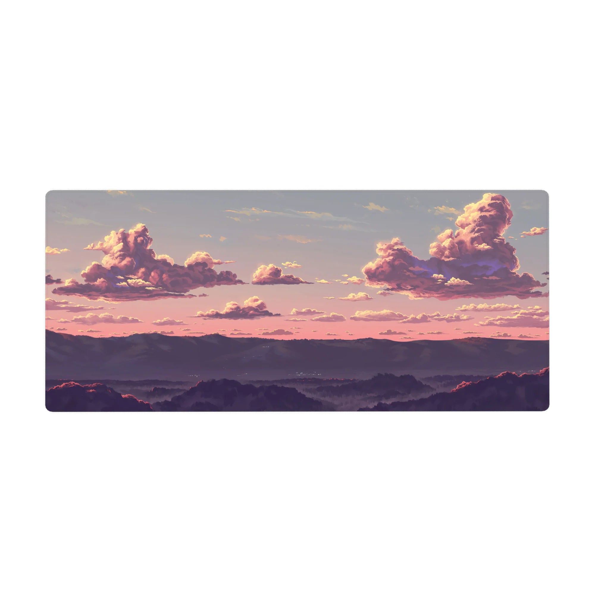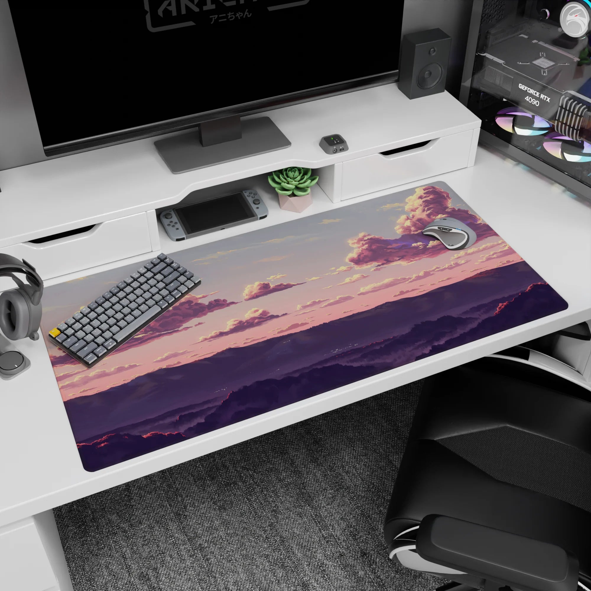 Transform your workspace with the peaceful beauty of a sunset sky. This deskmat features soft pink and purple clouds floating across a fading horizon, creating a serene atmosphere that inspires creativity and focus. Perfect for a calming work environment.