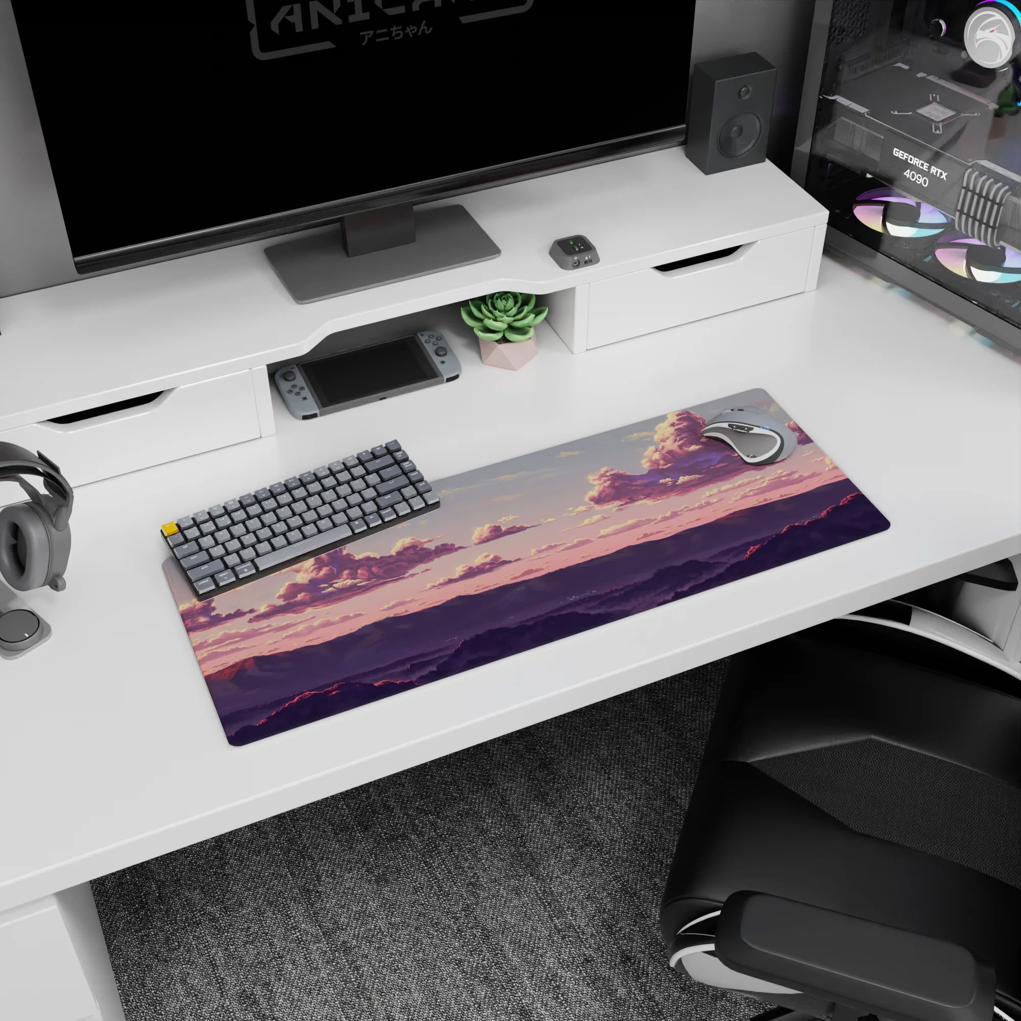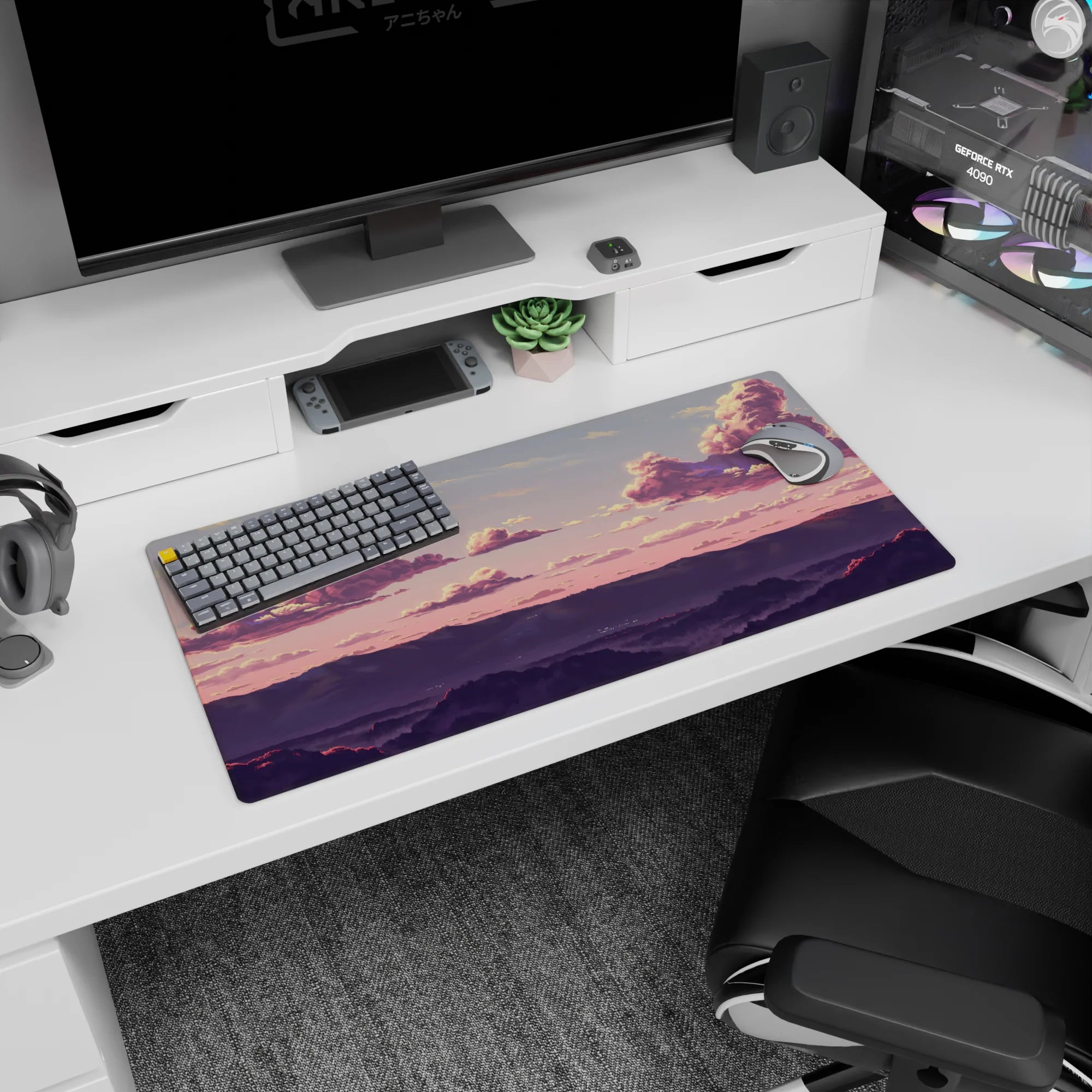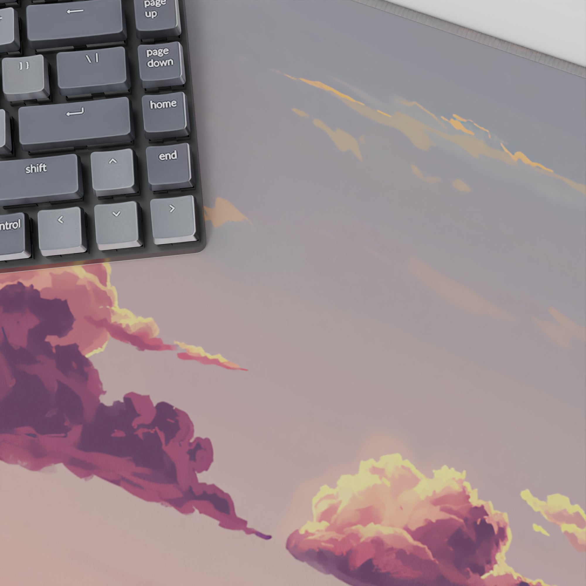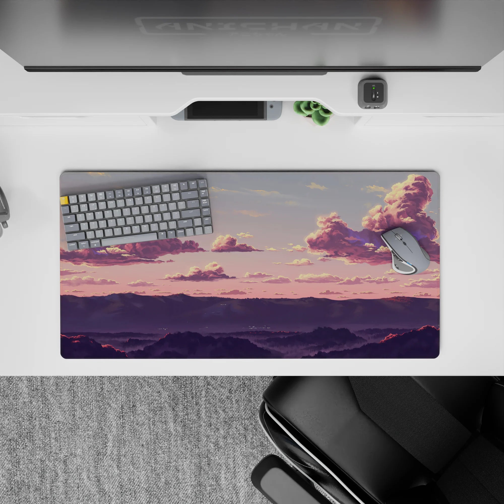 Transform your workspace with the peaceful beauty of a sunset sky. This deskmat features soft pink and purple clouds floating across a fading horizon, creating a serene atmosphere that inspires creativity and focus. Perfect for a calming work environment.
