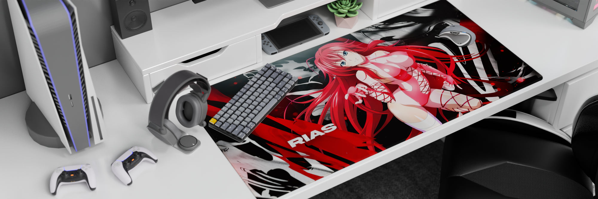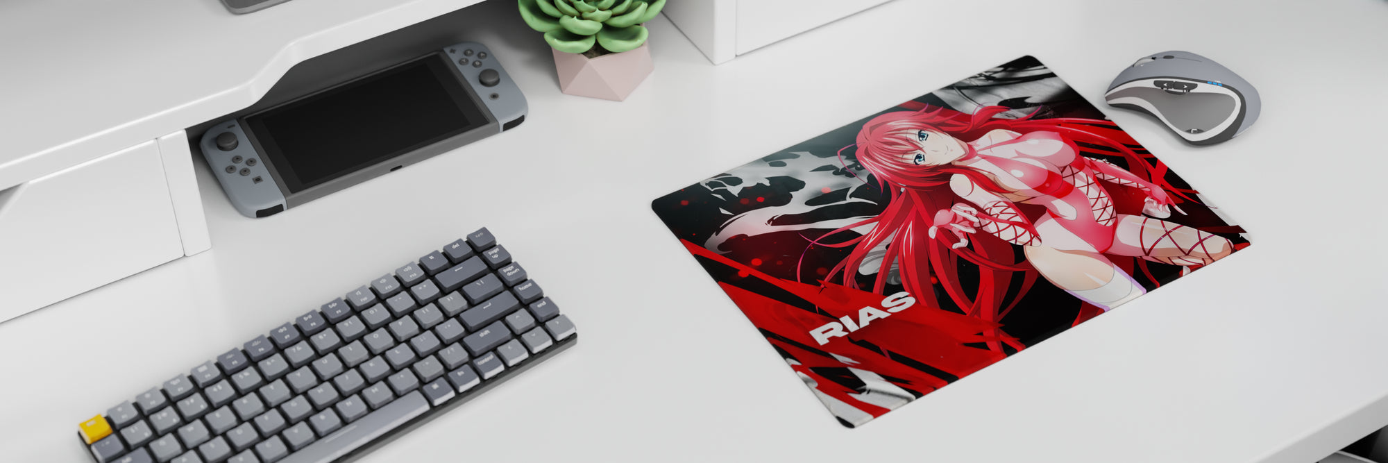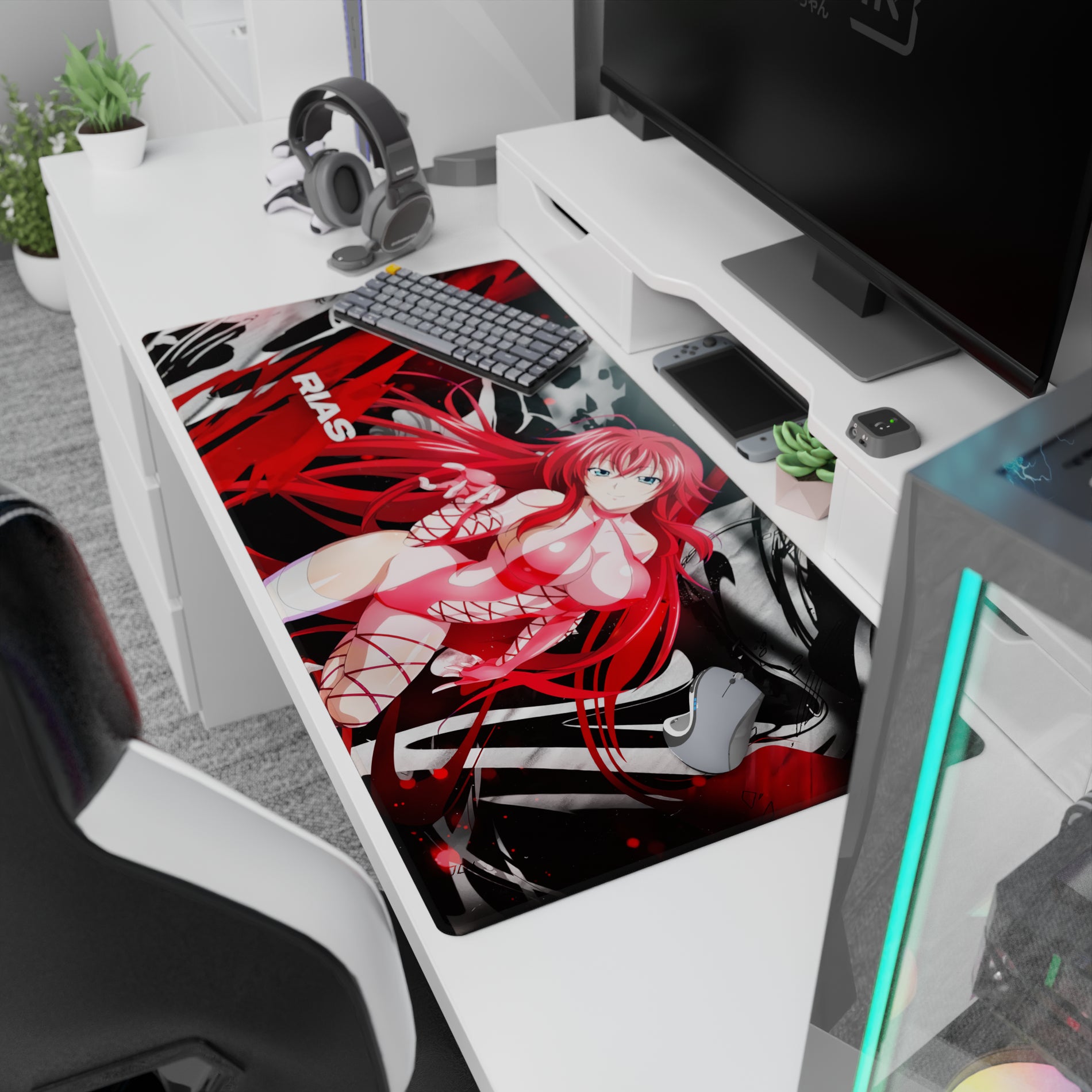 Rias Gremory from High School DxD brings fiery elegance to your desk with this anime mouse pad. Her gaze—bold yet gentle. The design? A vibrant blend of pinks and reds. Ideal for those who prefer their accessories striking and potent. Transform every glance into a spark of inspiration.