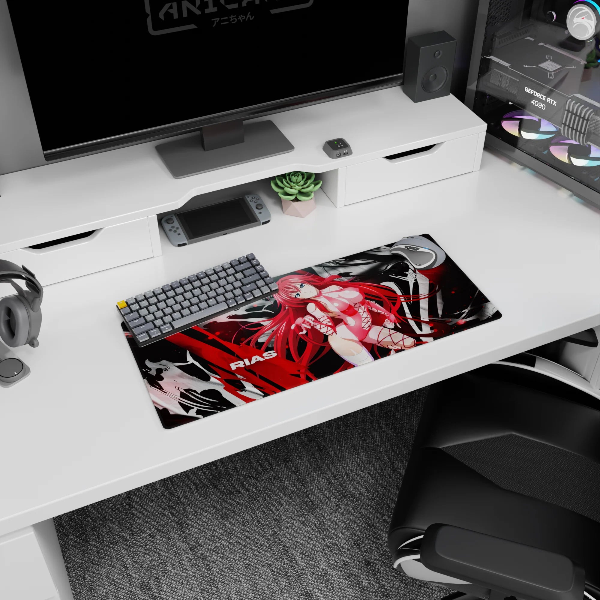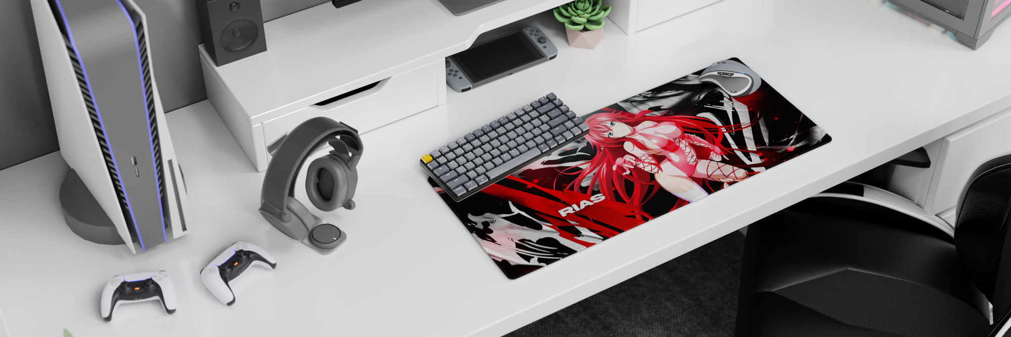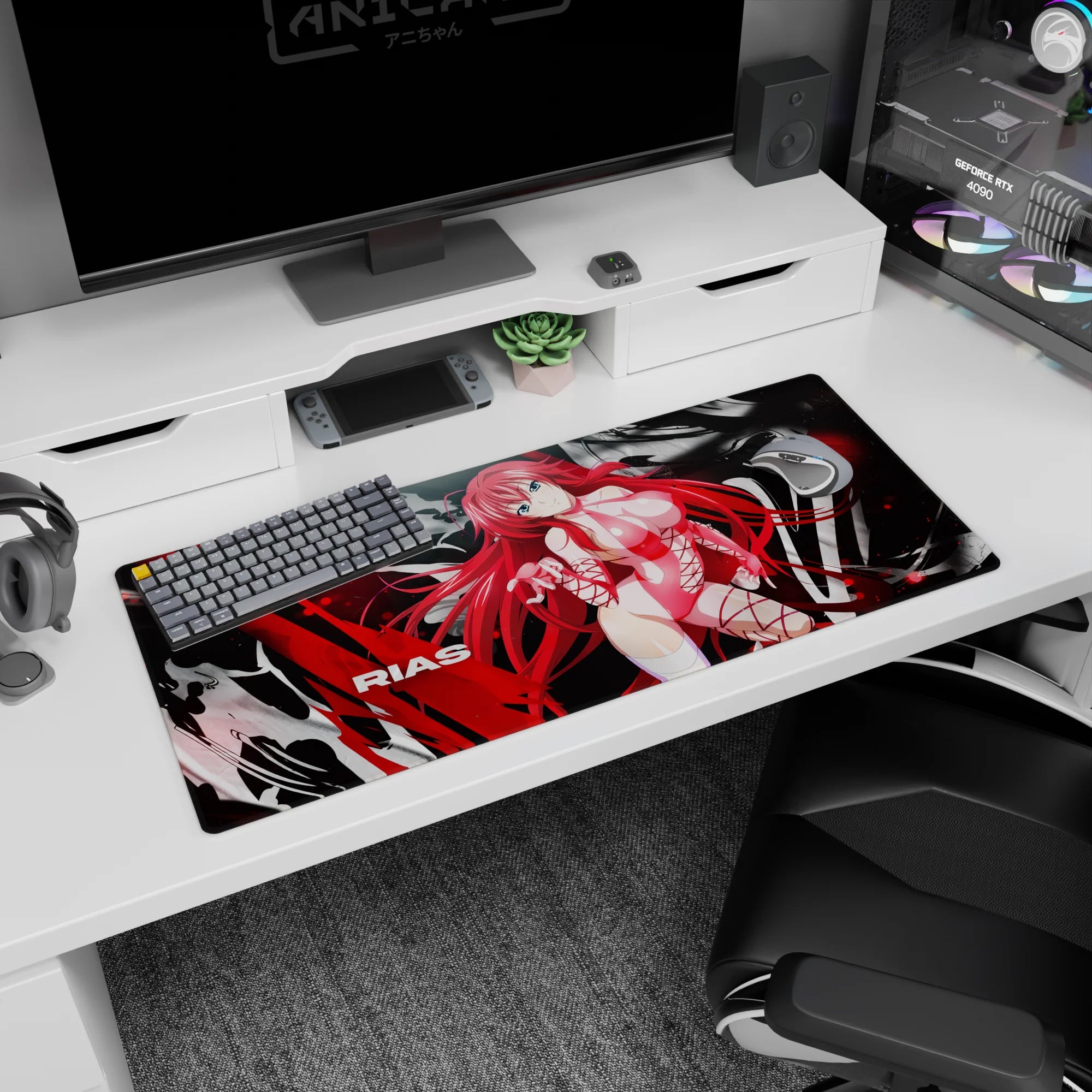 Rias Gremory from High School DxD brings fiery elegance to your desk with this anime mouse pad. Her gaze—bold yet gentle. The design? A vibrant blend of pinks and reds. Ideal for those who prefer their accessories striking and potent. Transform every glance into a spark of inspiration.
