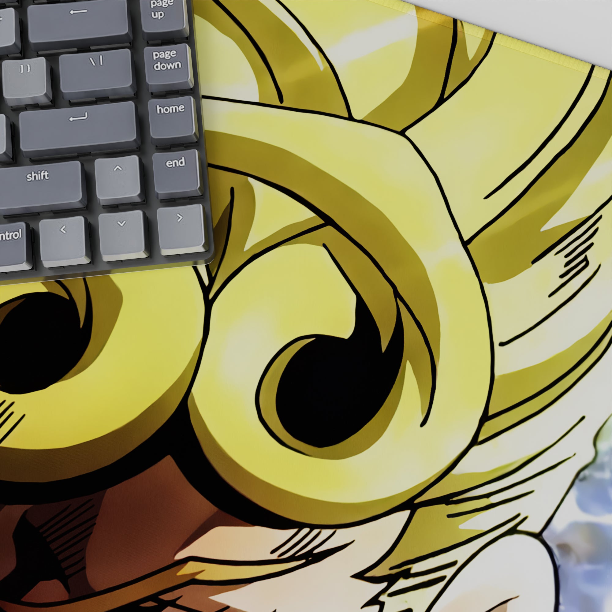 Step into the world of JoJo’s Bizarre Adventure with the Golden Requiem desk mat featuring Giorno Giovanna and his iconic Stand, Gold Experience Requiem. This vibrant design is perfect for fans of intense battles and legendary moments, adding a burst of energy to any workspace.